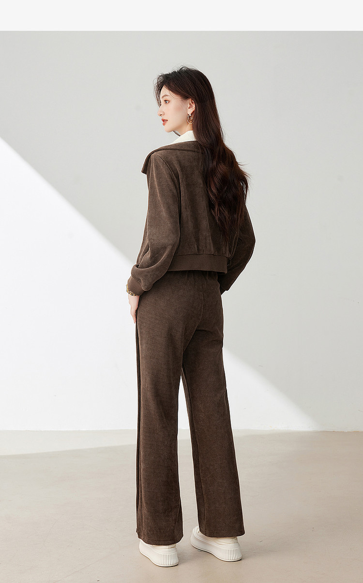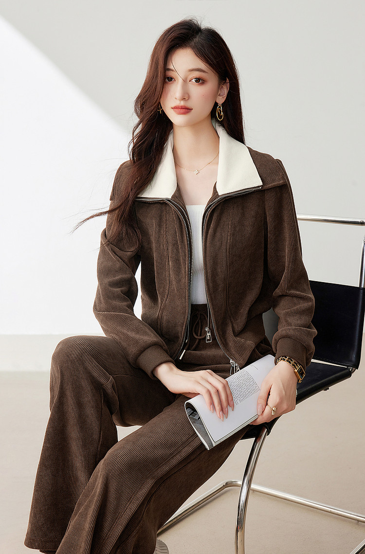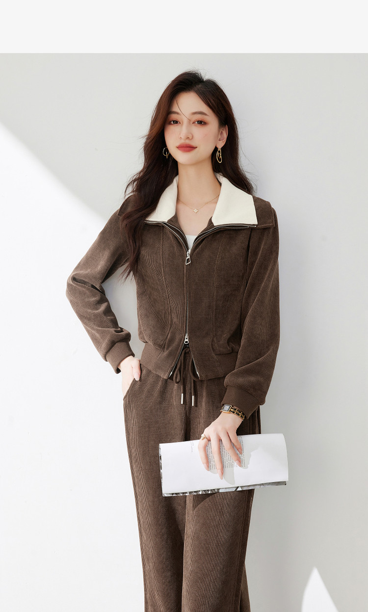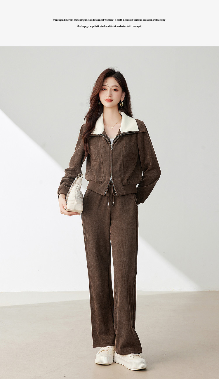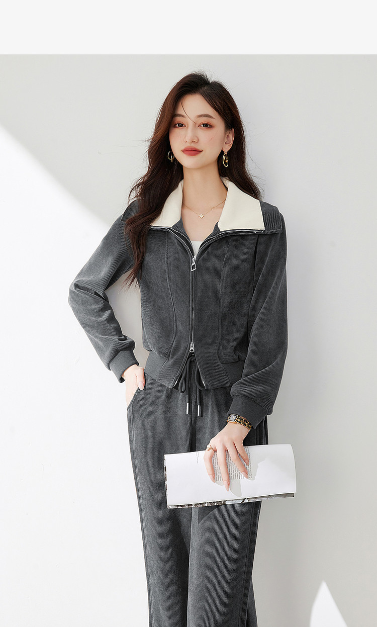 运动休闲时尚套装女盐系轻熟风假两件卫衣阔腿裤两件套 566104