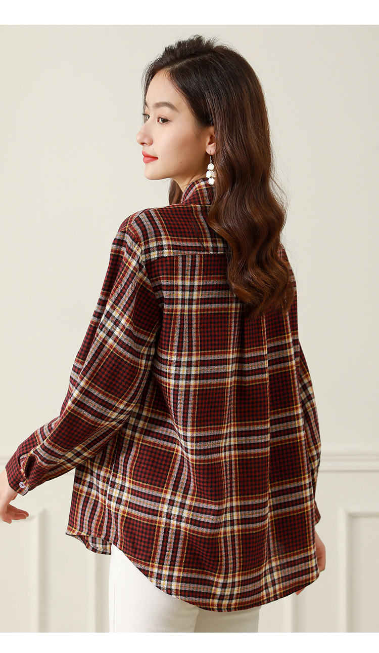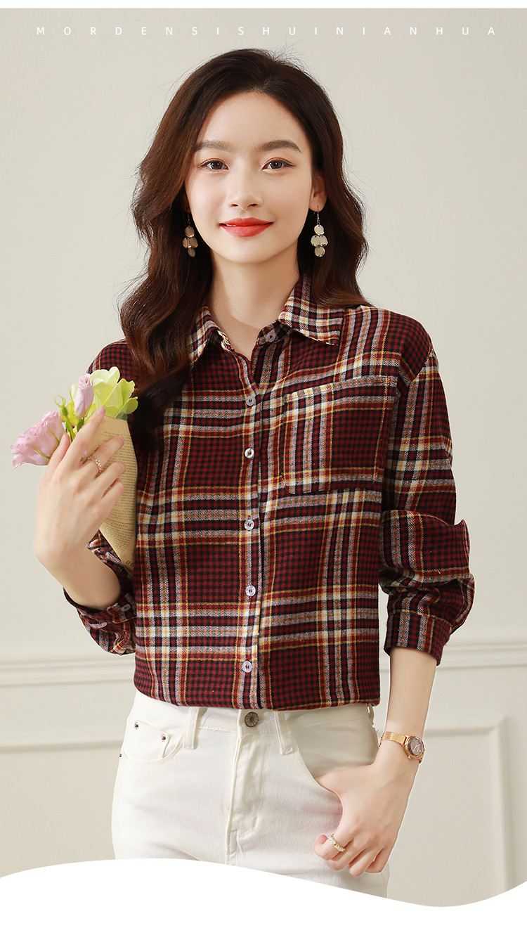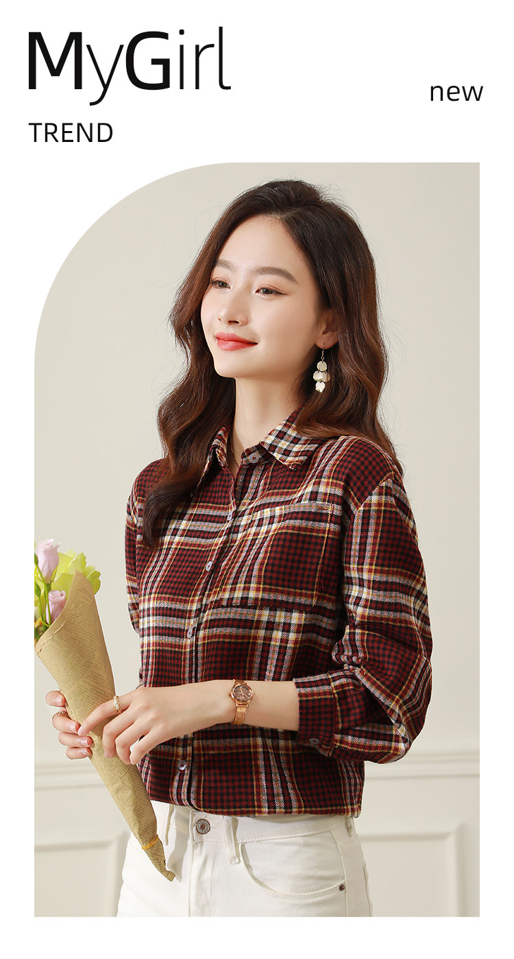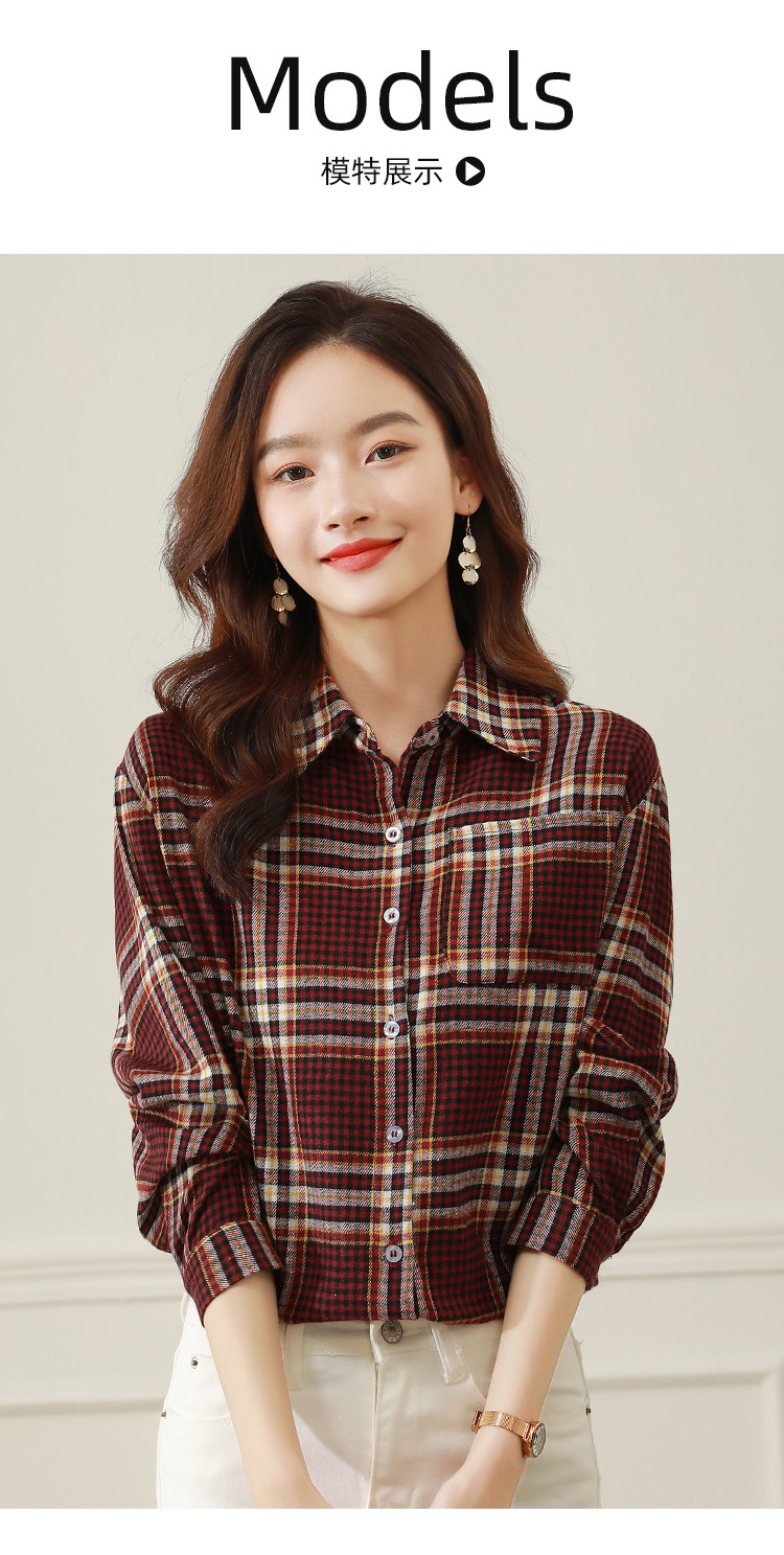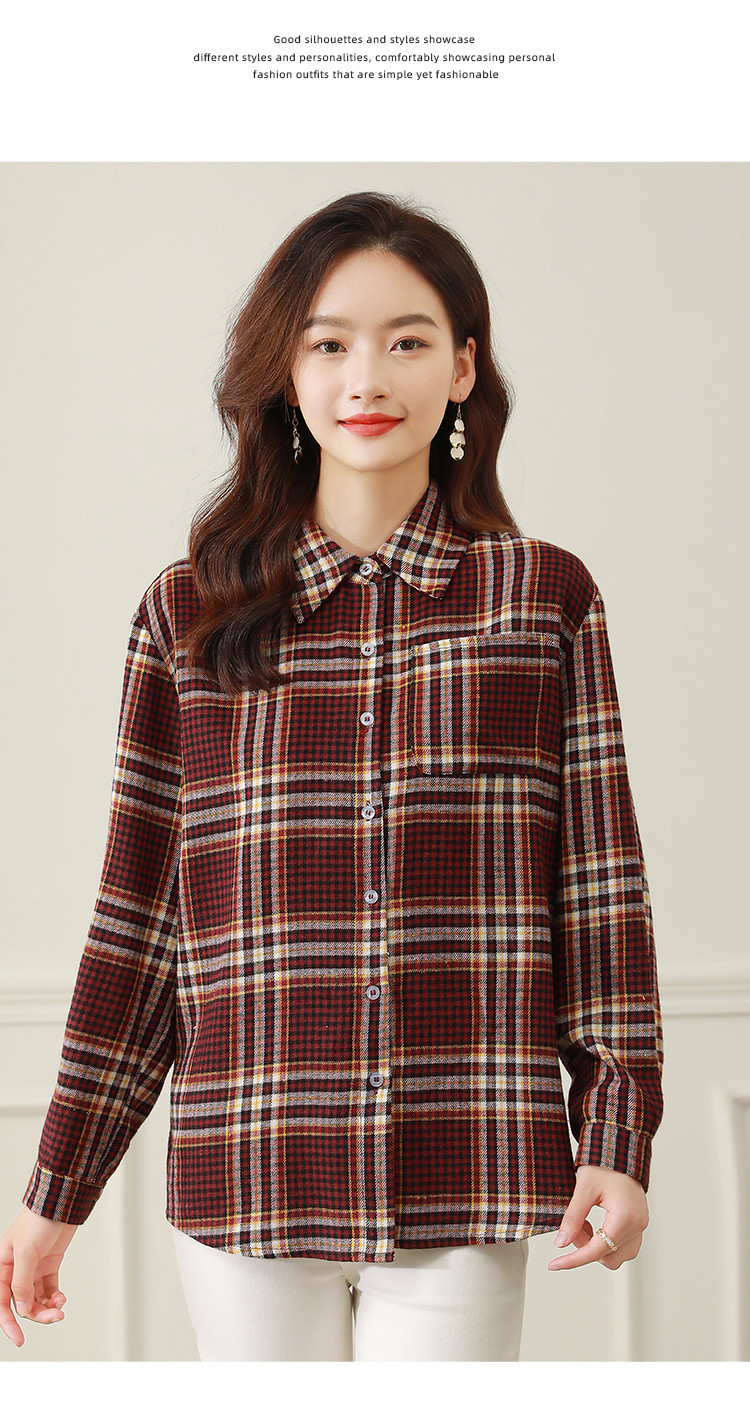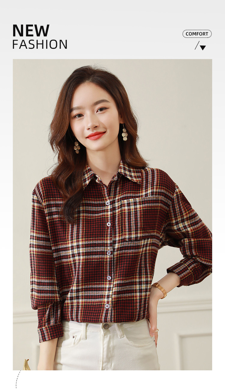 商品名称:【格纹衬衫女】24秋季新款时尚休闲复古宽松长袖衬衣上衣女 945880
