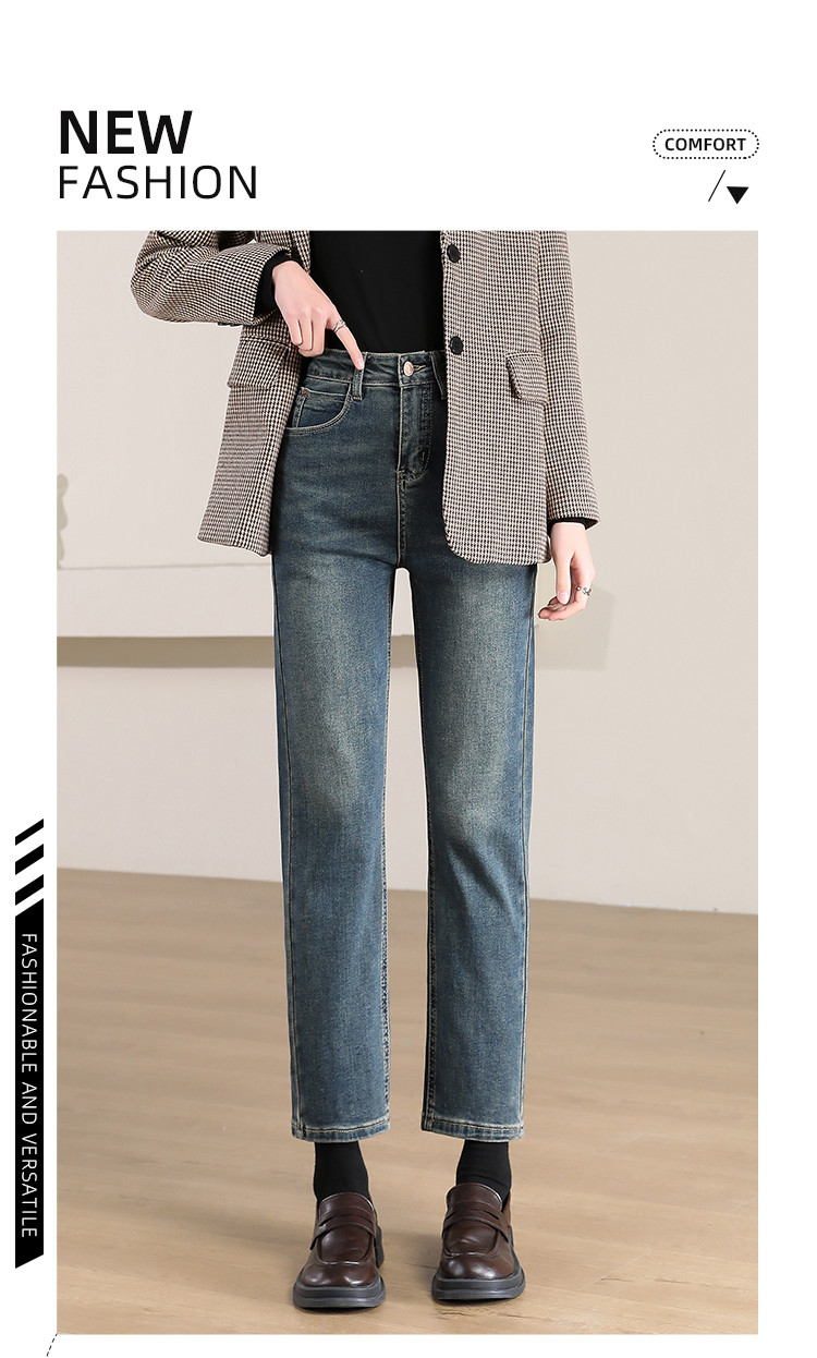 商品名称:【经典复古重逢】高腰牛仔裤女时尚通勤休闲百搭弹力显瘦哈伦裤子 710104
