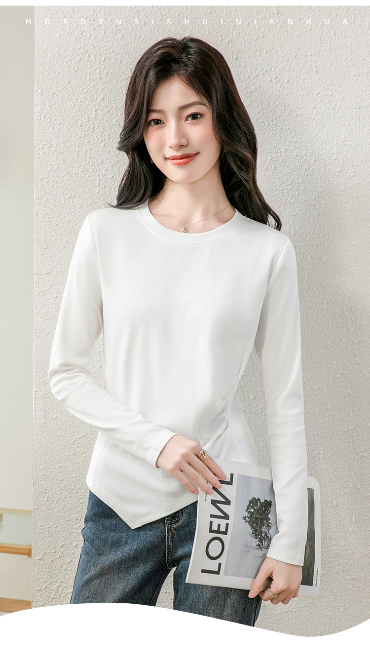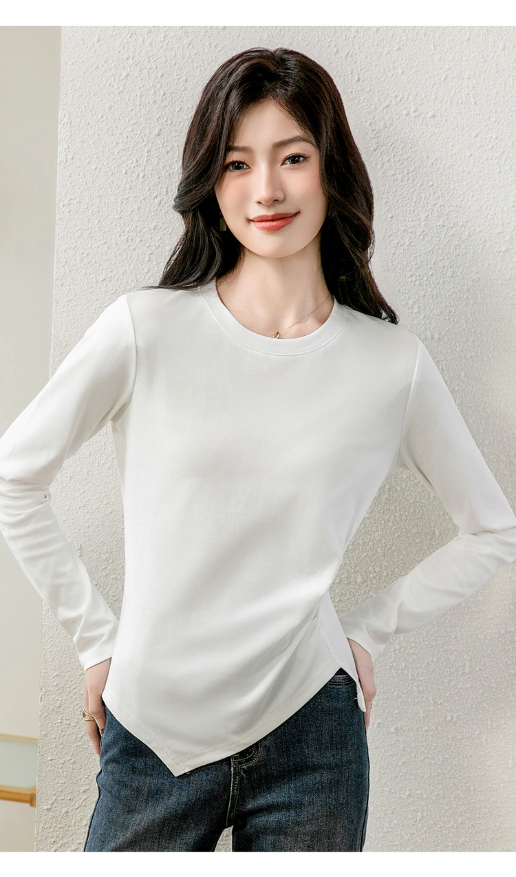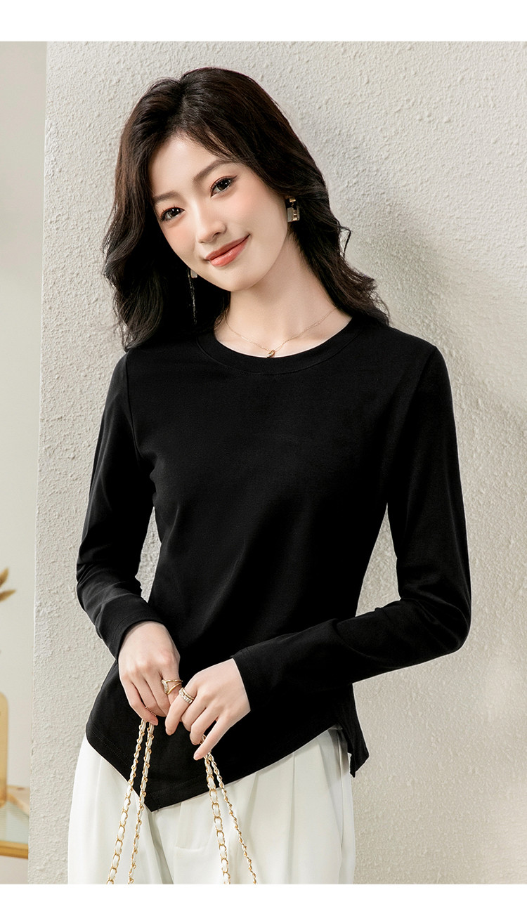 春季时尚休闲打底衫女款纯色长袖T恤百搭简约长袖T恤上衣女 714200