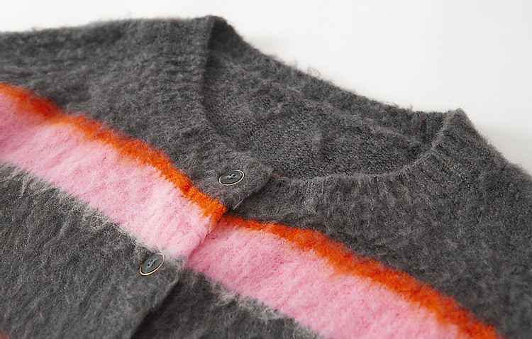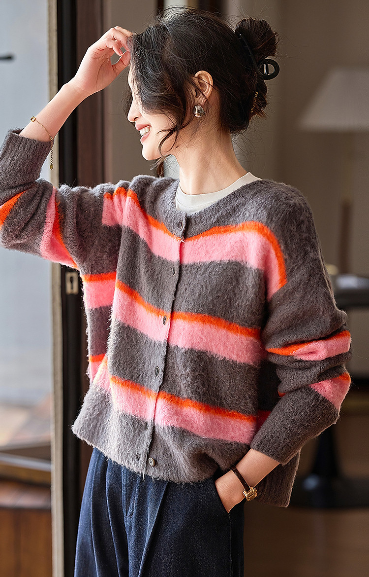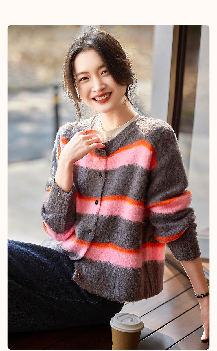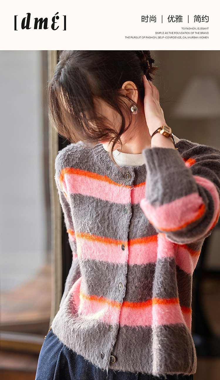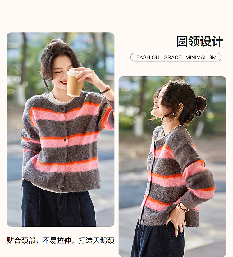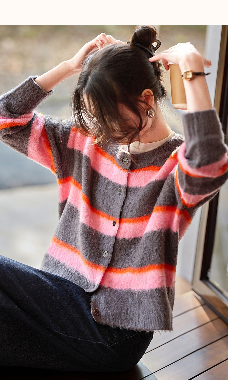 【线条美学】秋慵懒风多巴胺条纹开衫撞色舒适遮肉女式外套 110209