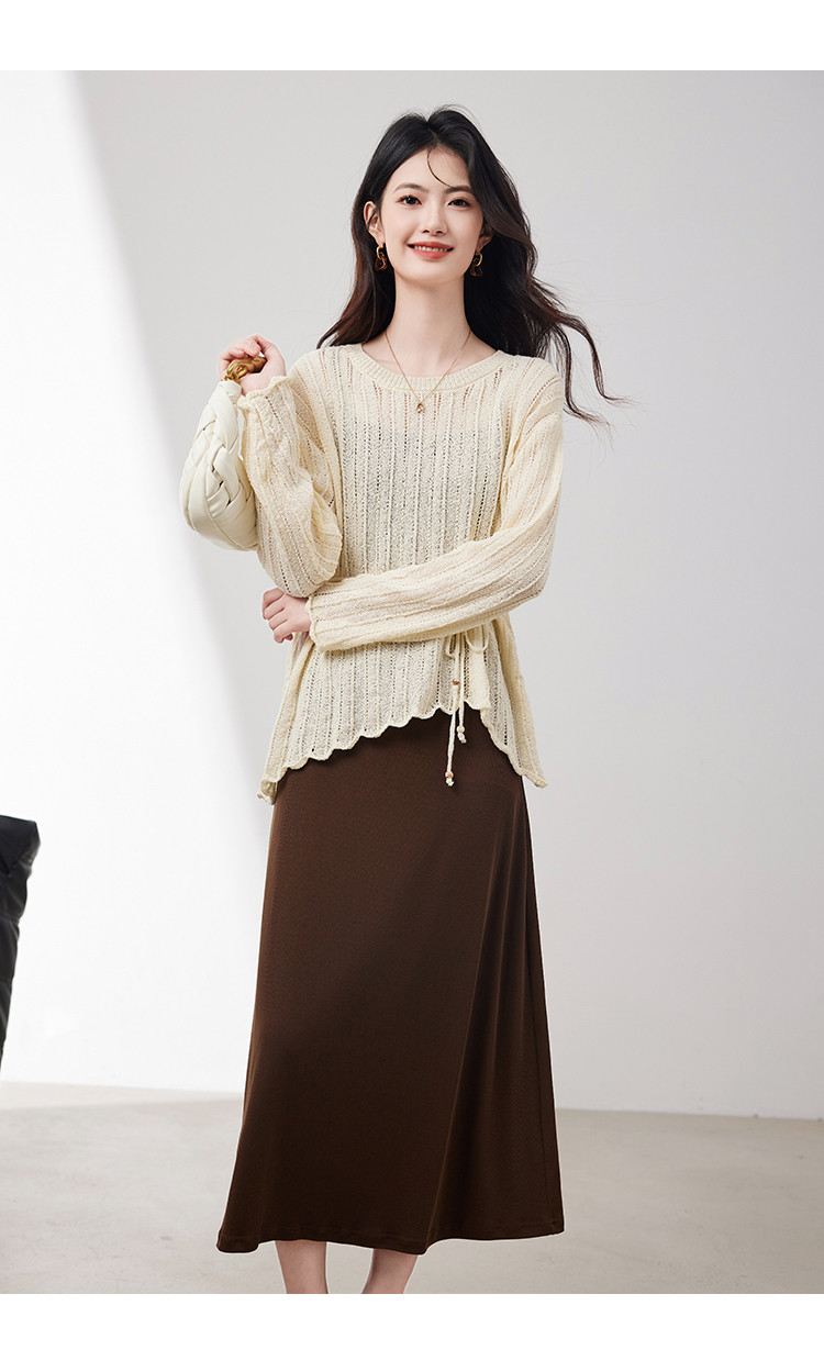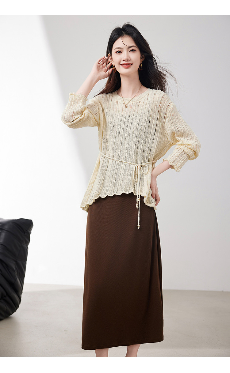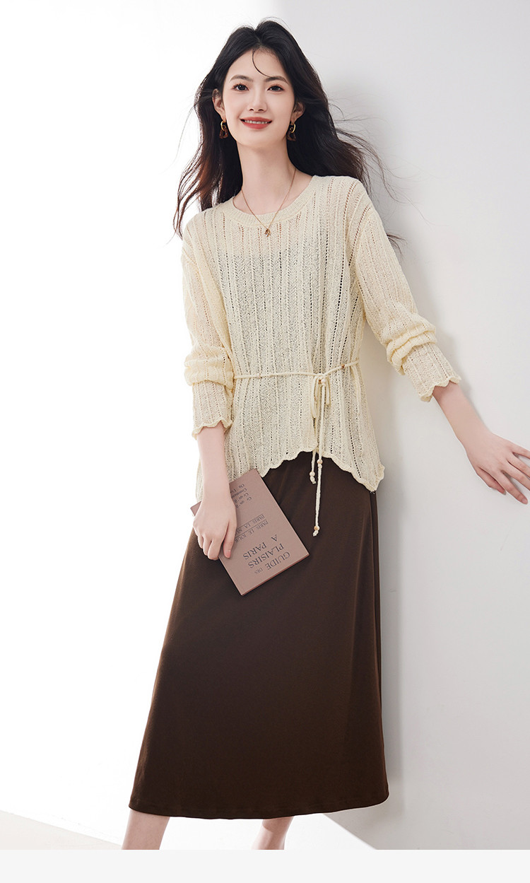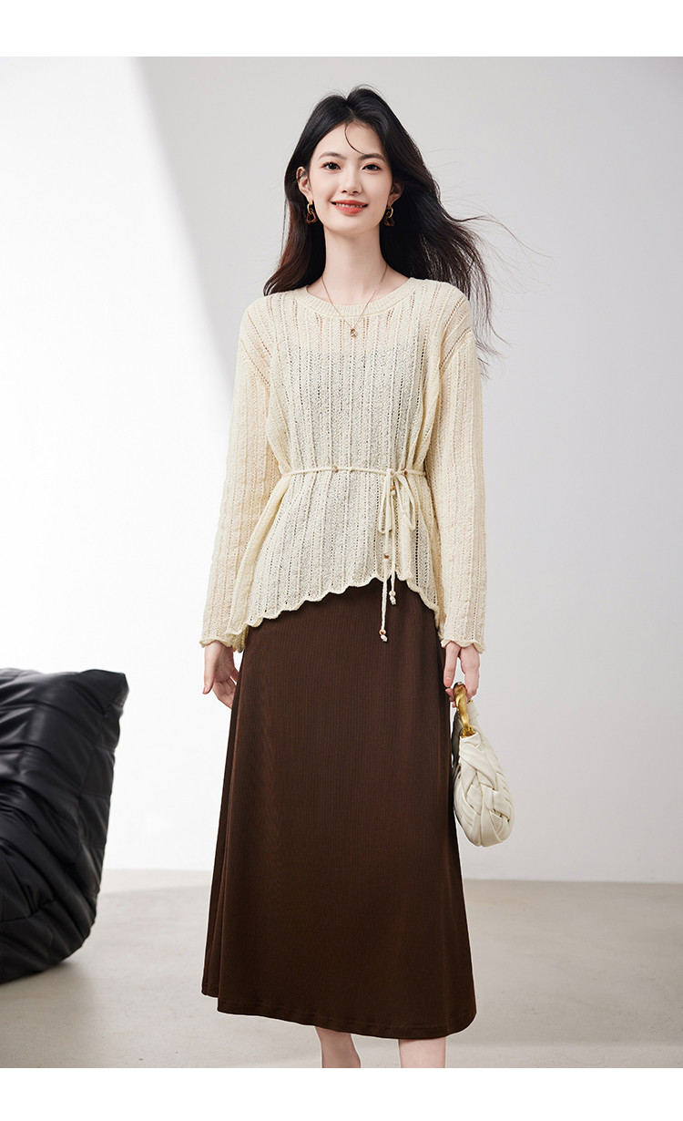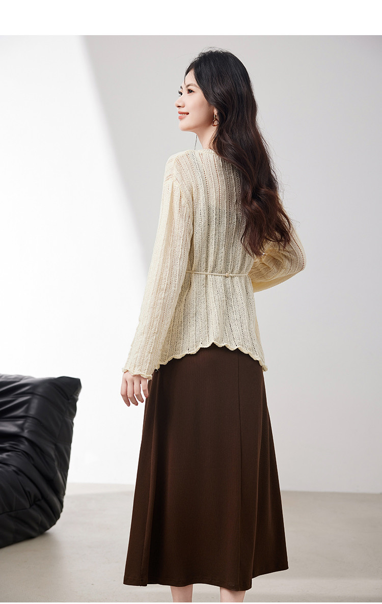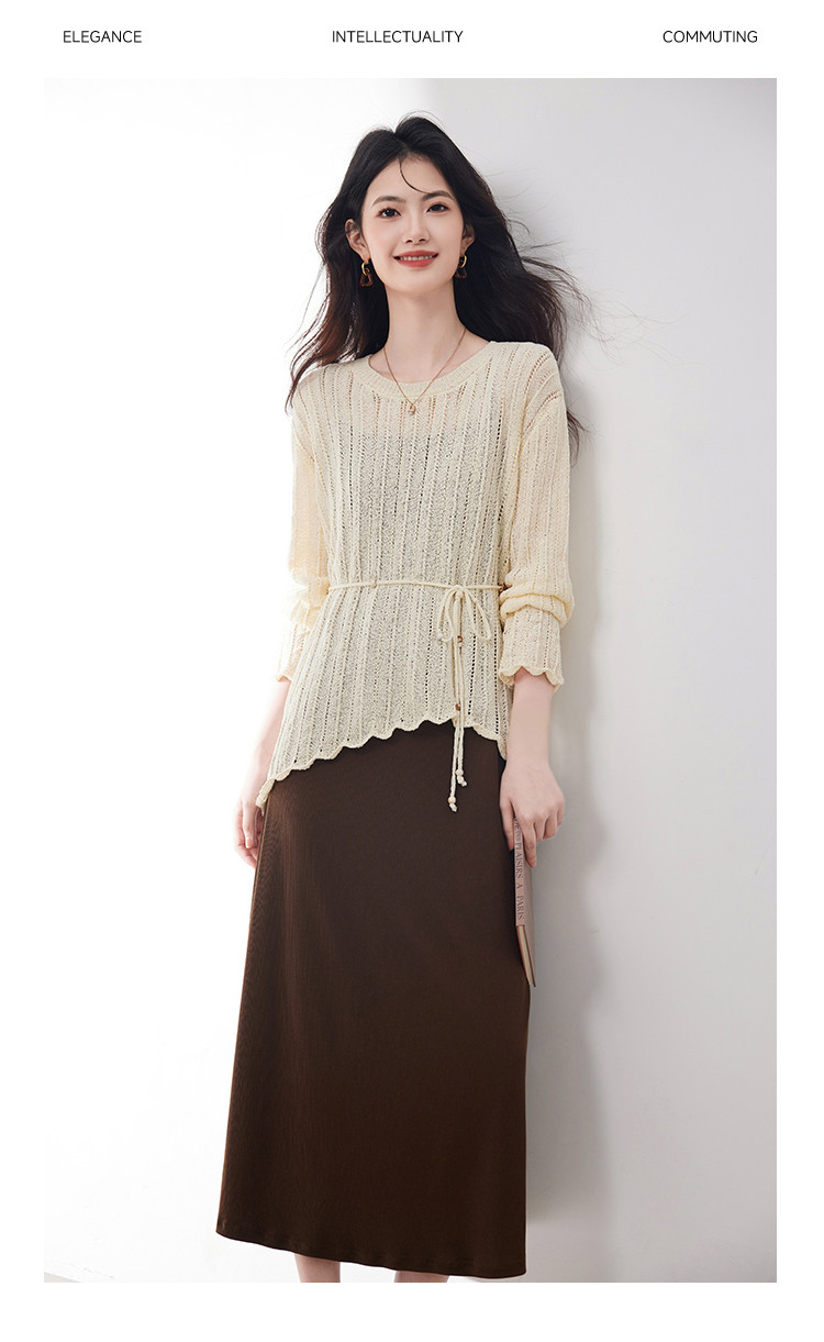 商品名称:优雅通勤套装女2025春季新款高级感时尚针织镂空吊带裙两件套 745560