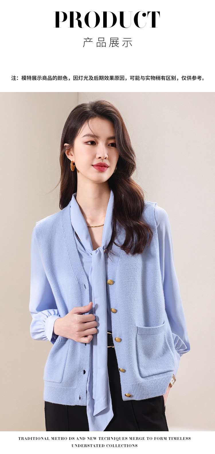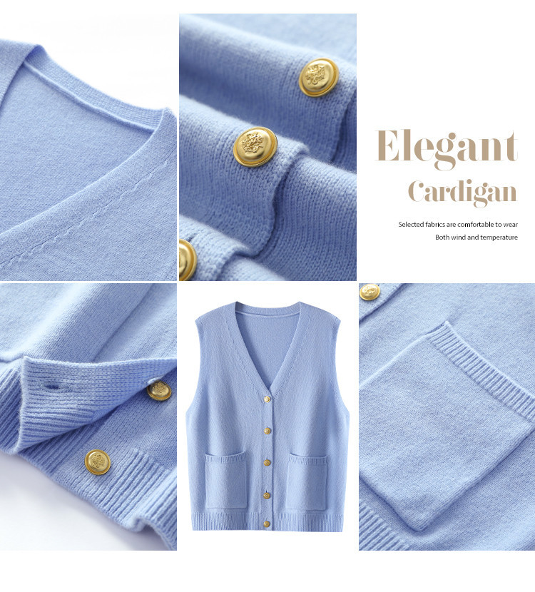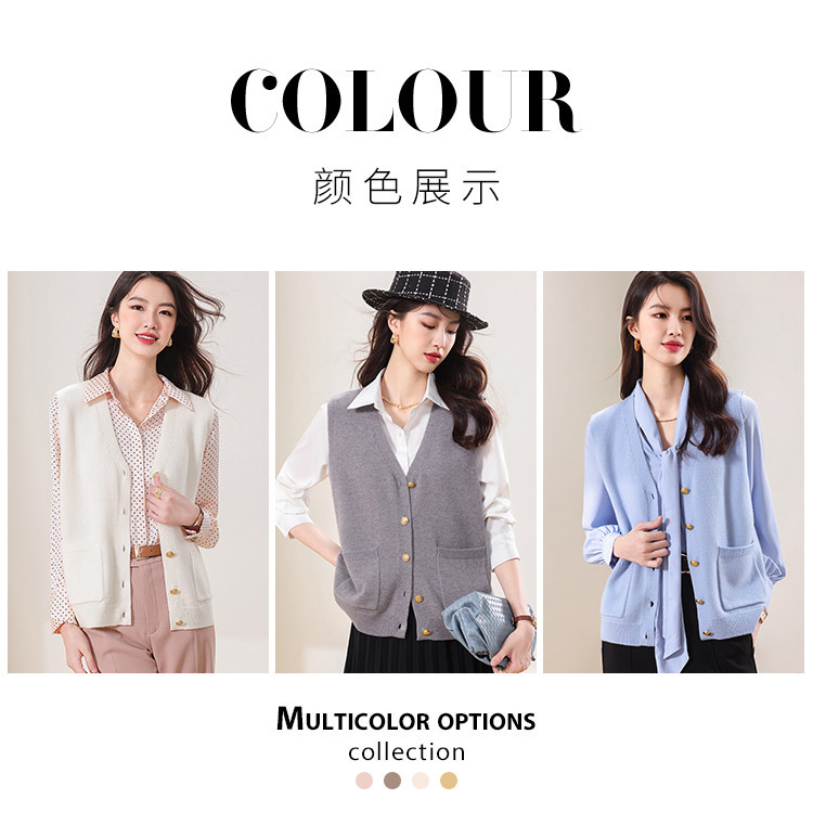 商品名称:【100%绵羊毛】纯色V领羊毛衫女开衫针织背心马夹坎肩 305491