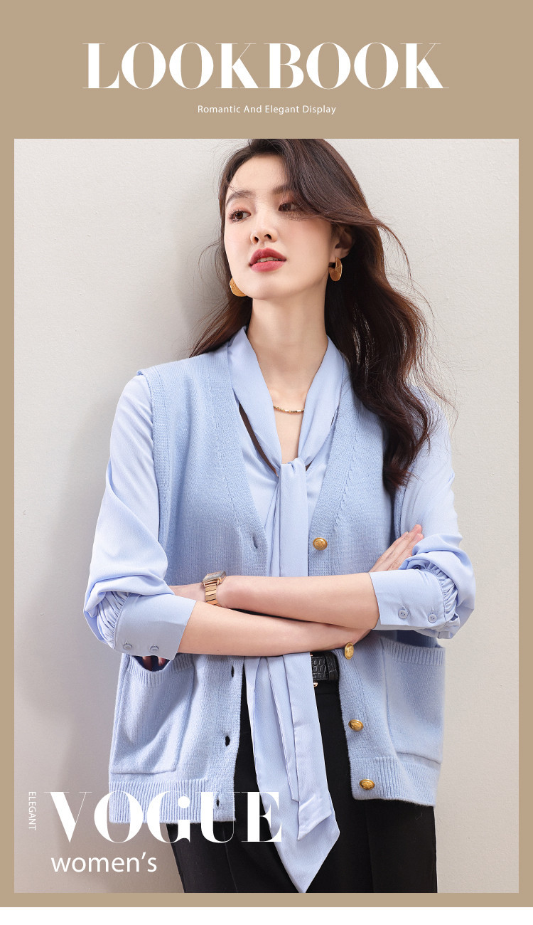 【100%绵羊毛】纯色V领羊毛衫女开衫针织背心马夹坎肩 305491