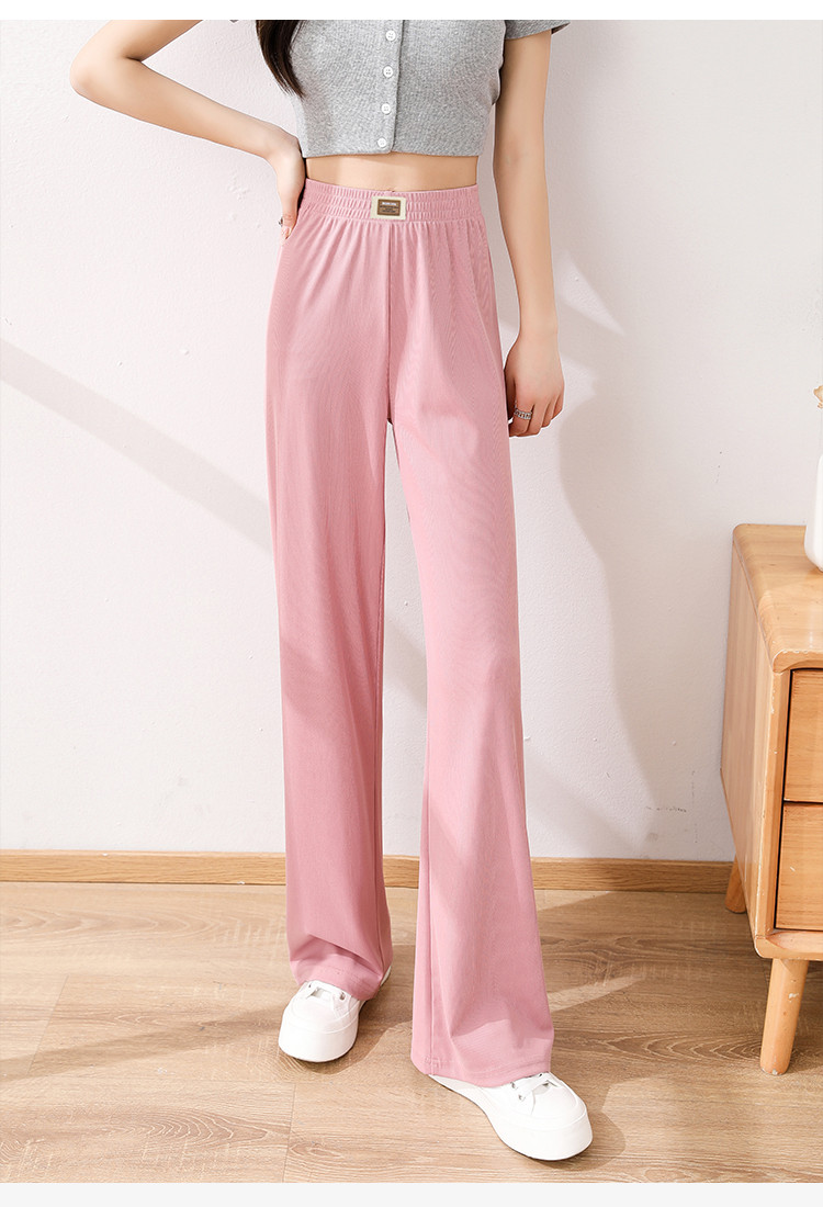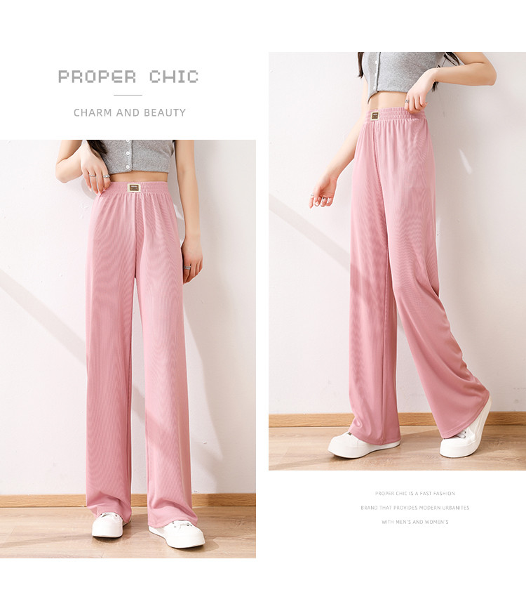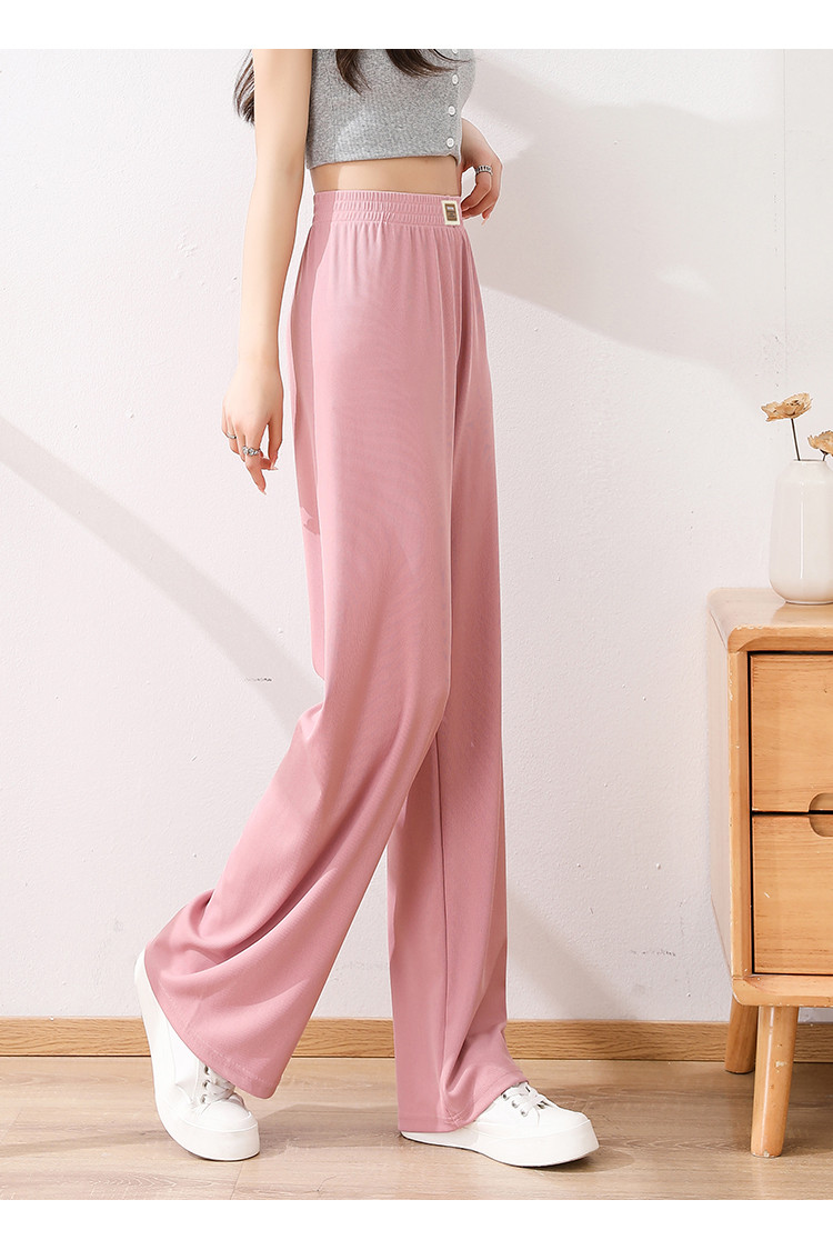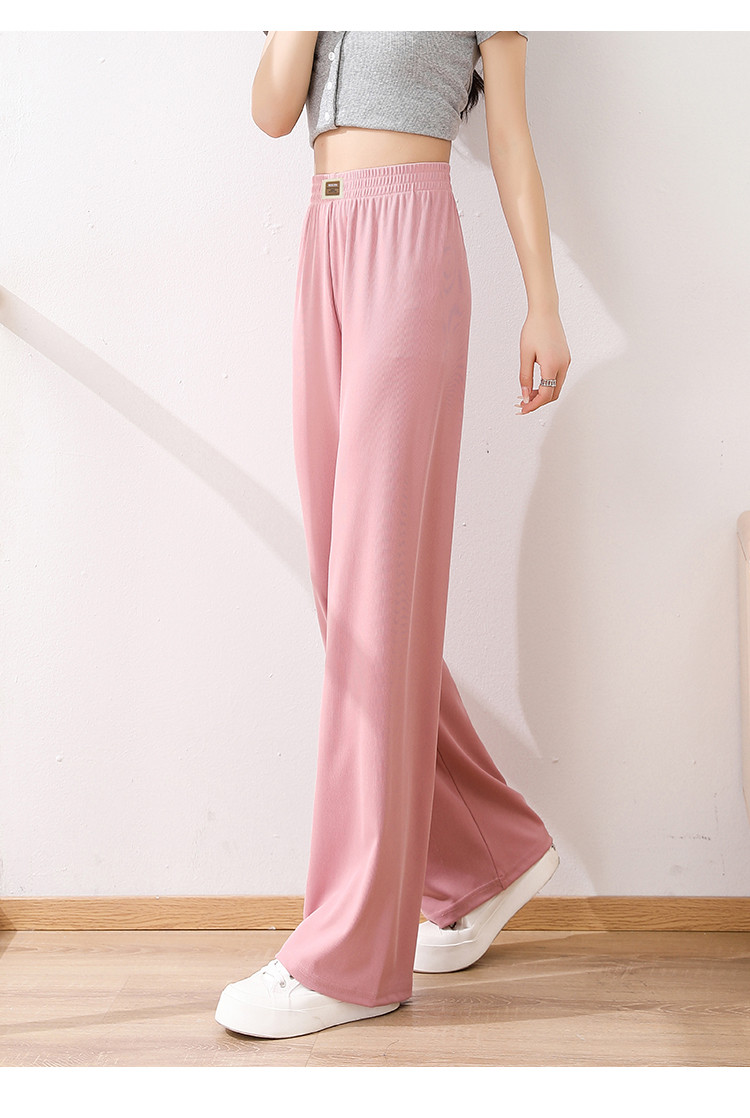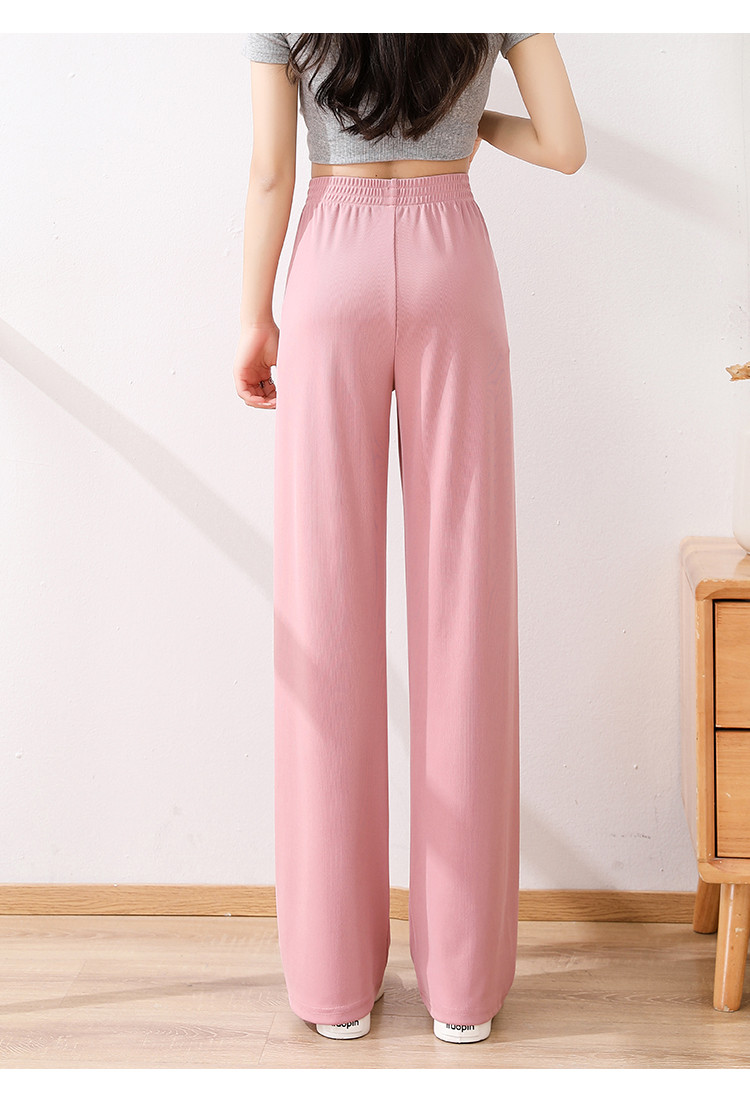 商品名称:款夏季薄款冰丝窄版阔腿裤女高腰垂感针织休闲直筒裤 878808