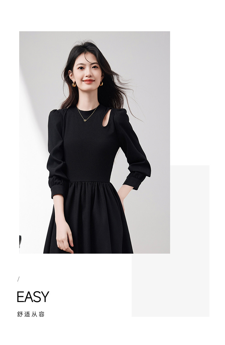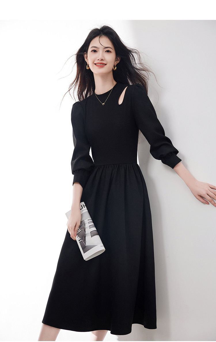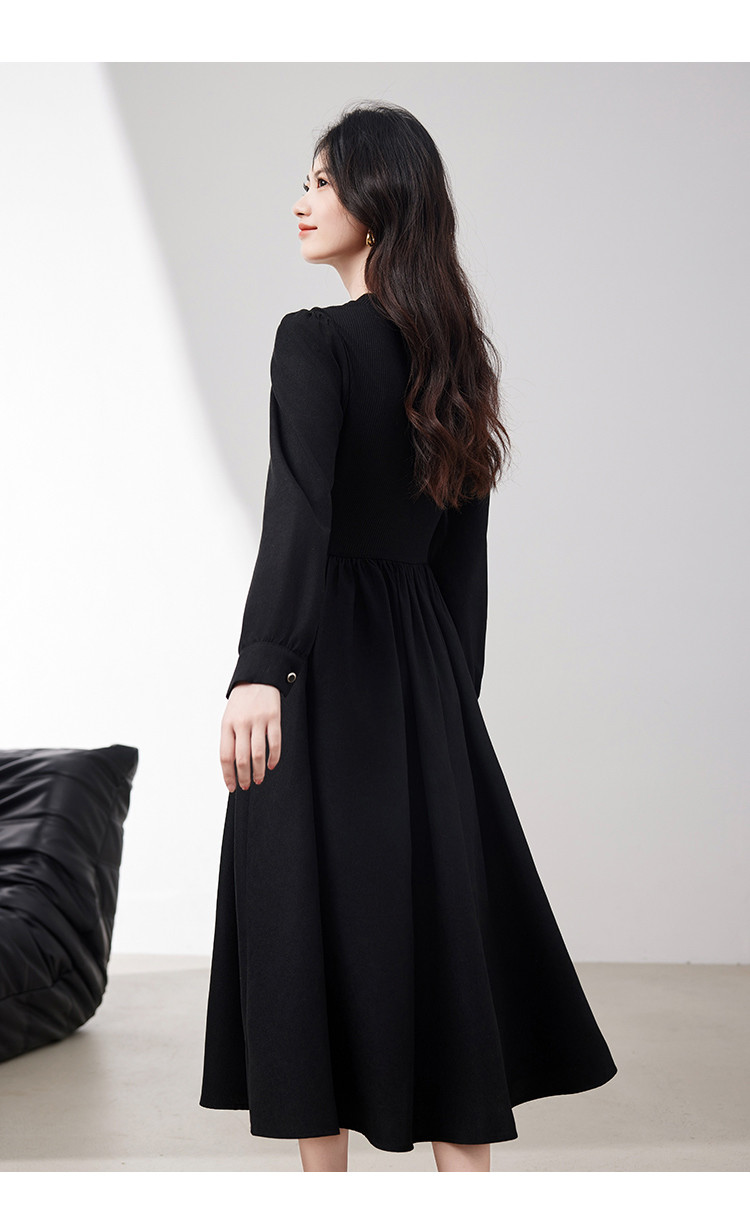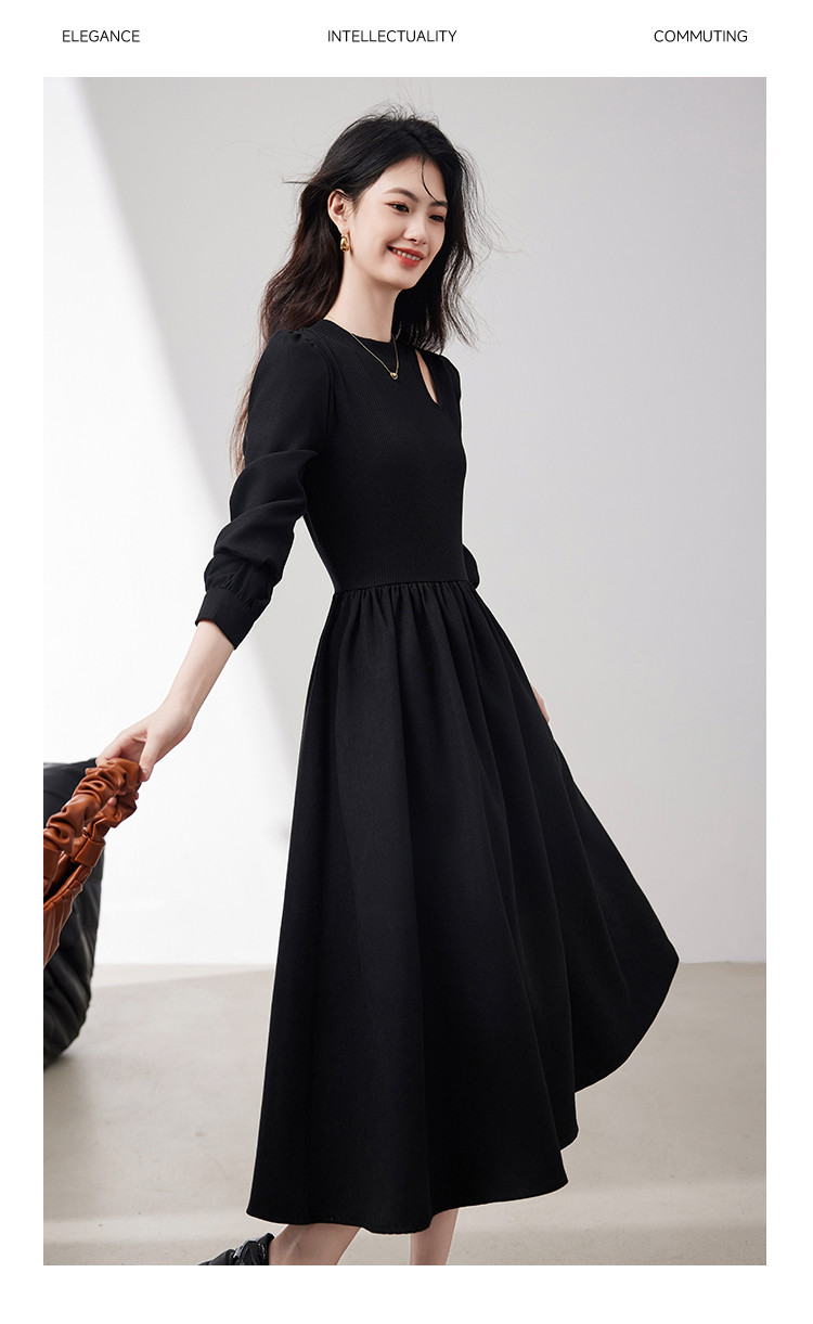 商品名称:长袖连衣裙女2025春季新款高级感法式气质收腰显瘦针织拼接裙 997400