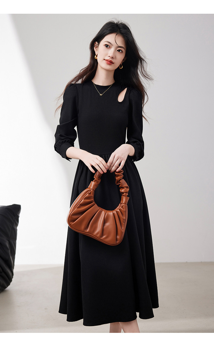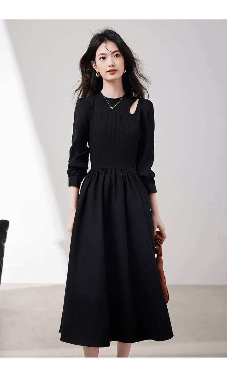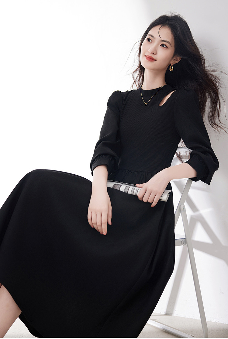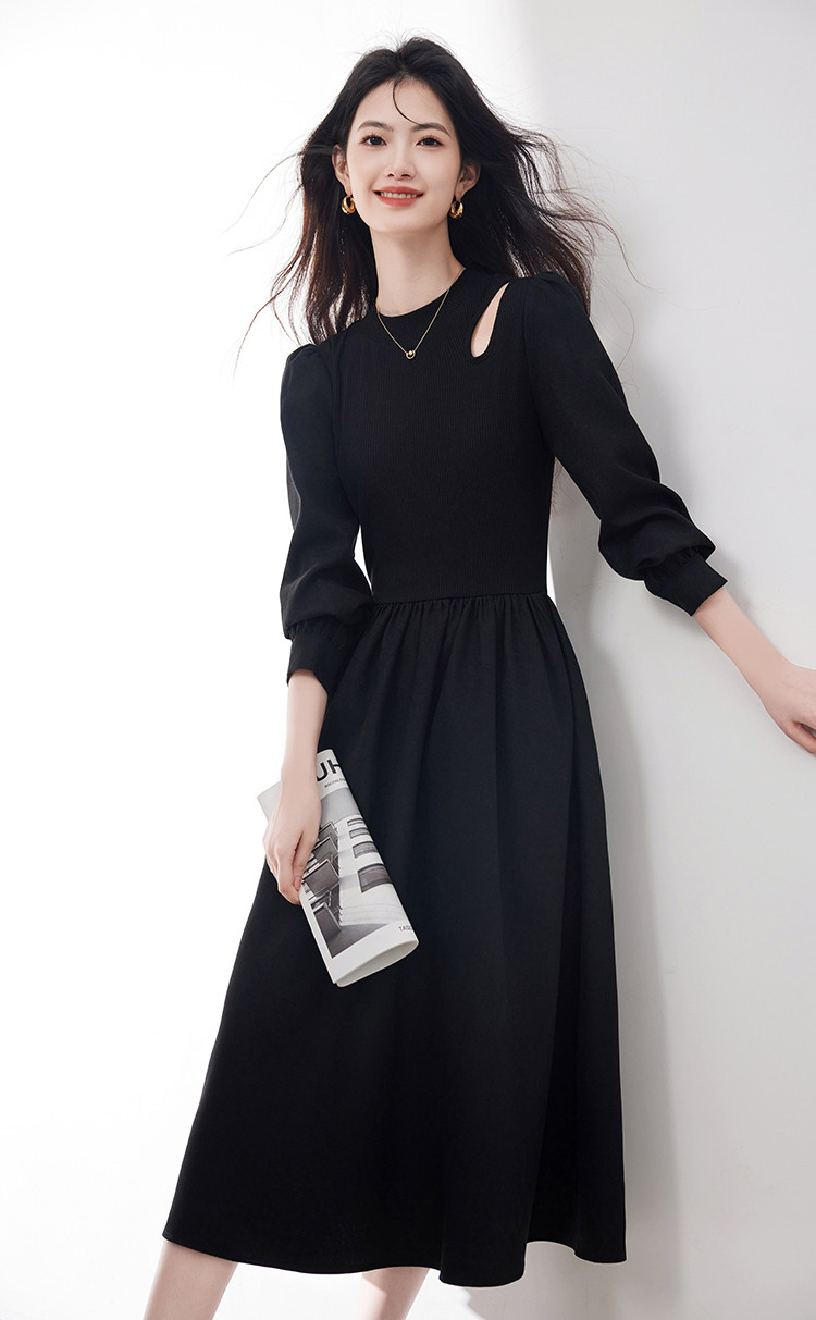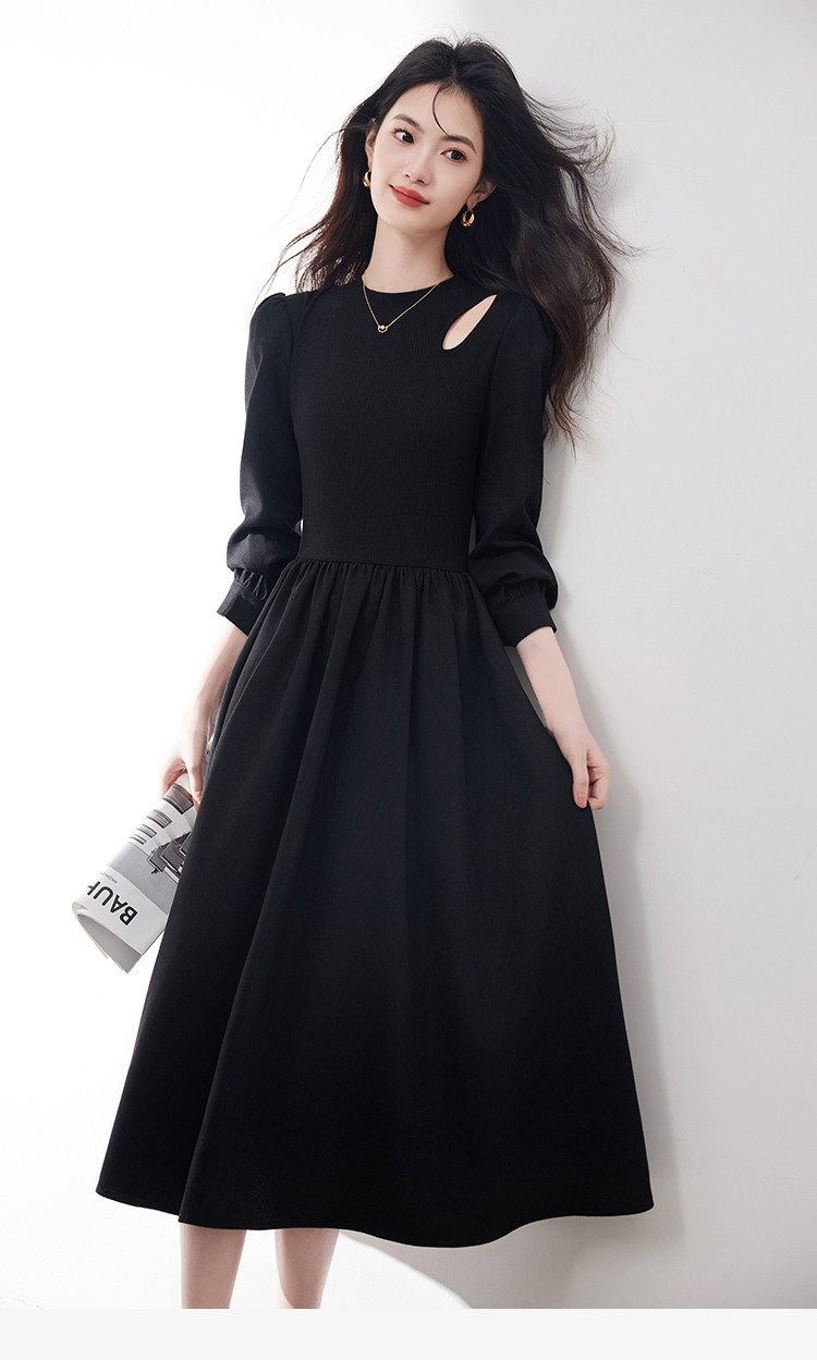 商品名称:长袖连衣裙女2025春季新款高级感法式气质收腰显瘦针织拼接裙 997400