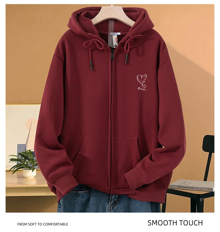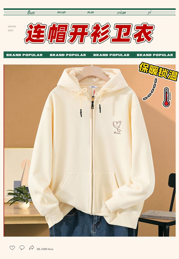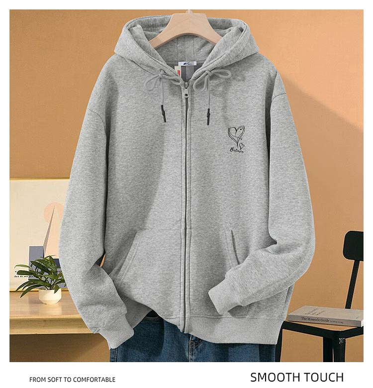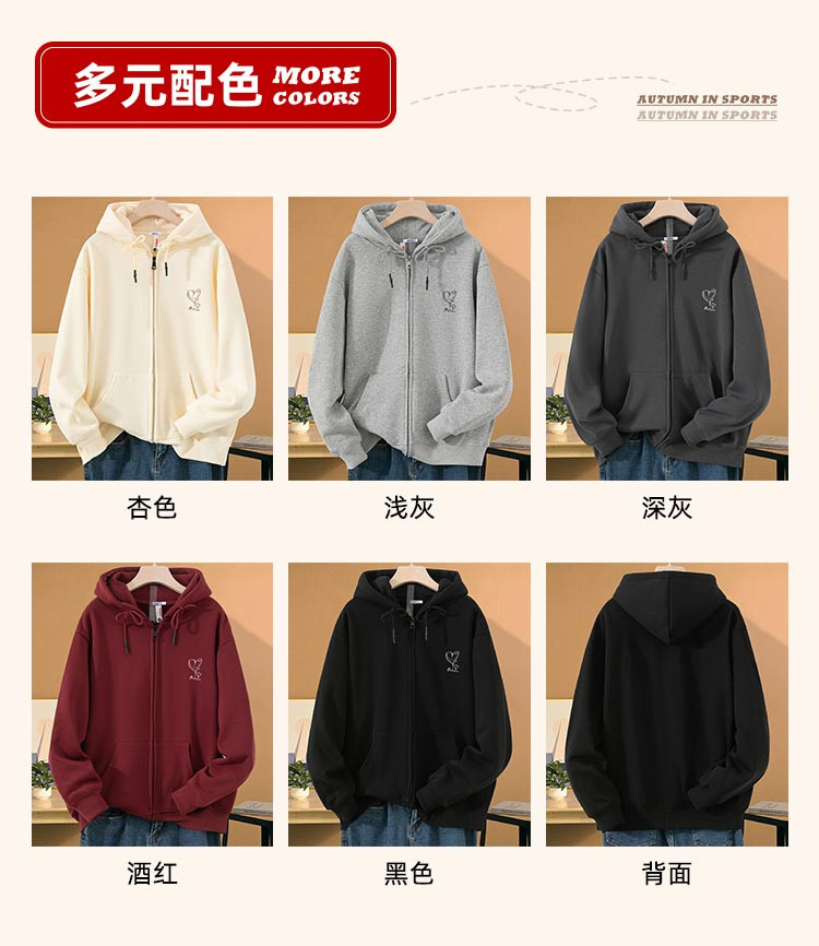 商品名称:【重磅棉】手绘爱心卫衣外套女春秋情侣连帽休闲开衫宽松拉链上衣 698387