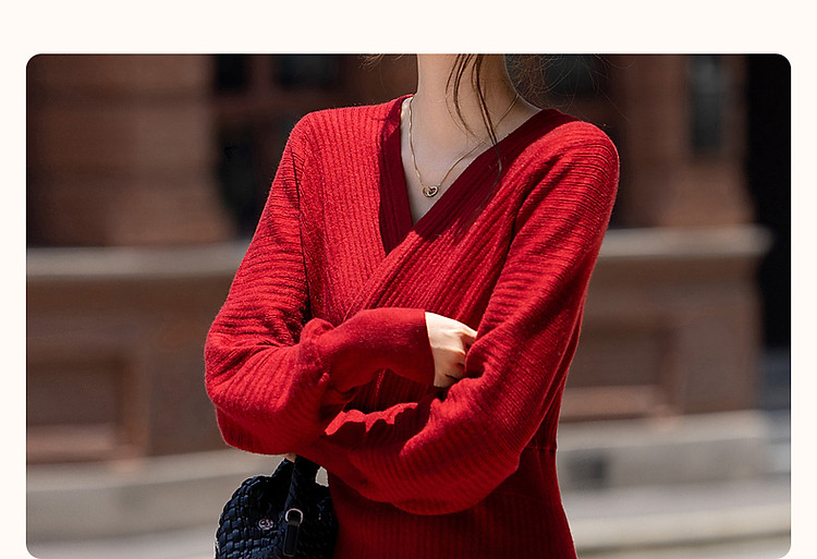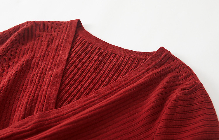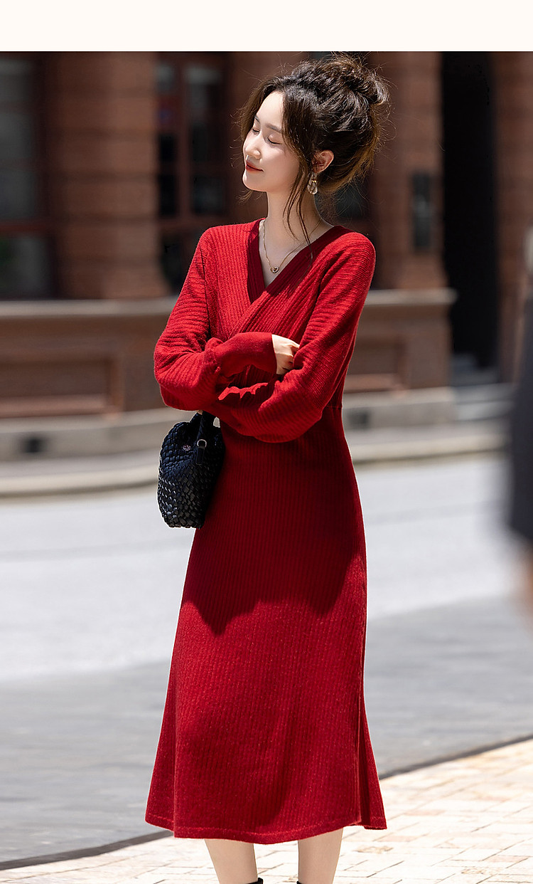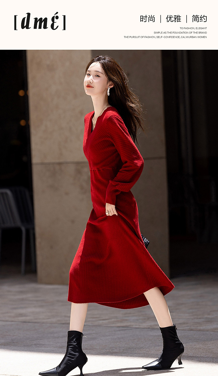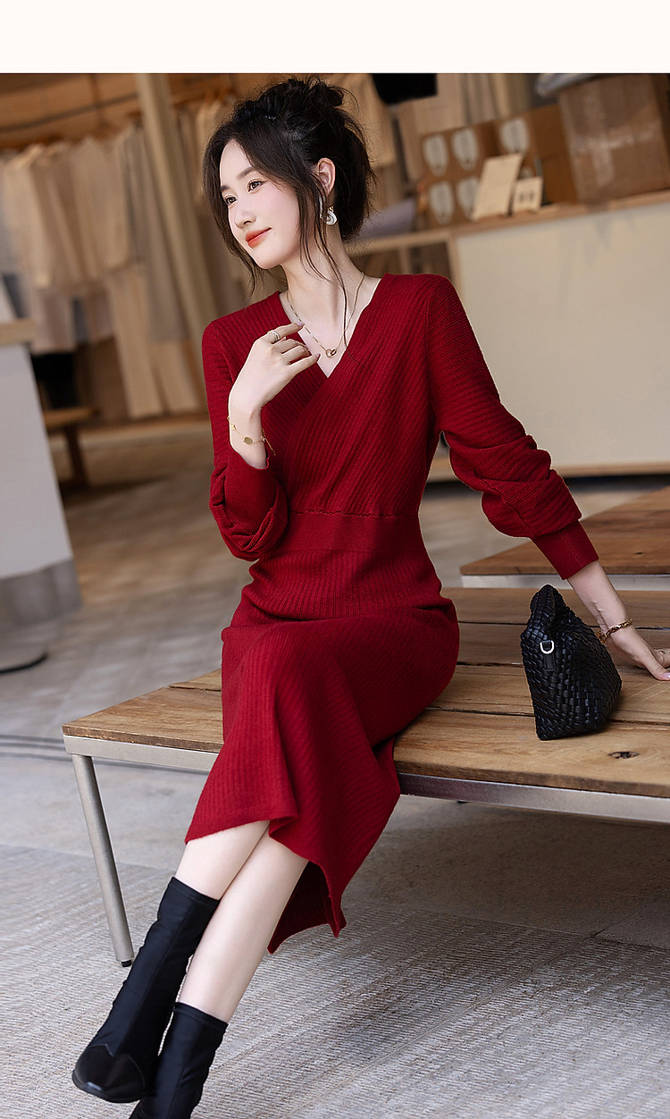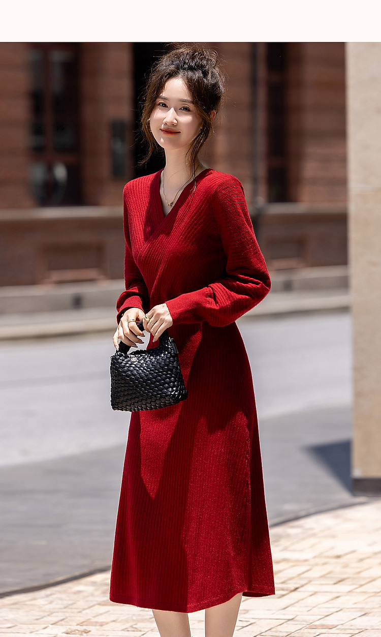 商品名称:【兰因壁月】秋冬云柔美物名媛交叉V领收腰A字藏肉女式连衣裙 773441