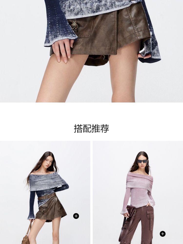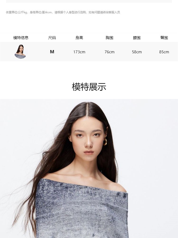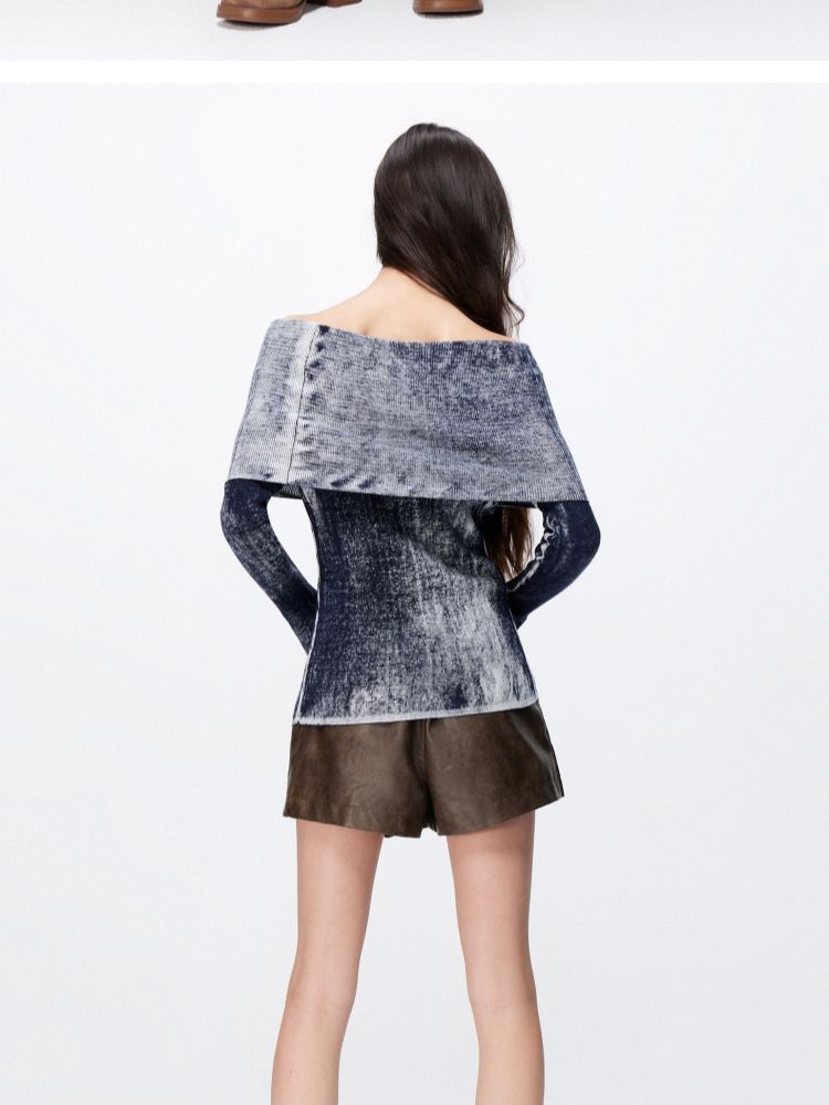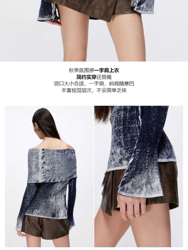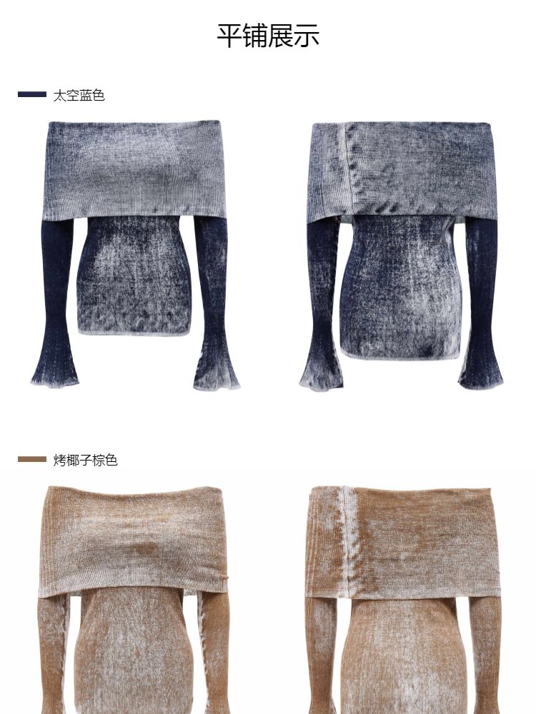 商品名称:【一字肩】春季时尚优雅做旧纯棉修身一字肩针织衫女 904282