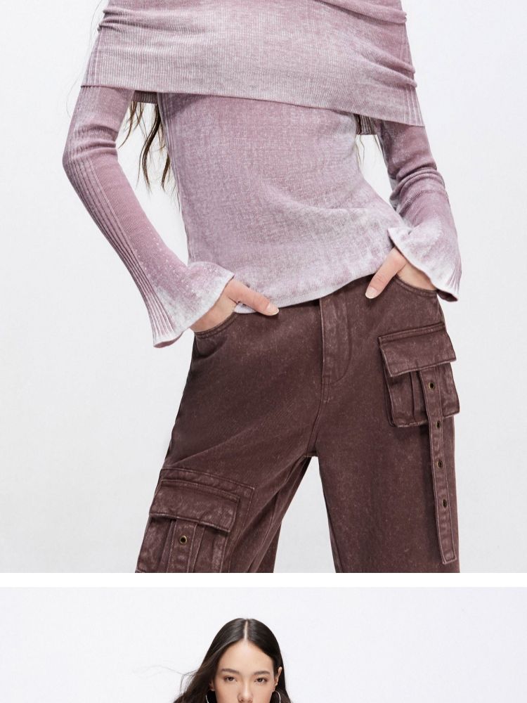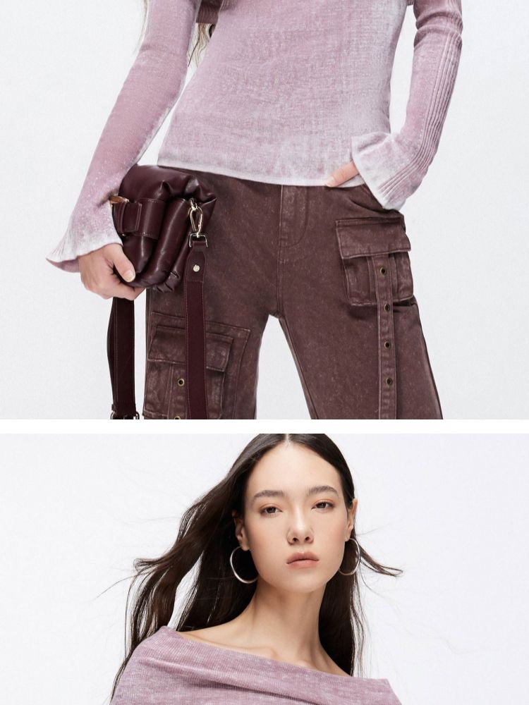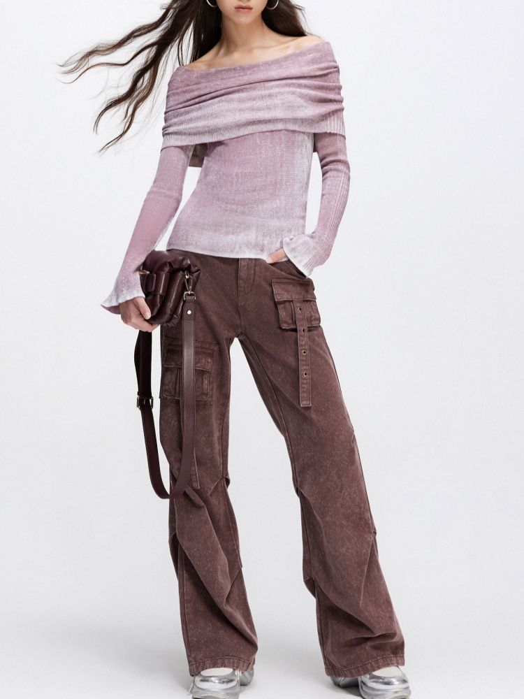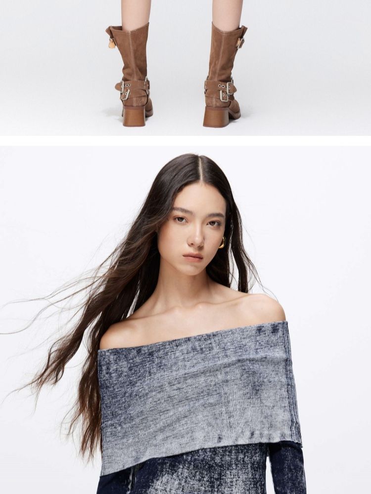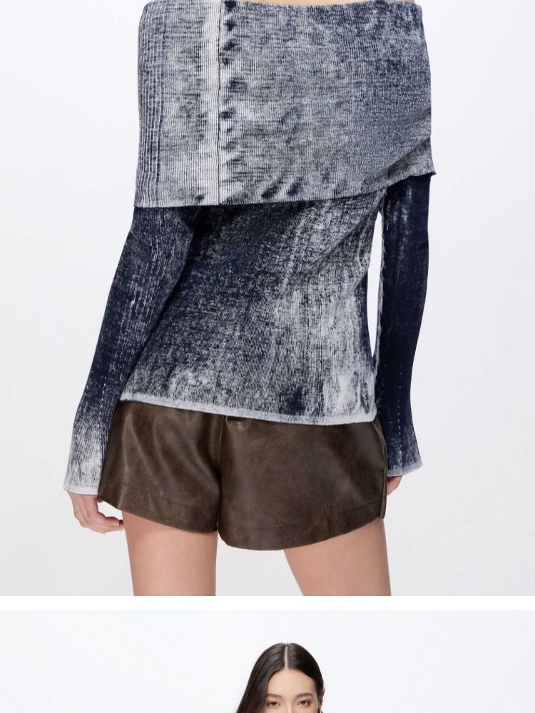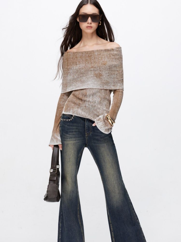 商品名称:【一字肩】春季时尚优雅做旧纯棉修身一字肩针织衫女 904282