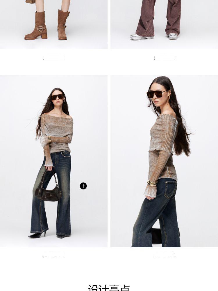 【设计感】春季百搭慵懒设计感圆领露肩纯色针织衫女 021978