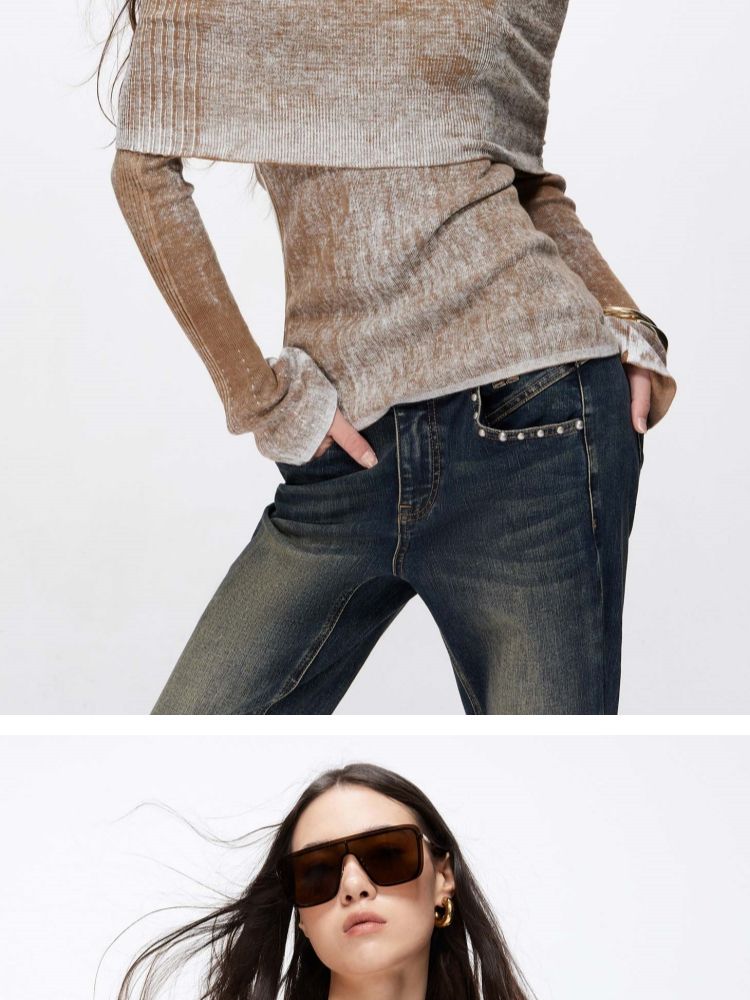 【柔肤肌底液】春秋法式慵懒风线衫设计气质不规则领针织衫女上衣 344385