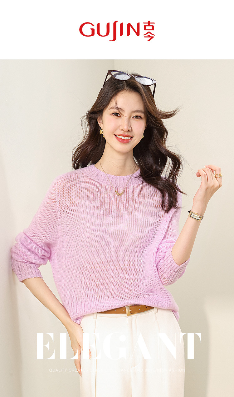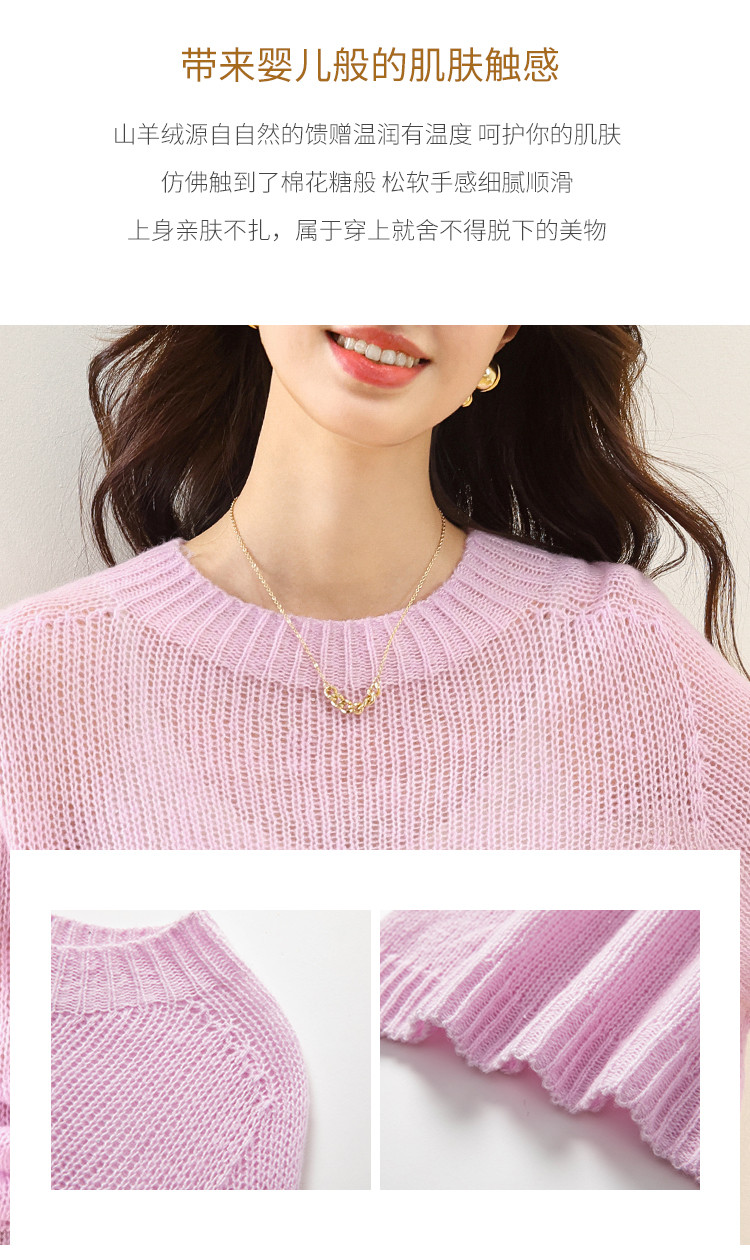 【含山羊绒】圆领百搭羊毛套衫纯色休闲羊毛衫 874707