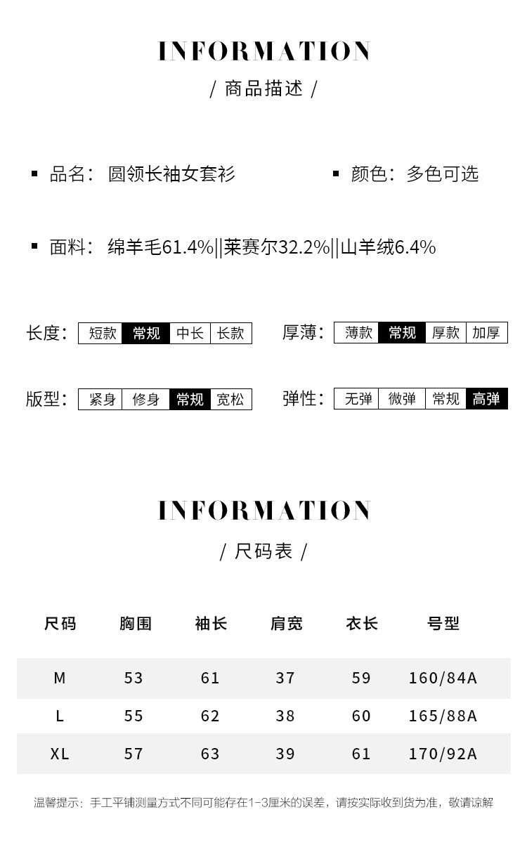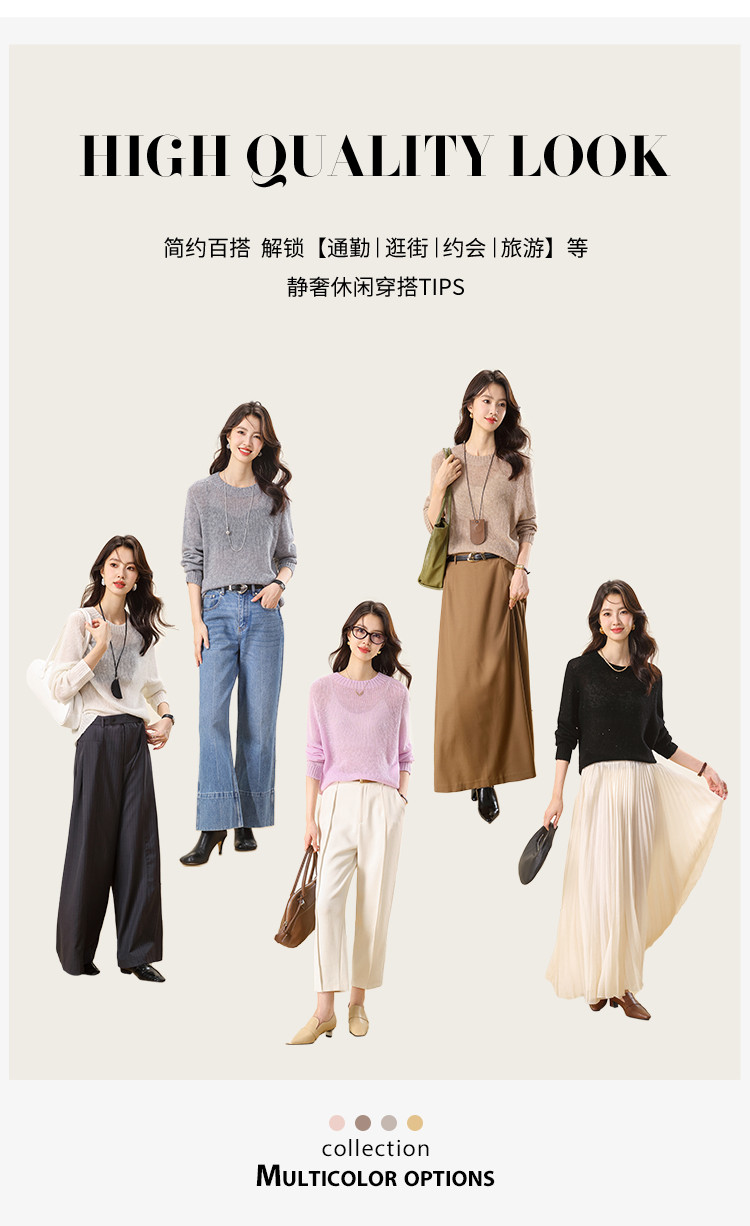 商品名称:【含山羊绒】圆领百搭羊毛套衫纯色休闲羊毛衫 874707