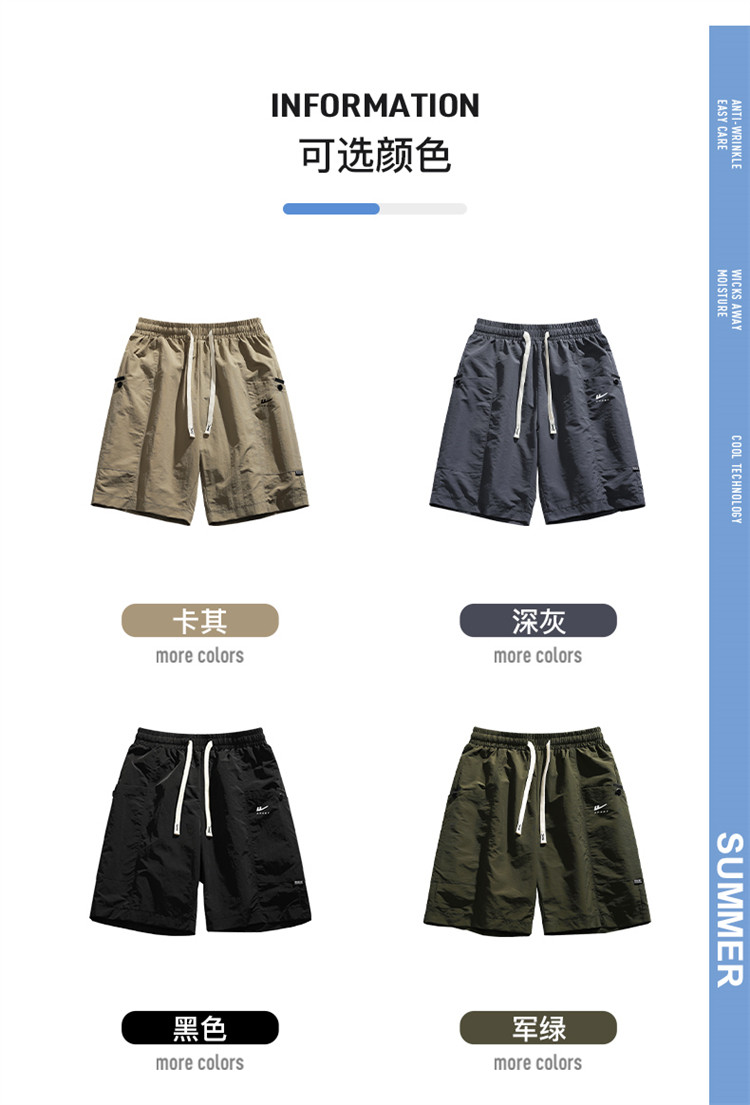 商品名称:夏季户外山系纯色短裤男冰丝薄款潮牌ins宽松休闲工装五分裤子 284499