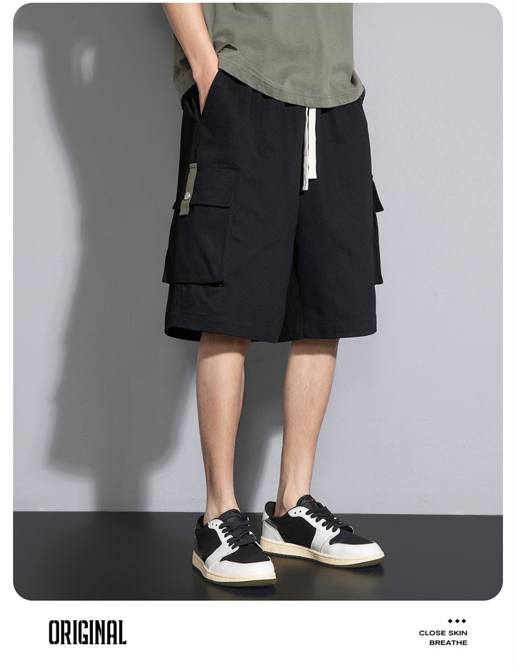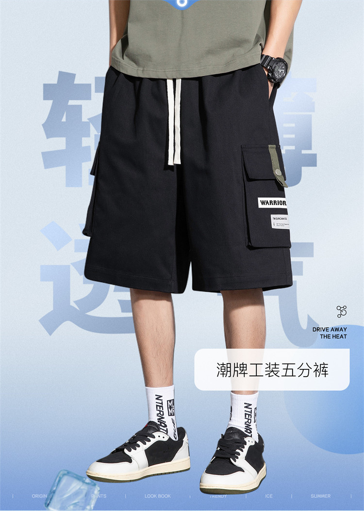 商品名称:工装短裤男生日系复古潮牌潮流直筒中裤美式机能五分裤夏季休闲裤 005267
