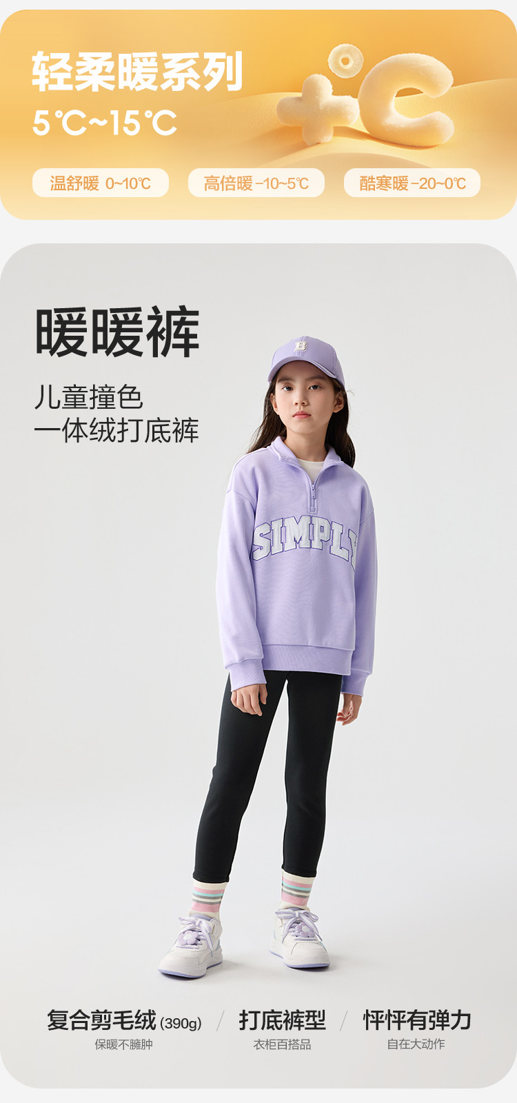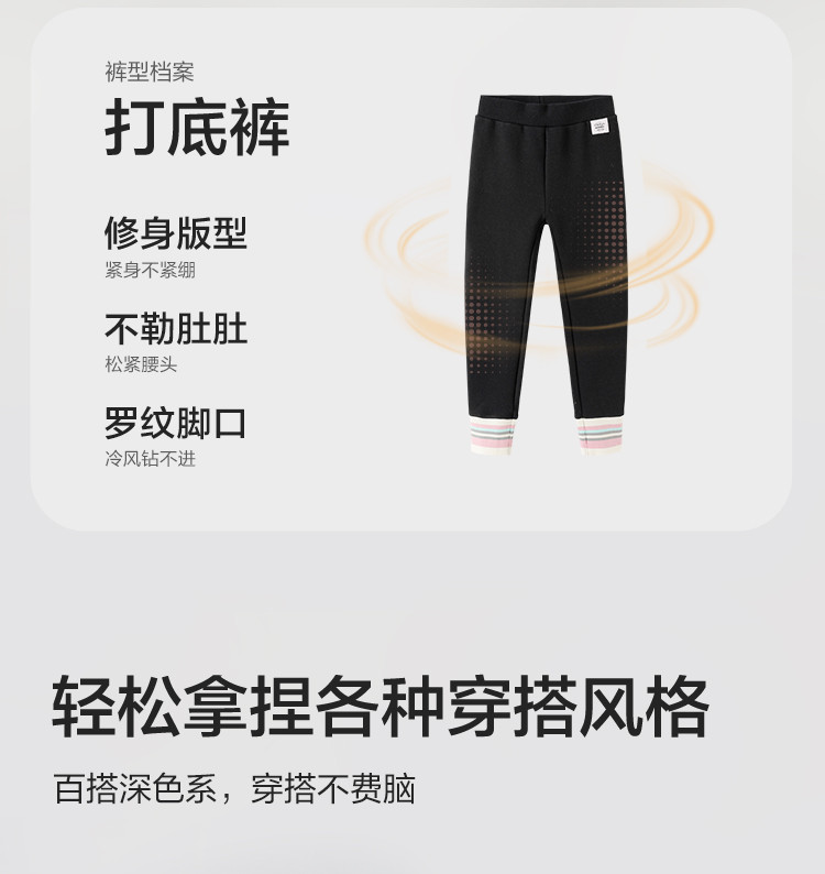 加绒打底裤女童裤子秋冬中大童小童儿童长裤宝宝罗纹轻暖无束缚 809157