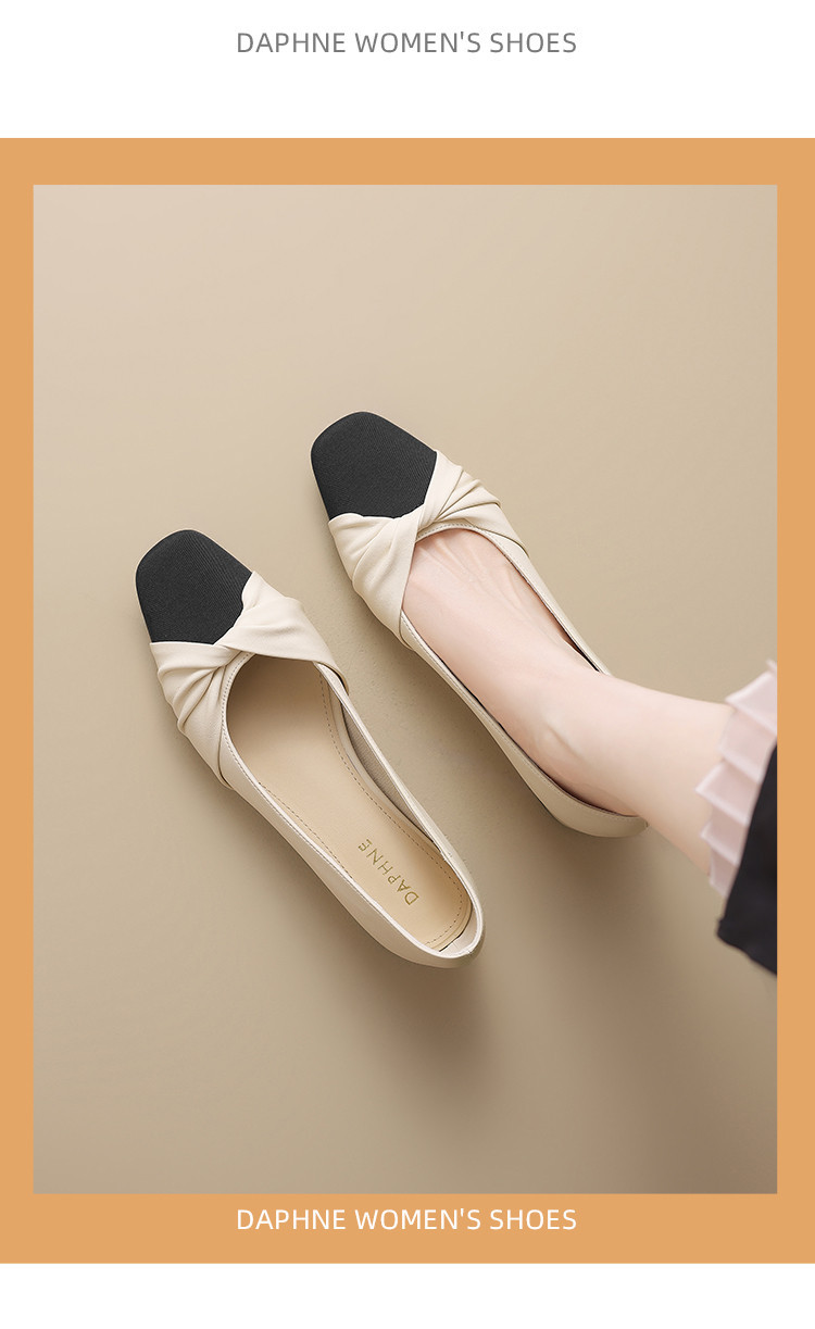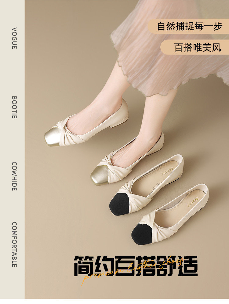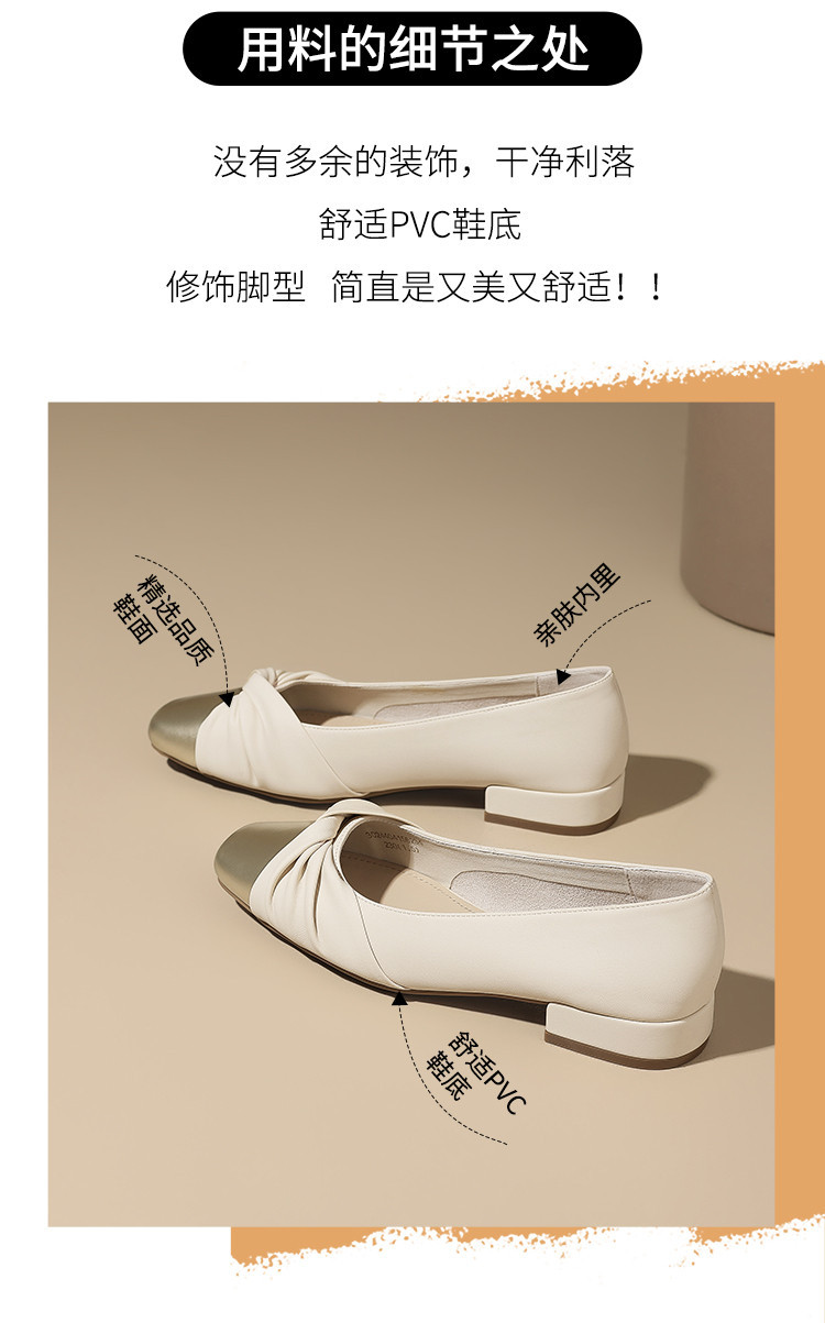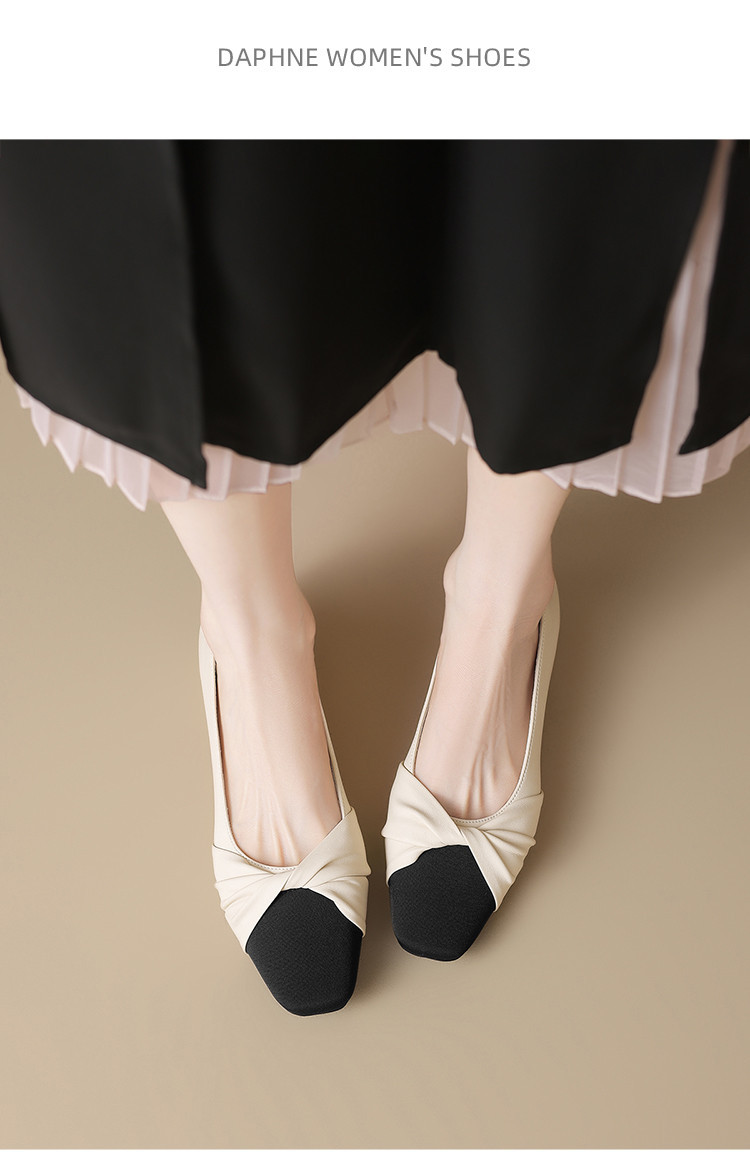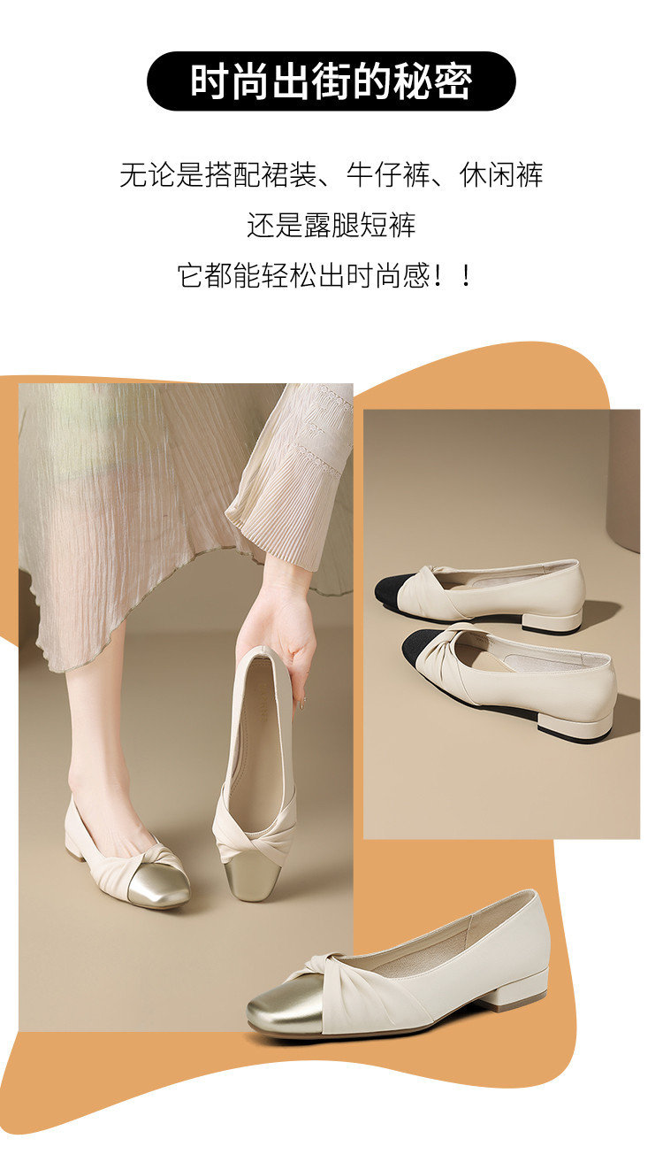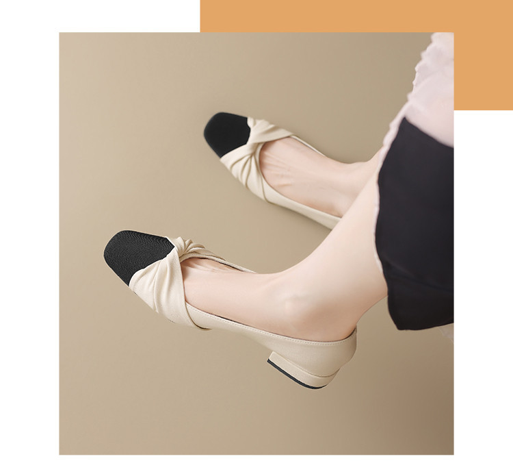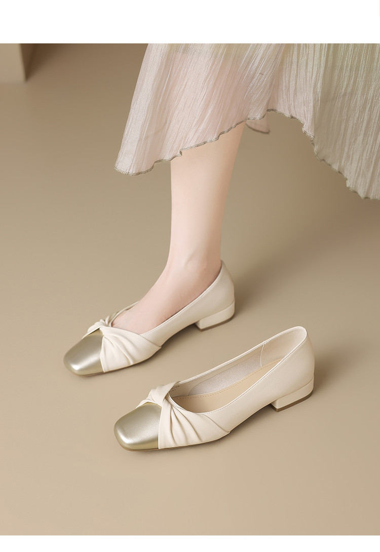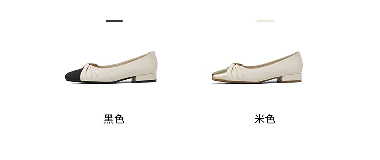 国风撞色气质款皮鞋时装鞋时尚捏皱蝴蝶结百搭女士单鞋 731226