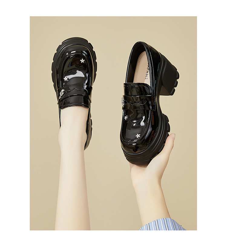 【秒增8CM】学院风JK制服鞋一脚蹬小个子增高乐福鞋单鞋女鞋 227034