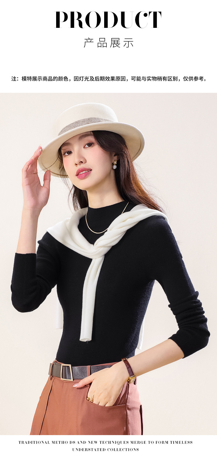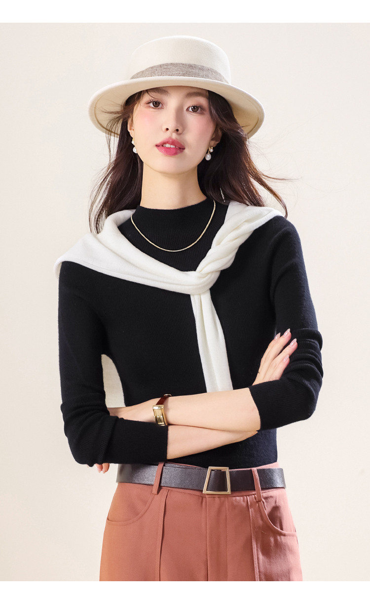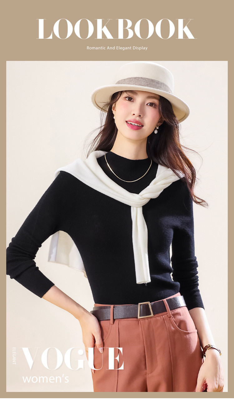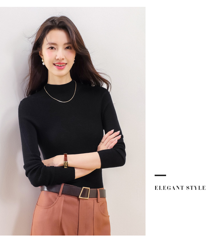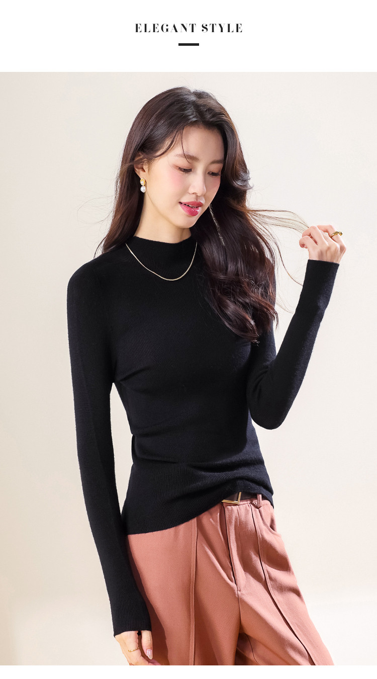 商品名称:【100%绵羊毛】纯色半高领全羊毛针织打底衫毛衣线衫春 279699