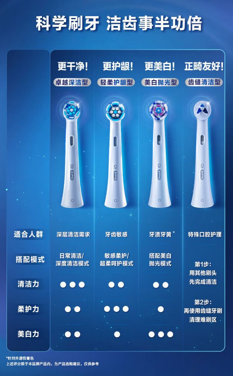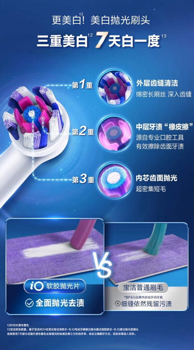 商品名称:欧乐B 齿缝清洁型刷头3支装 弧形刷毛高效清洁牙刷头 适配IO系列牙刷