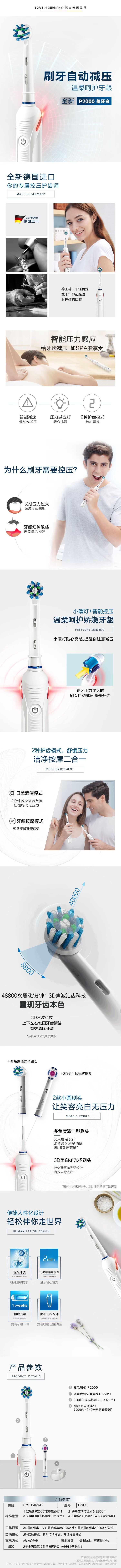 商品名称:欧乐B电动牙刷P2000白色 成人情侣礼物3D声波旋转式充电式牙刷(标配刷头*2)
