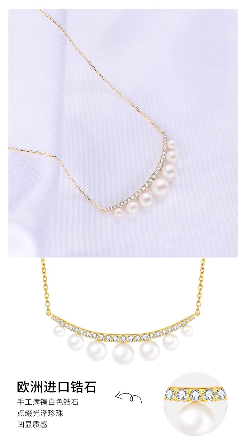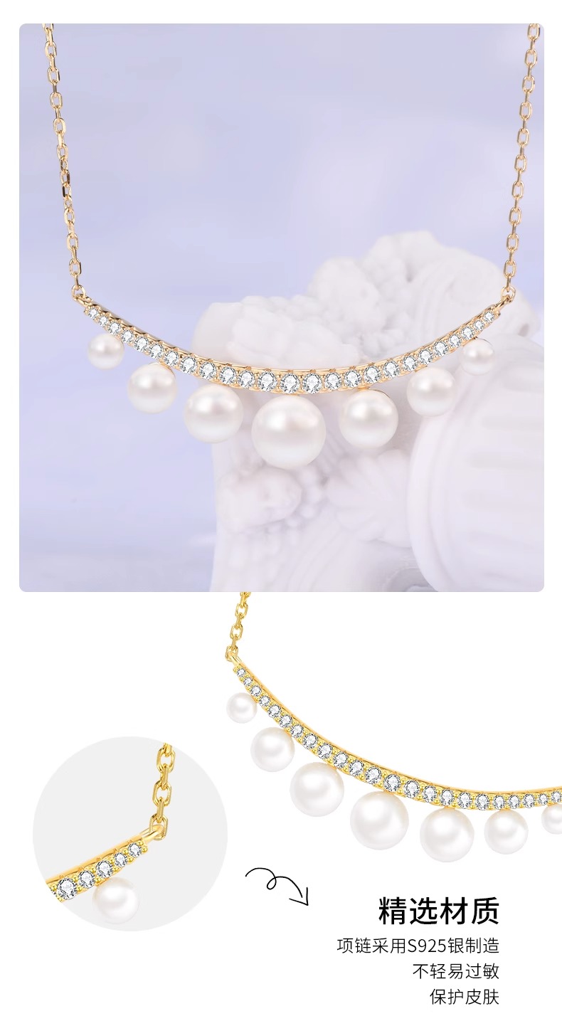微笑定格-珍珠排列香槟金色项链