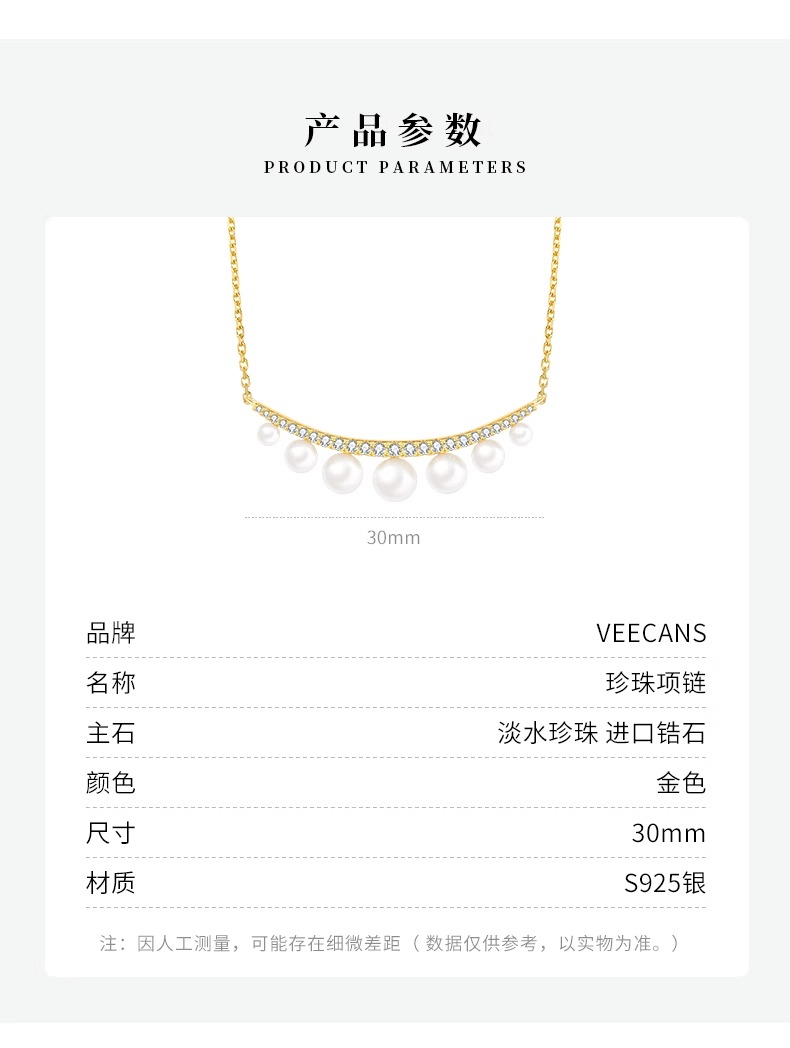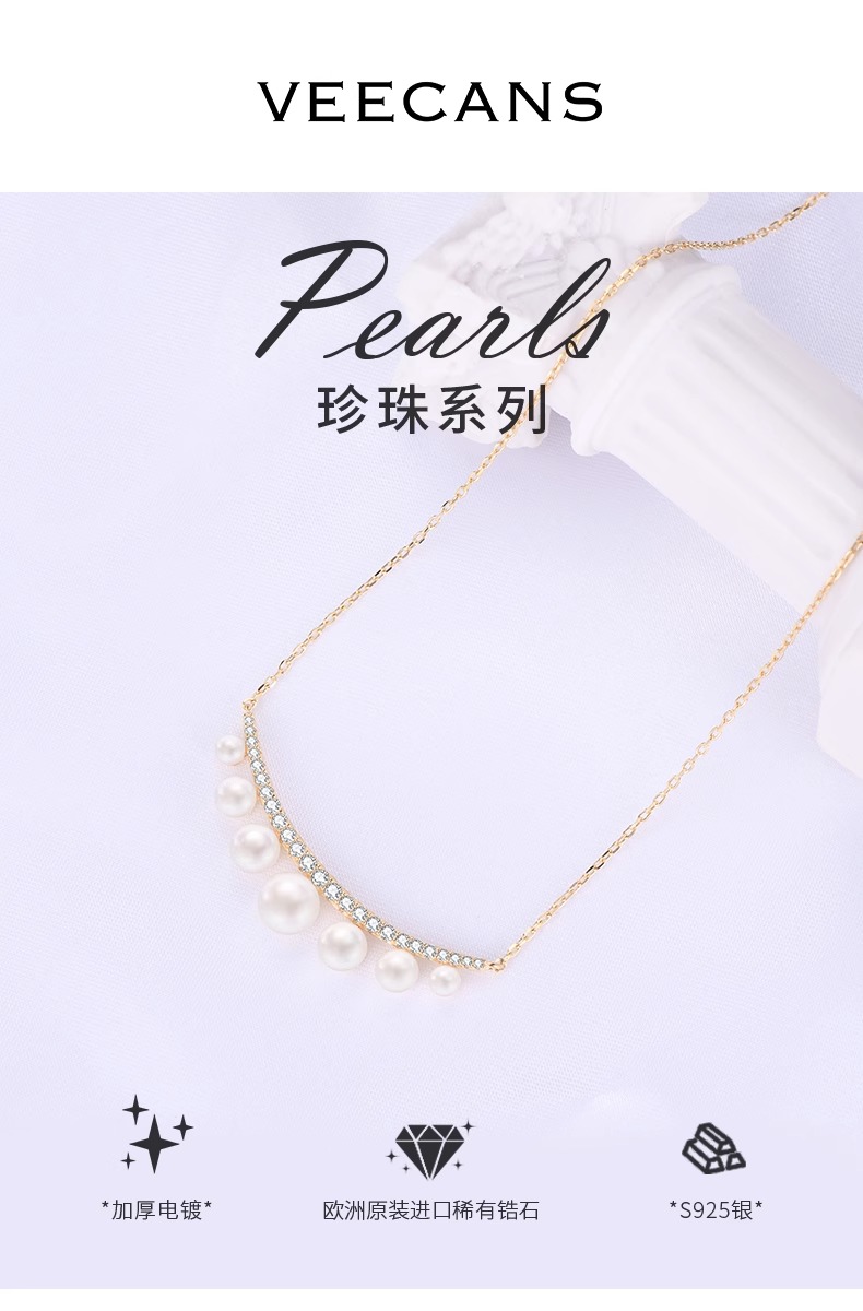 商品名称:veecans珍珠项链轻奢小众女生2023年新款银饰礼物法式高级感配饰