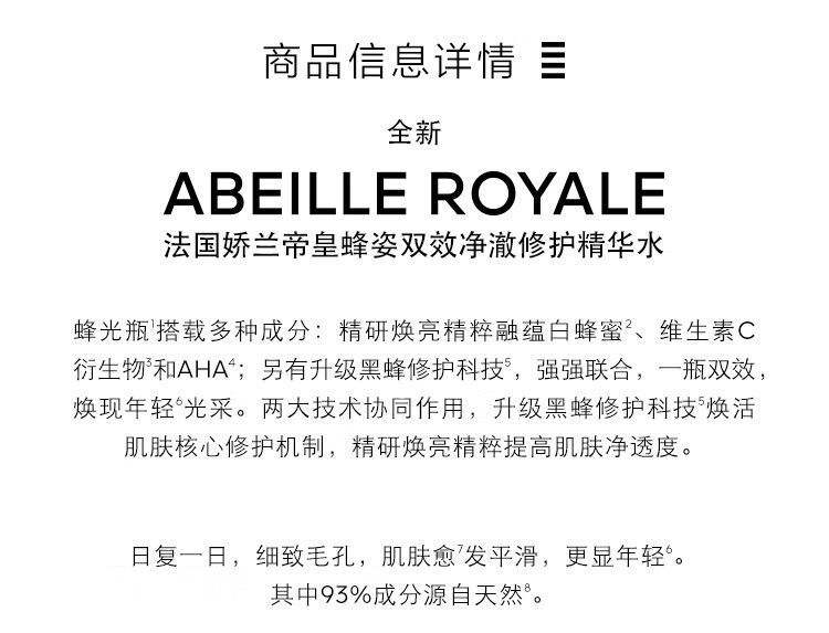 商品名称:Guerlain/娇兰 全新帝皇蜂姿滋润水精华水蜂光瓶 150ml