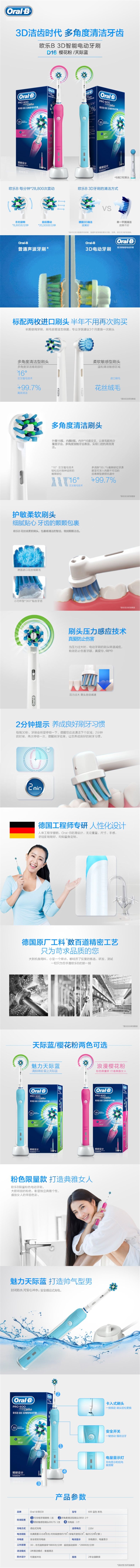 商品名称:欧乐B(Oral-B)德国电动牙刷成人充电式3D声波家用圆头 P600蓝色