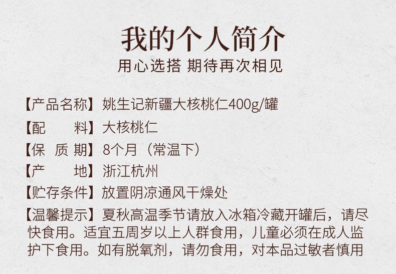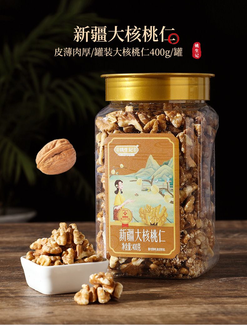 商品名称:姚生记400克罐装新疆大核桃仁休闲坚果仁儿童孕妇美味零食果仁