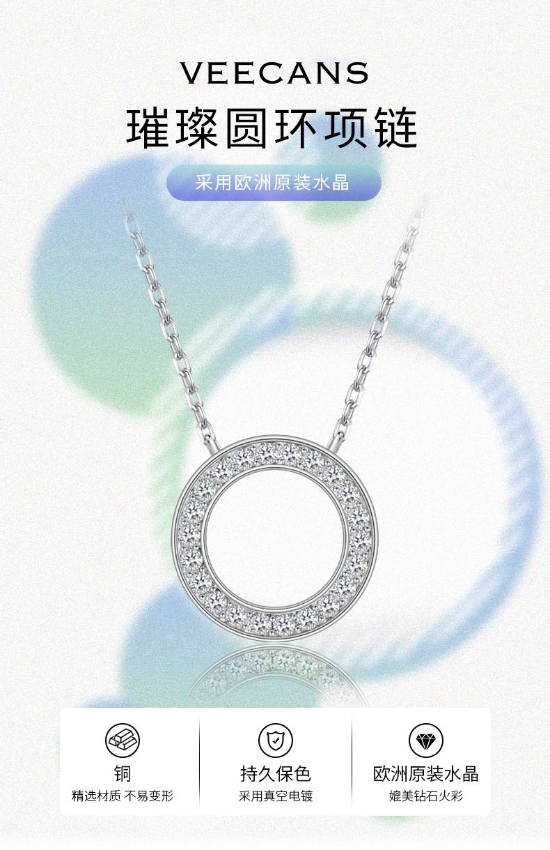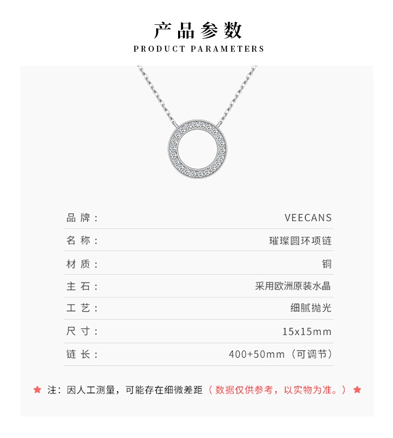 veecans璀璨圆环项链简约气质高级感配饰小众设计感百搭锁骨链 白色