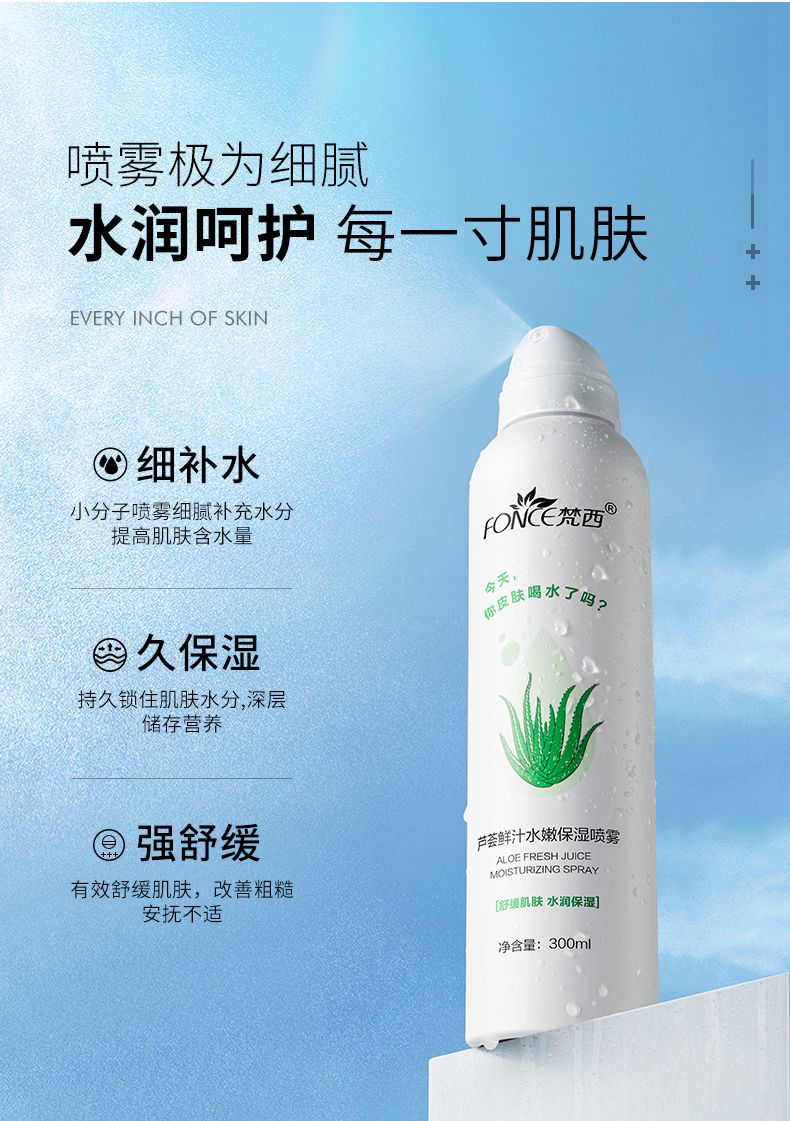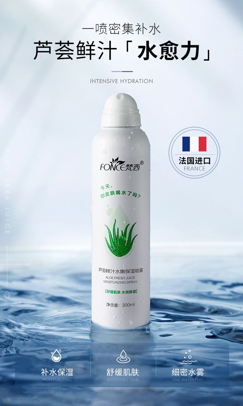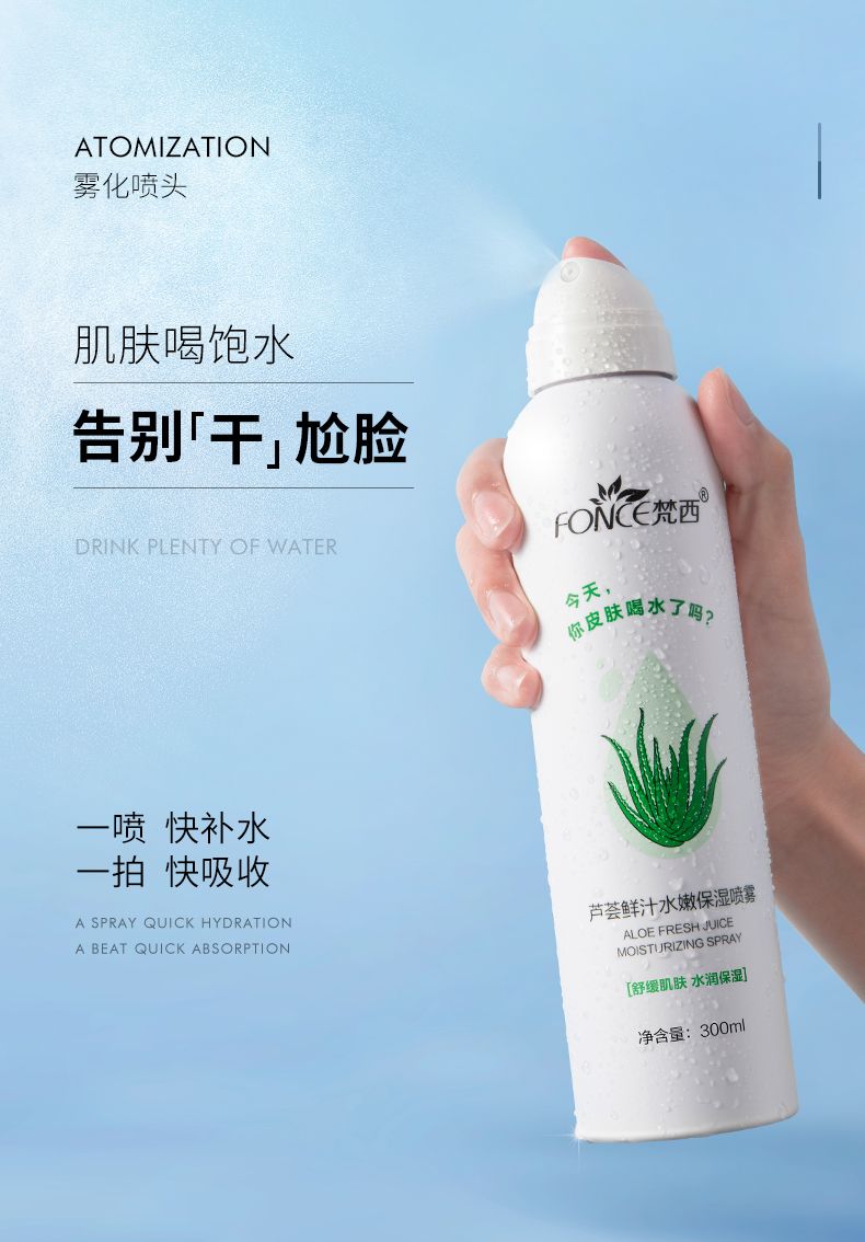 商品名称:【2瓶】FONCE梵西芦荟鲜汁水嫩保湿喷雾 舒缓修护水润透亮化妆水收缩毛孔爽肤水