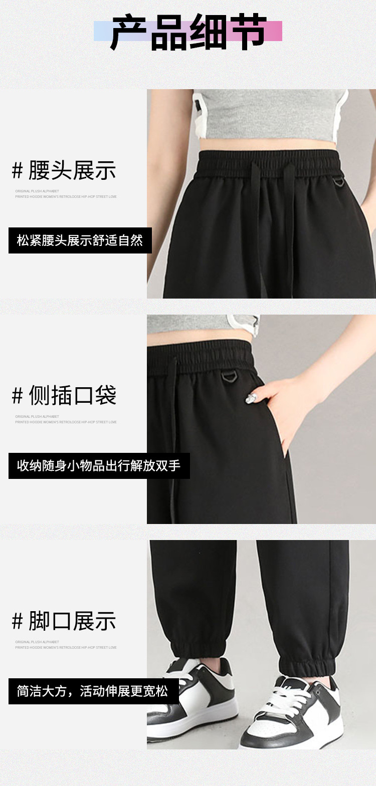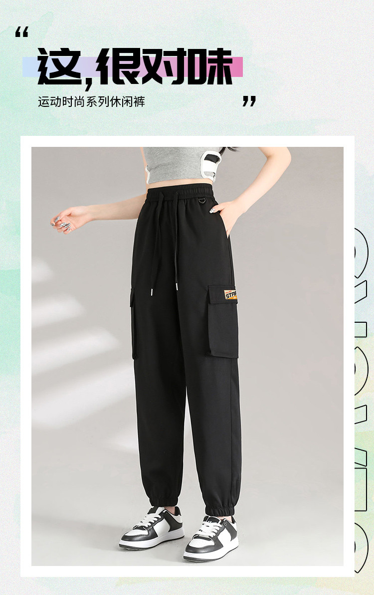商品名称:女式工装裤宽松显瘦运动裤显瘦显高束脚裤百搭女款长裤美式休闲裤 973267