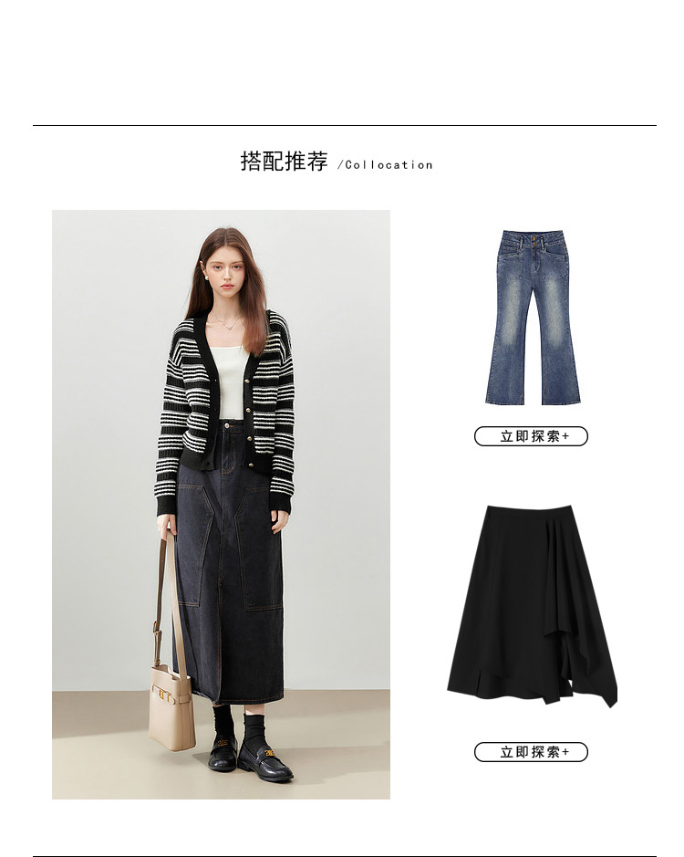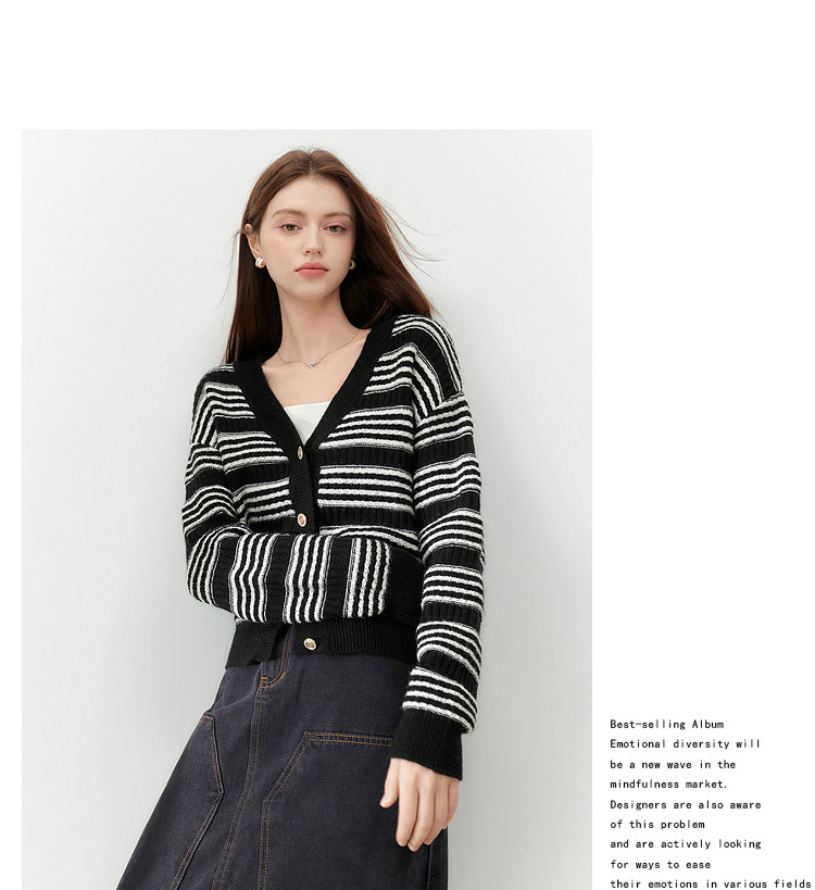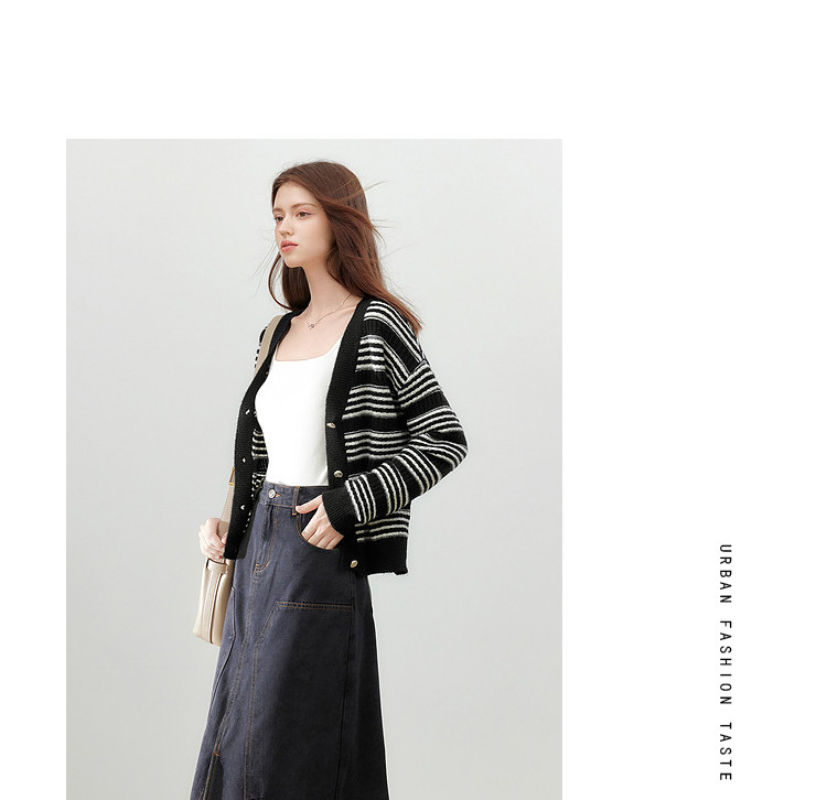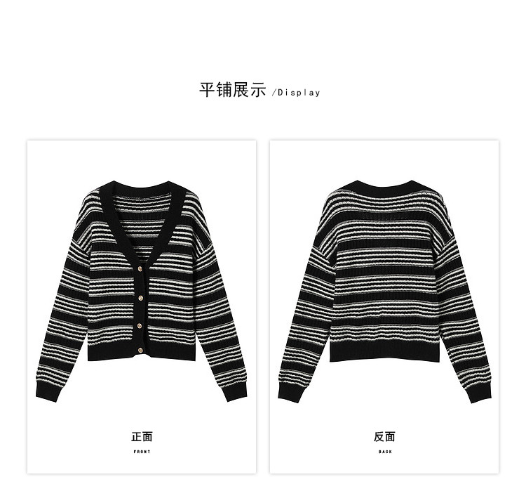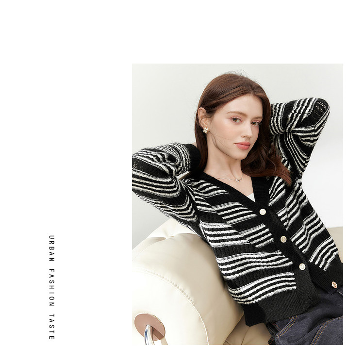 商品名称:【2024秋季】简约气质粗条纹V领针织开衫毛衣慵懒风外套女 865748