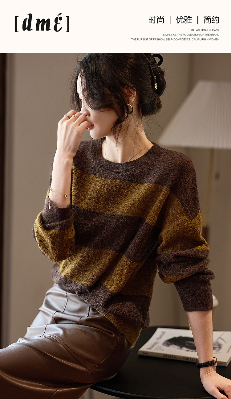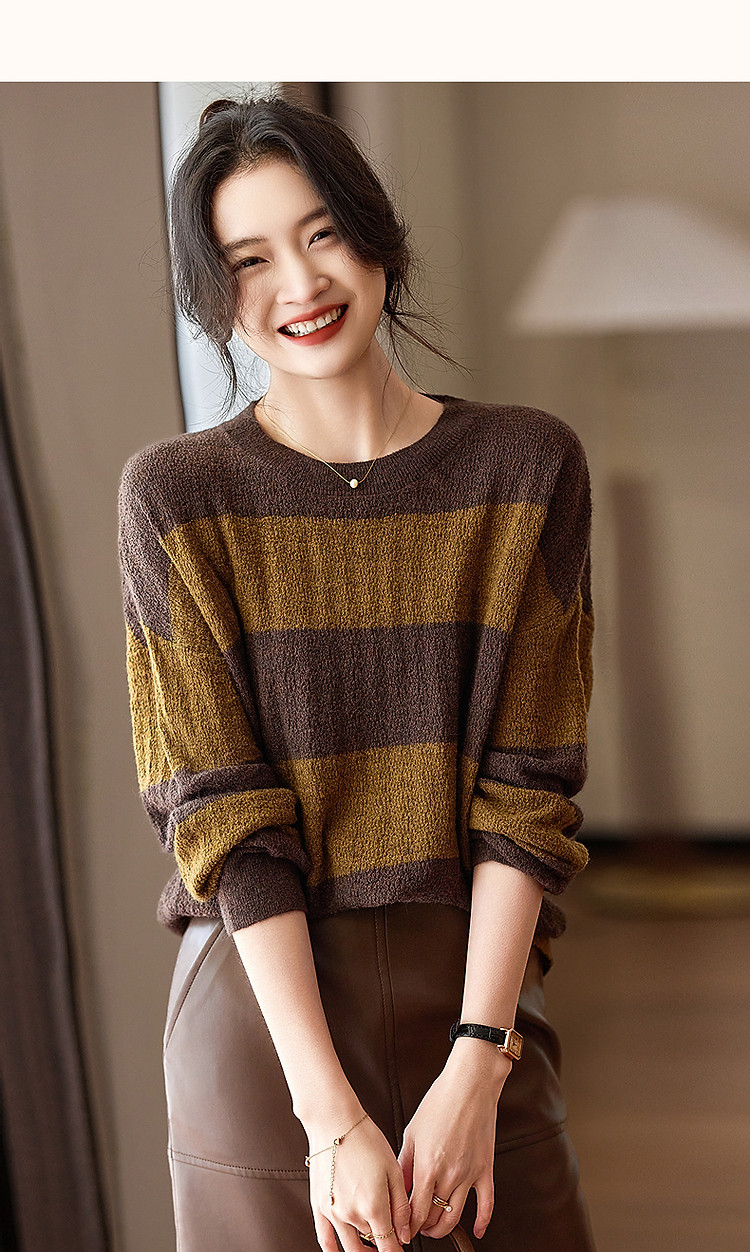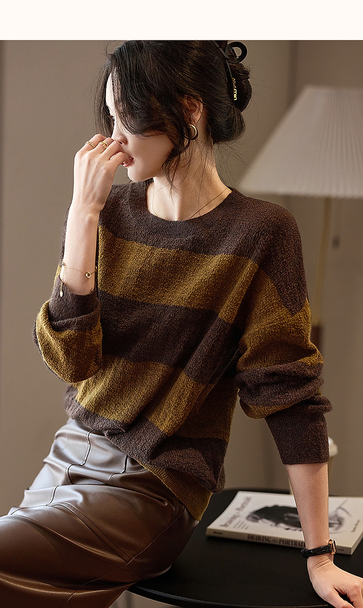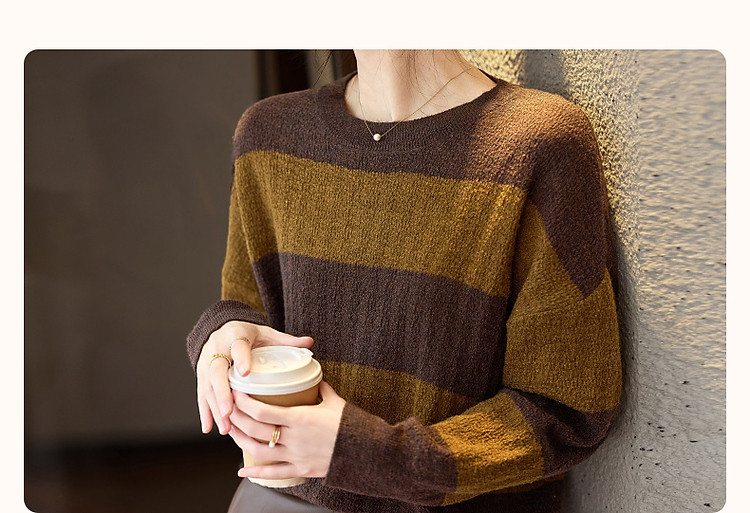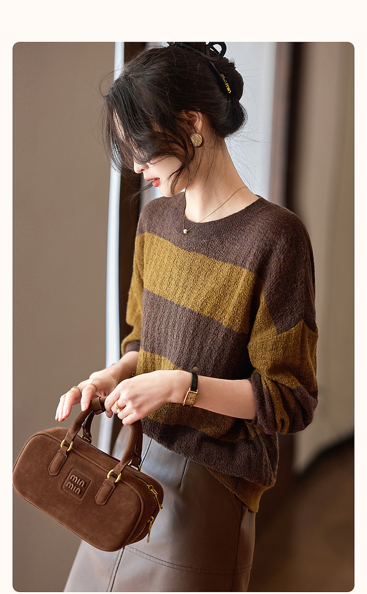 商品名称:【线条美学】春多巴胺条纹撞色线衫含绵羊毛舒适藏肉针织衫女上衣 217921