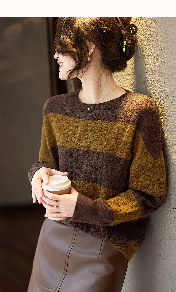 【线条美学】春多巴胺条纹撞色线衫含绵羊毛舒适藏肉针织衫女上衣 217921