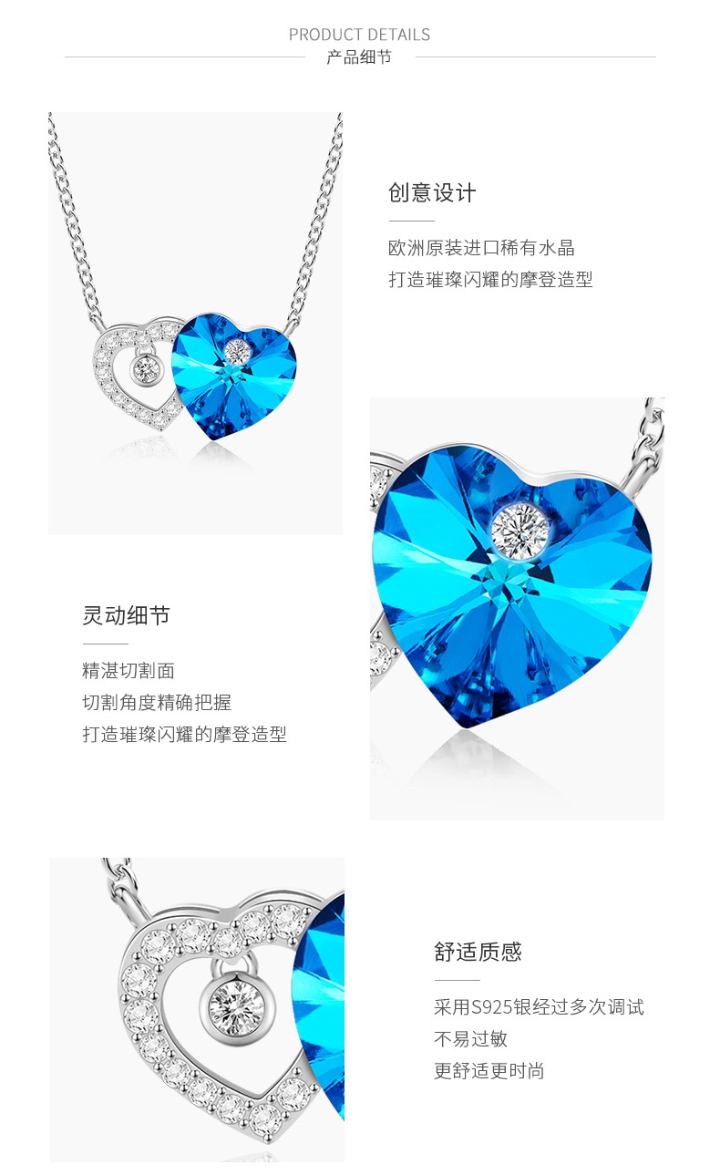 商品名称:veecans爱心水晶项链女款925银简约气质吊坠情人节礼物高级感百搭