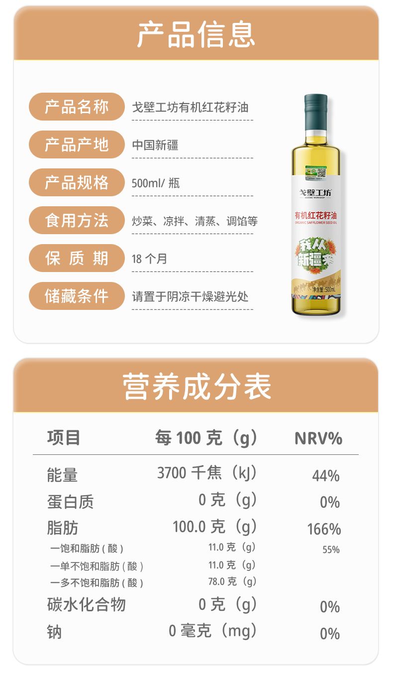 戈壁工坊有机红花籽油