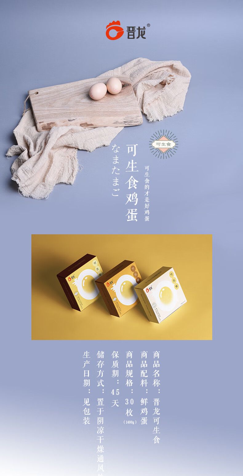 商品名称:晋龙可生食鲜鸡蛋30枚1.4kg