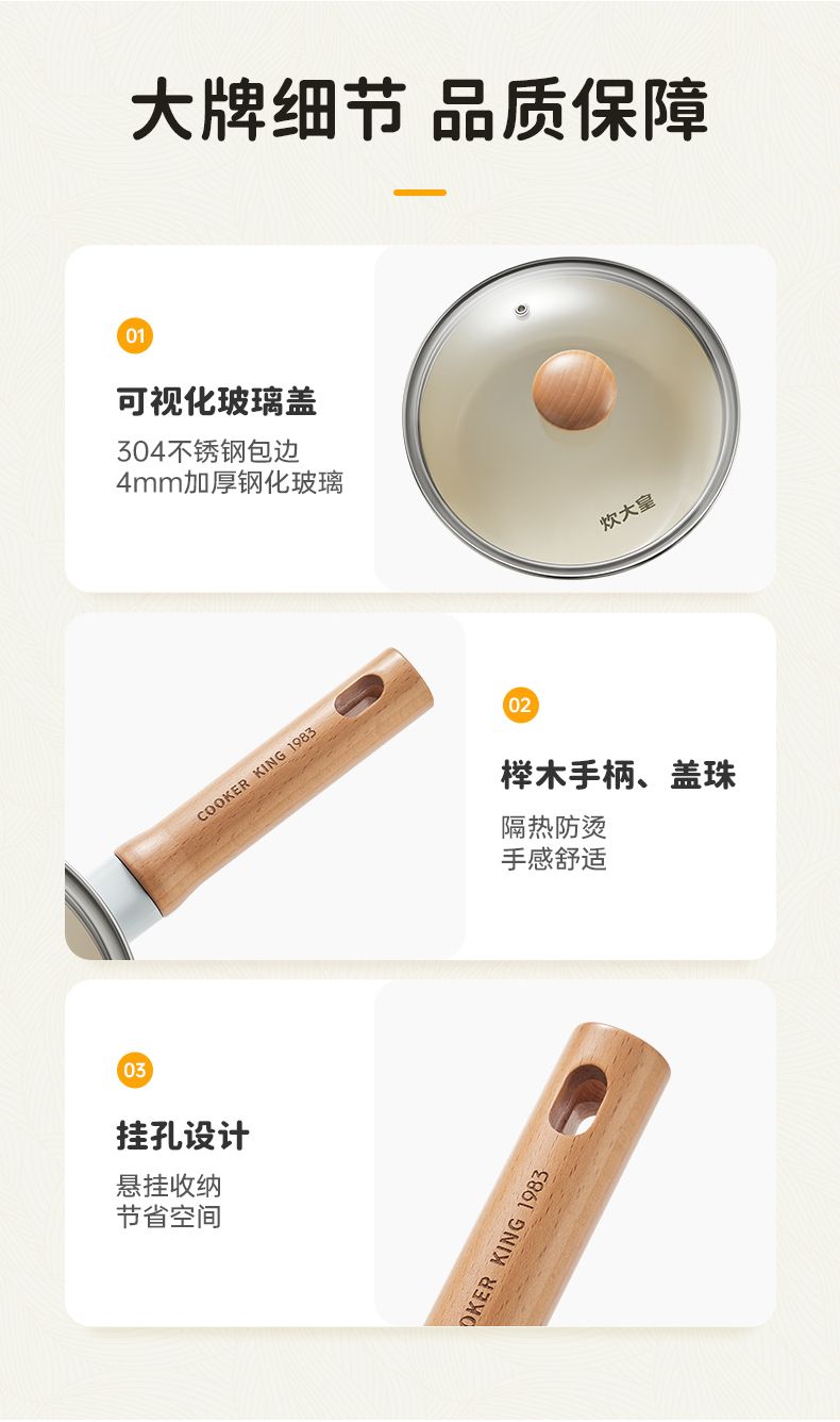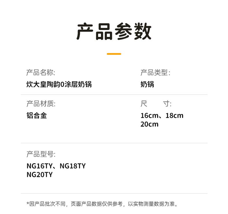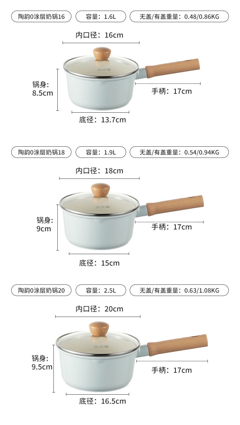 商品名称:炊大皇陶韵0涂层奶锅 陶瓷不粘锅婴儿宝宝辅食锅小奶锅煮锅汤锅NG16TY NG18TY NG20TY