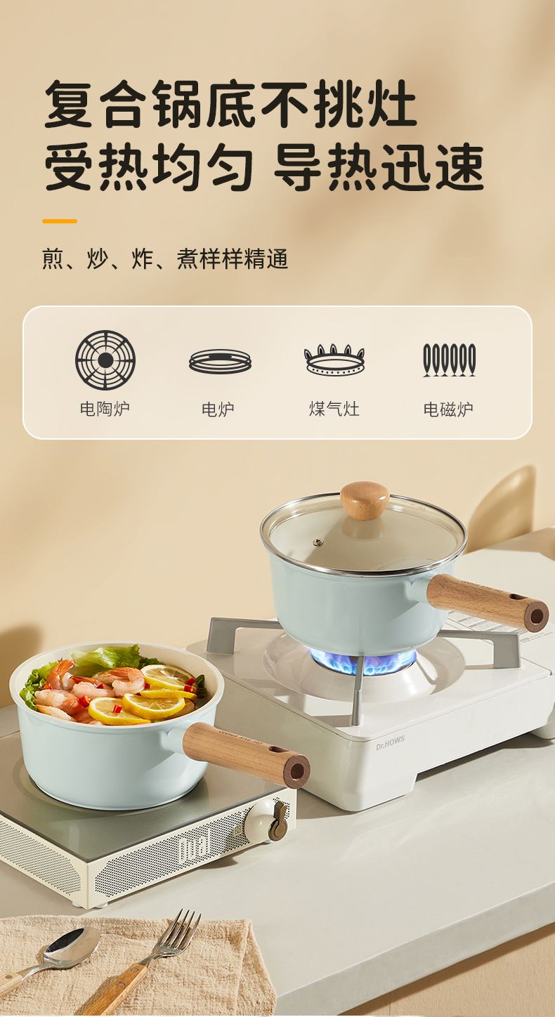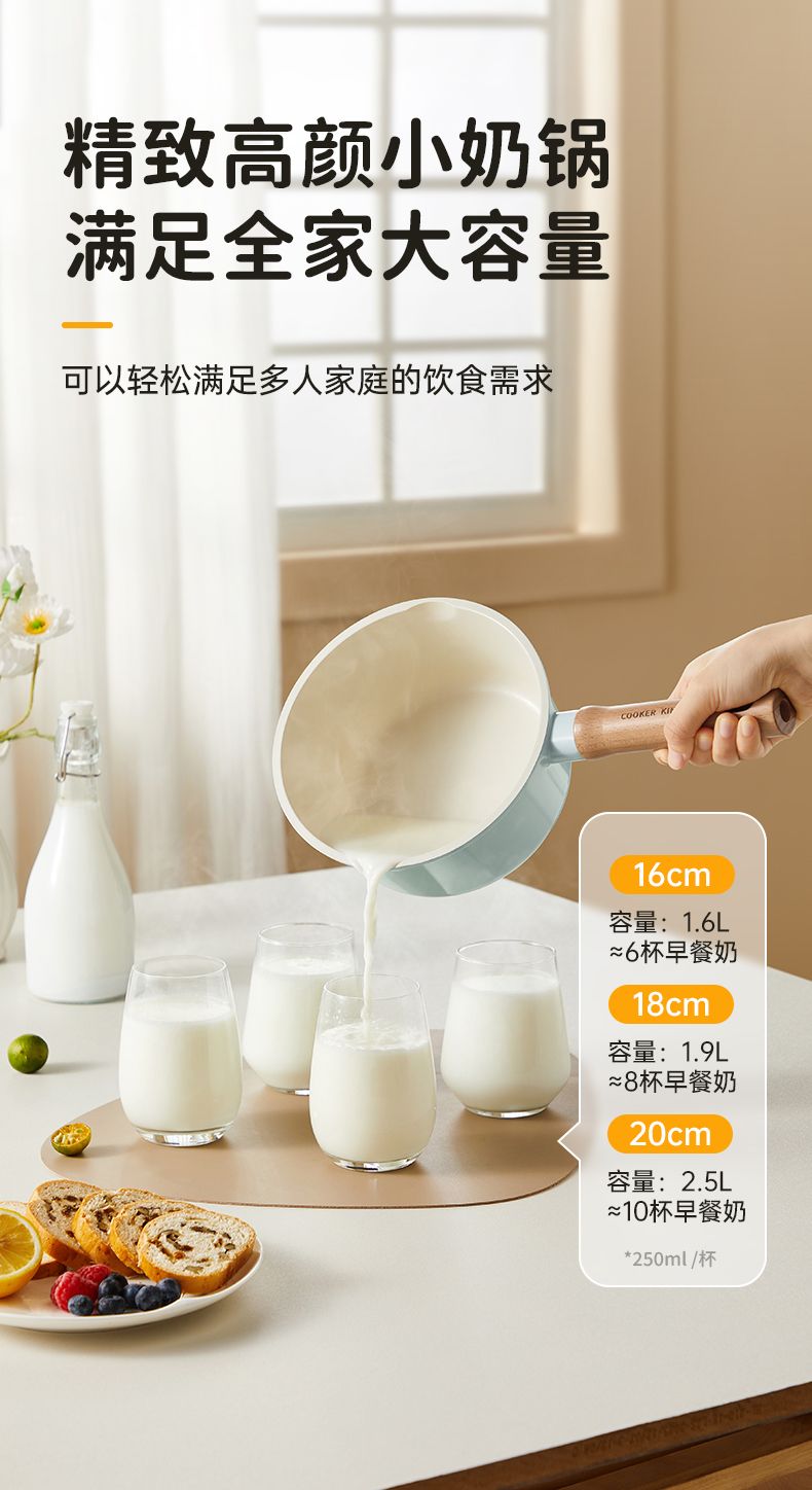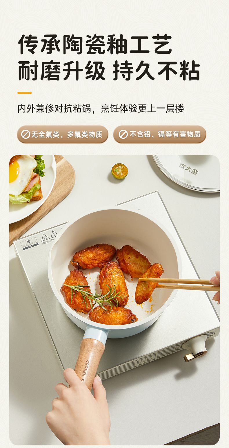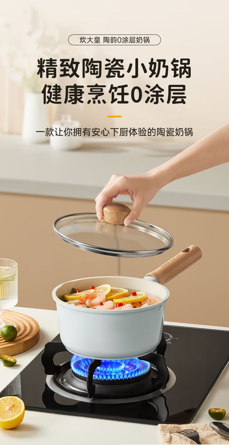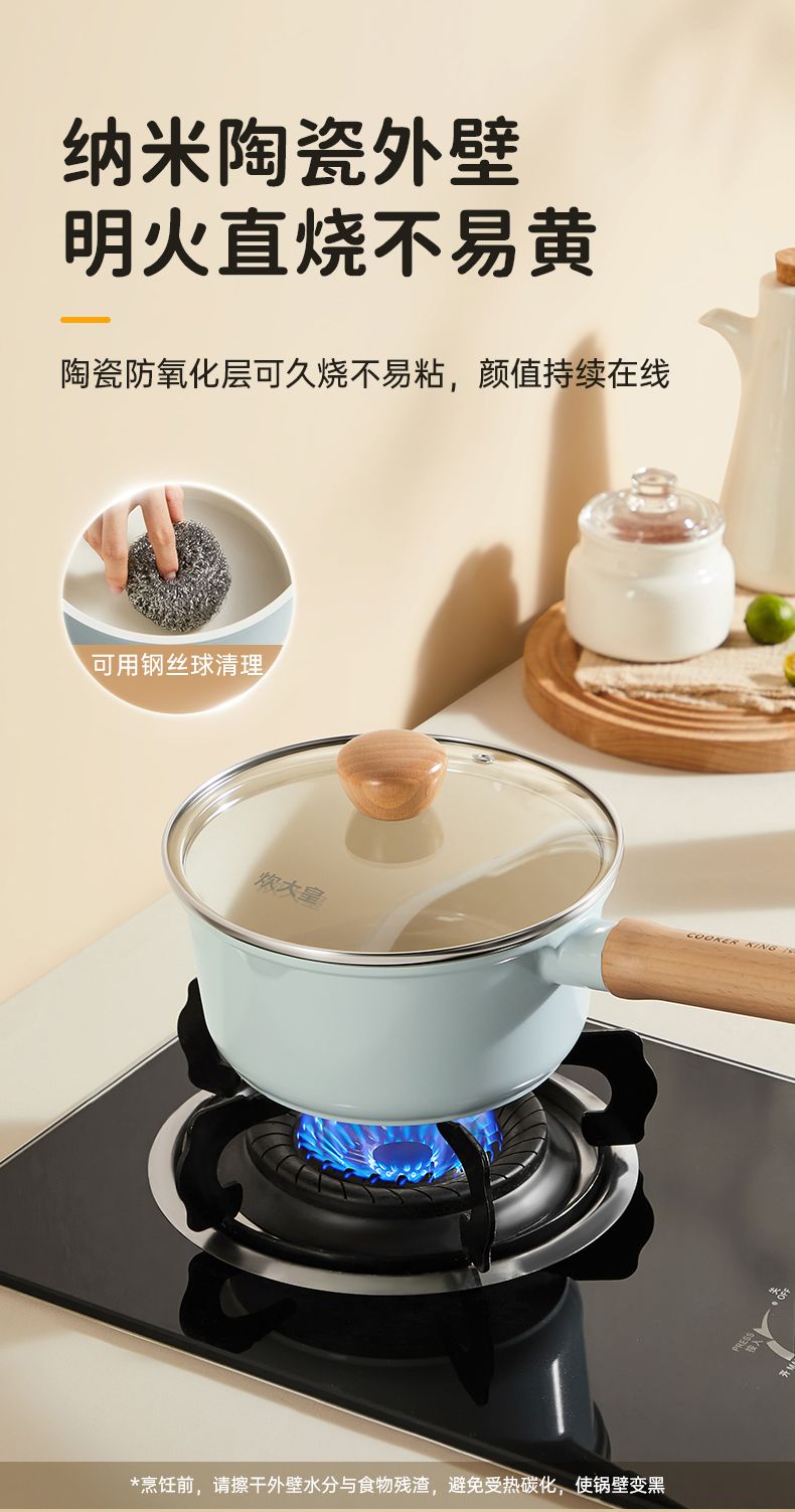 炊大皇陶韵0涂层奶锅 陶瓷不粘锅婴儿宝宝辅食锅小奶锅煮锅汤锅NG16TY NG18TY NG20TY