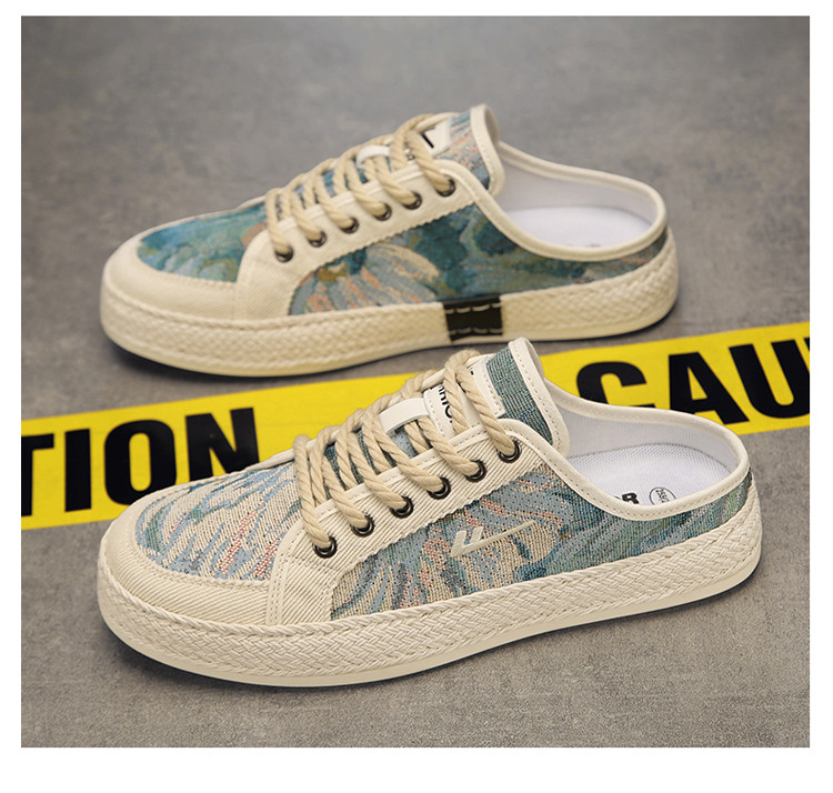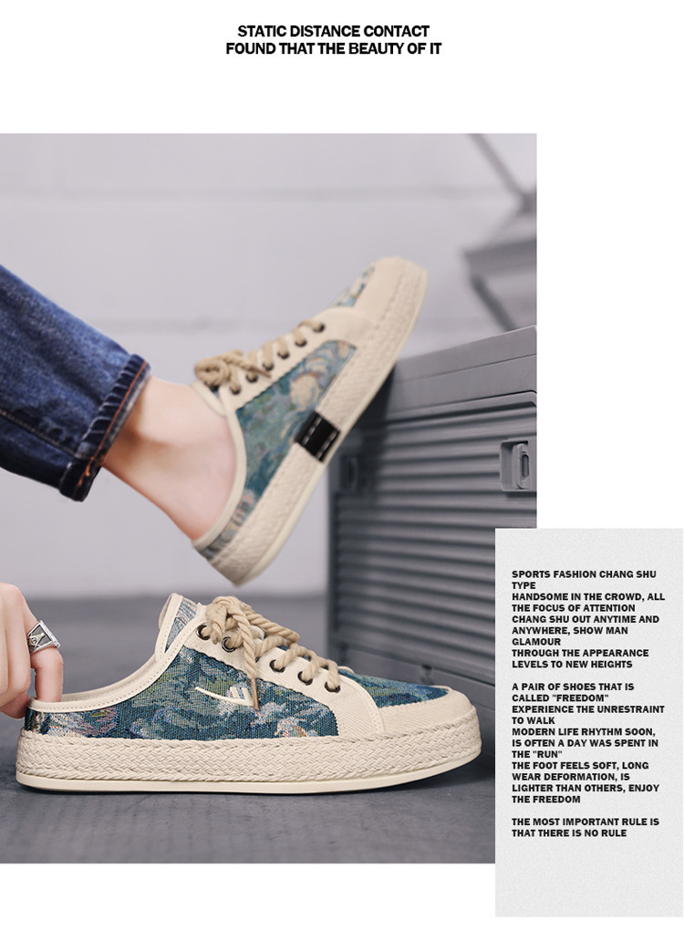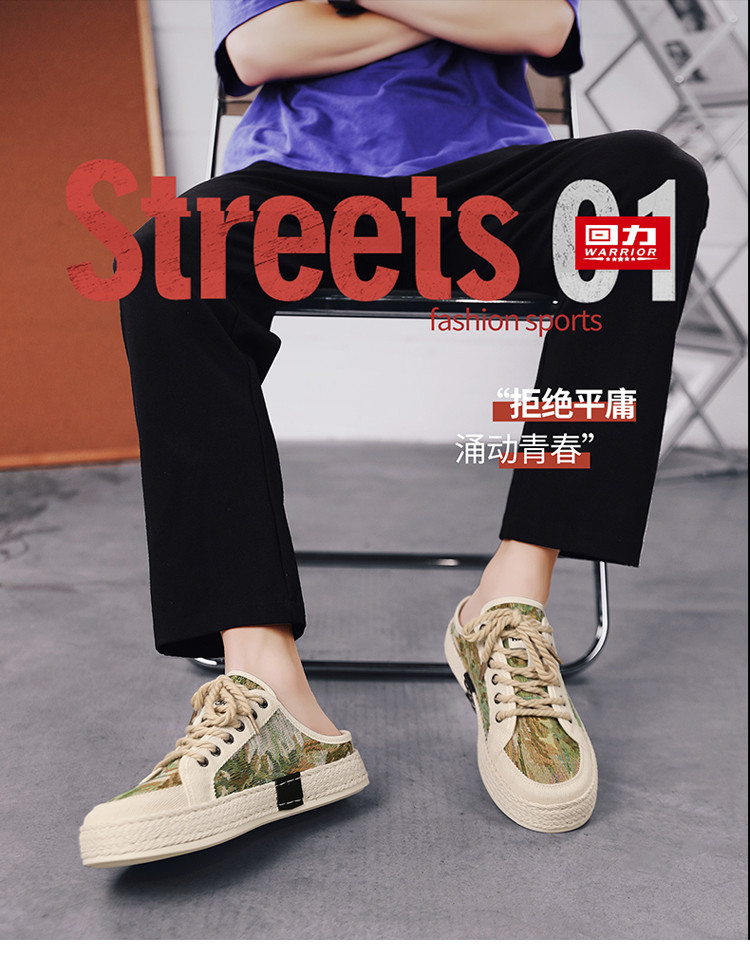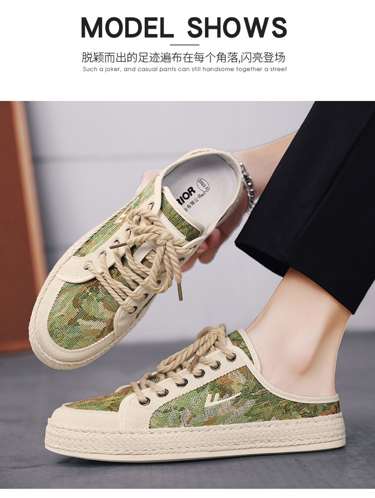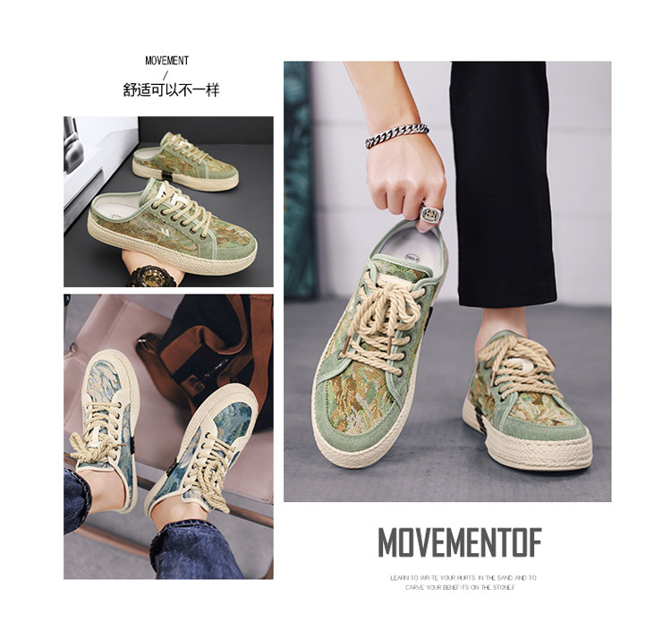 商品名称:【爆款男鞋】夏季透气薄款运动休闲懒人一脚蹬无后跟包头半拖布鞋 452112