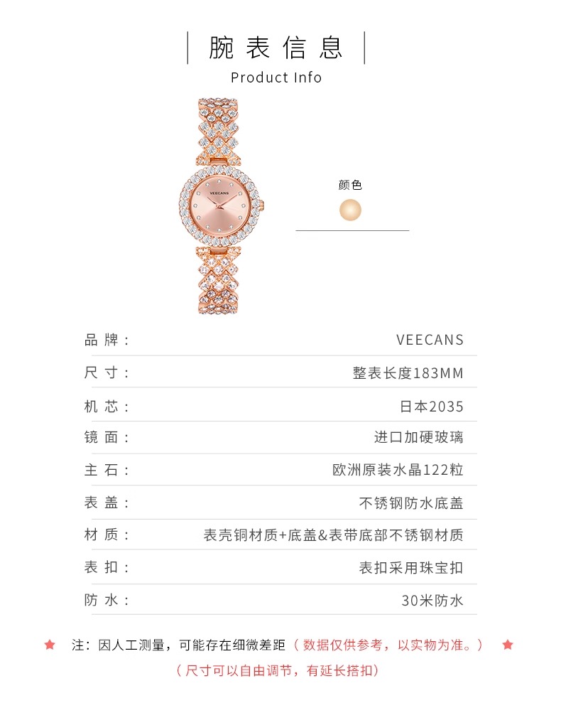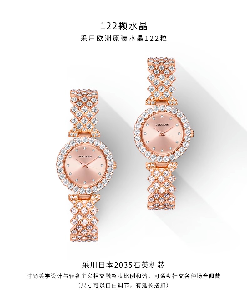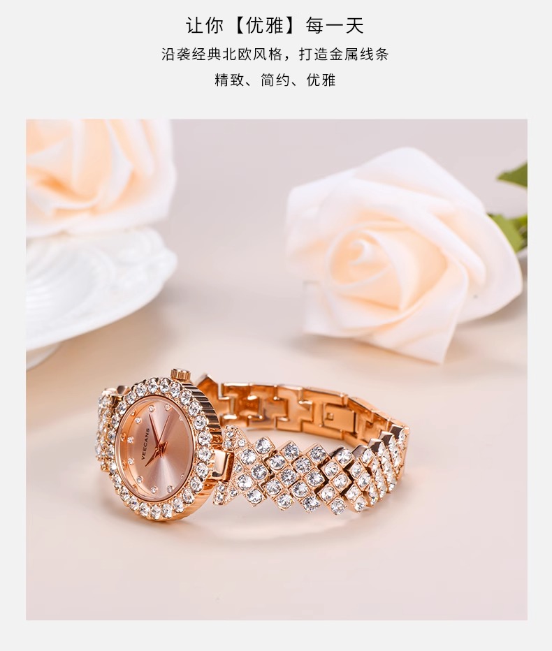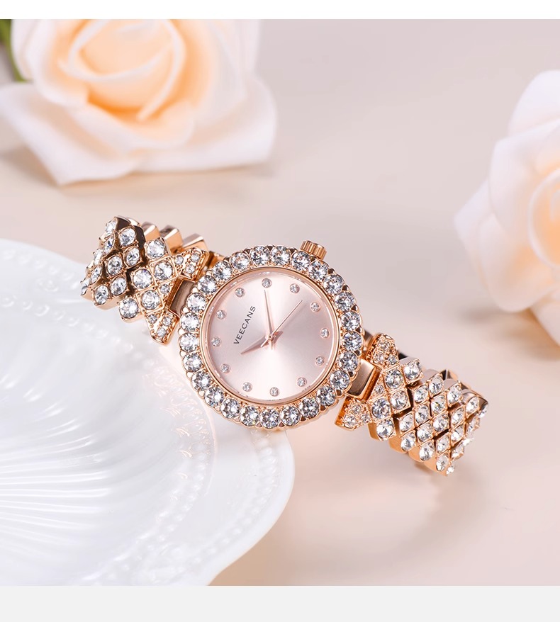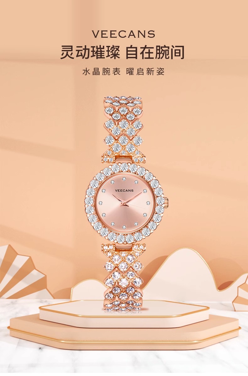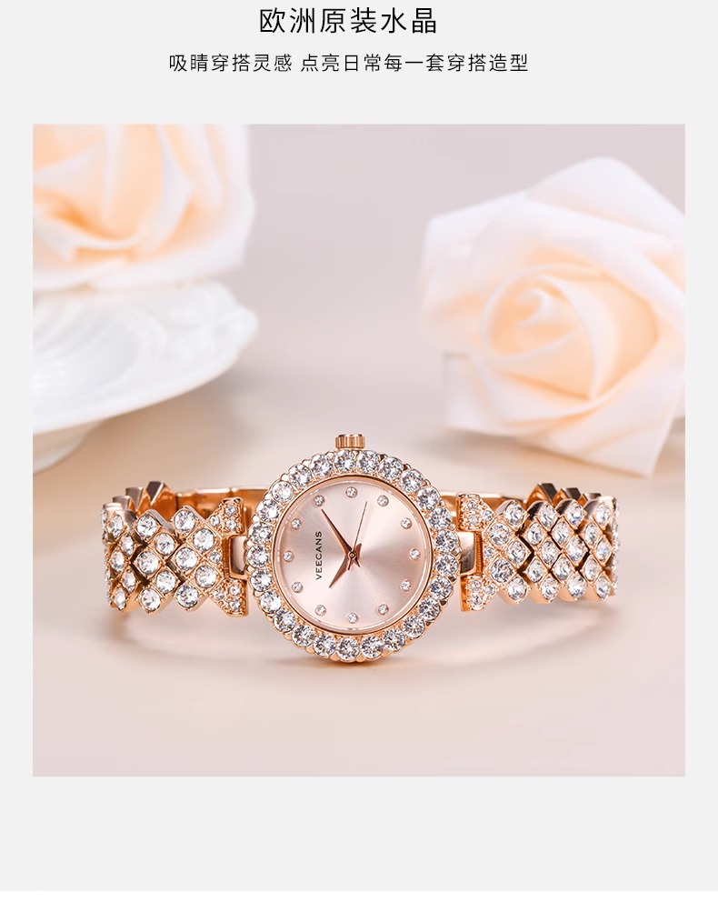 商品名称:veecans满天星腕表时尚石英表轻奢小众气质水晶镶嵌