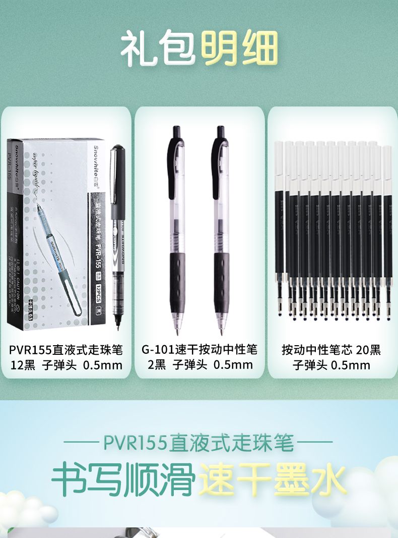 直液式走珠笔12支+按动中性笔2支+中性笔替芯20支(全部黑色墨水)