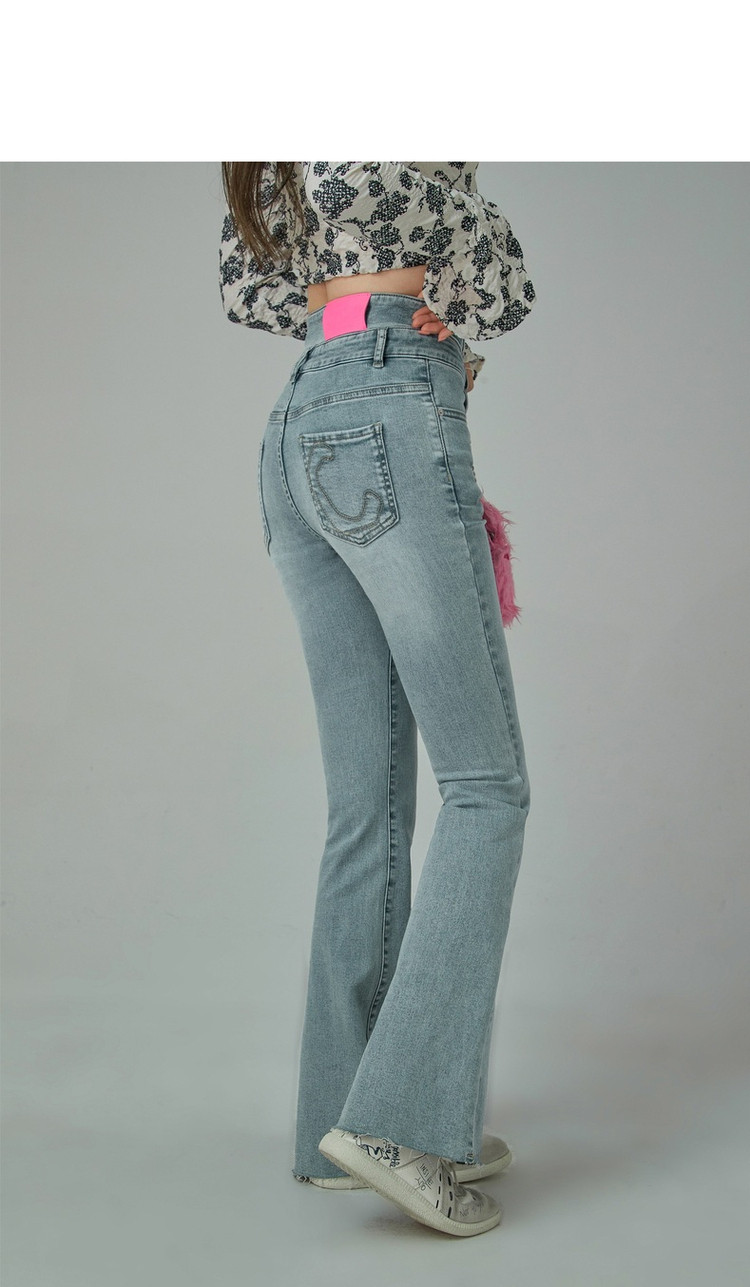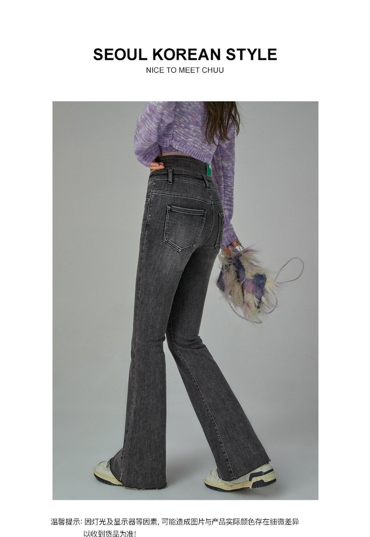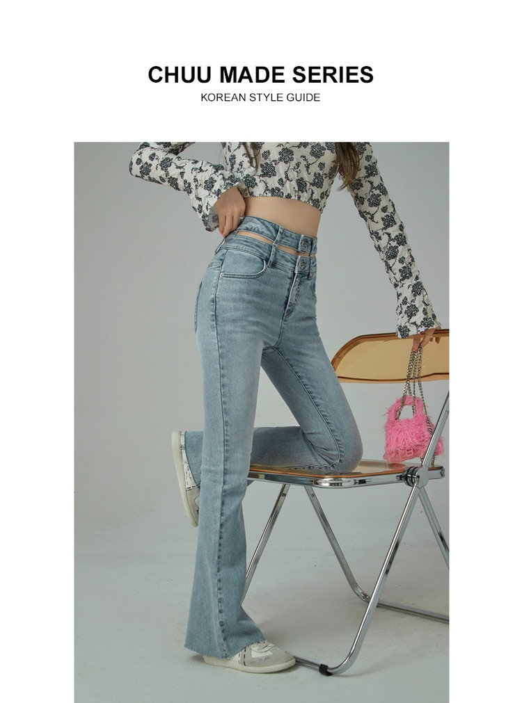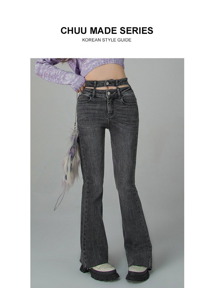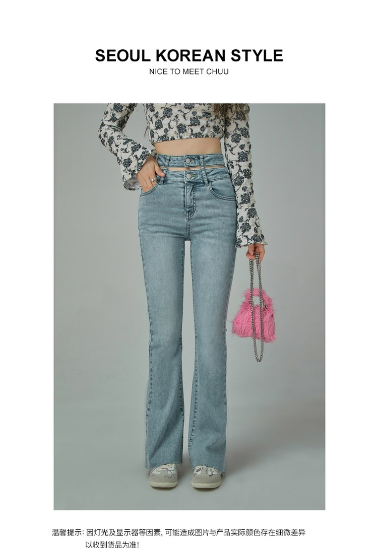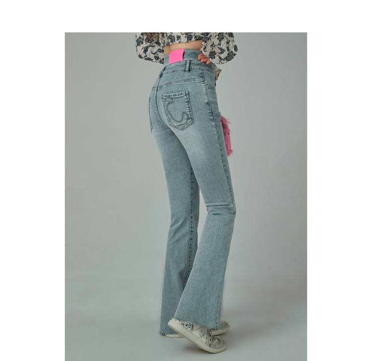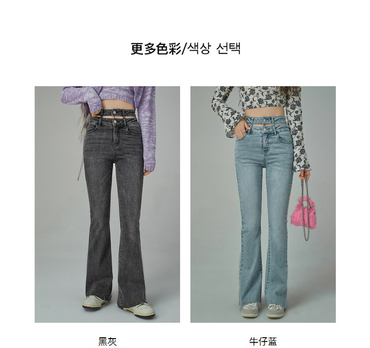 商品名称:高腰镂空微喇牛仔裤女春季修身显瘦长裤子 403539