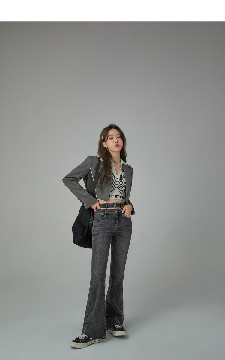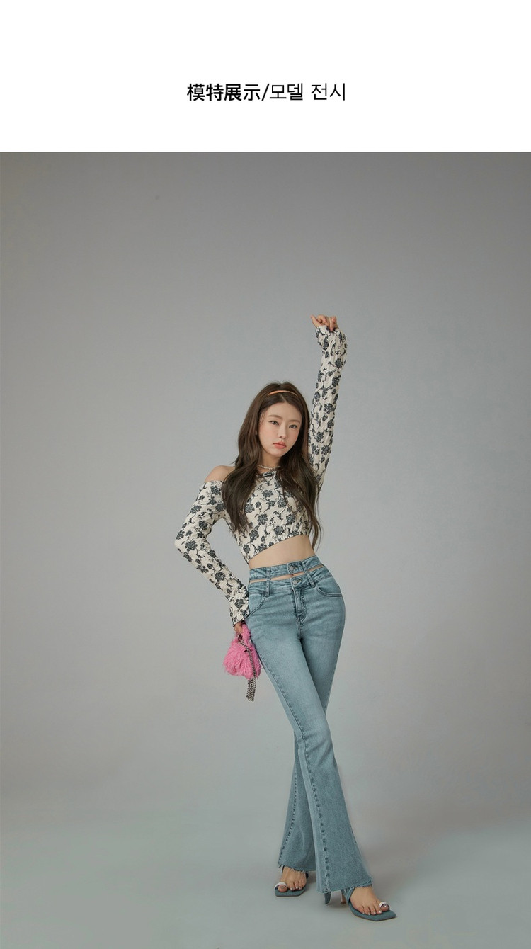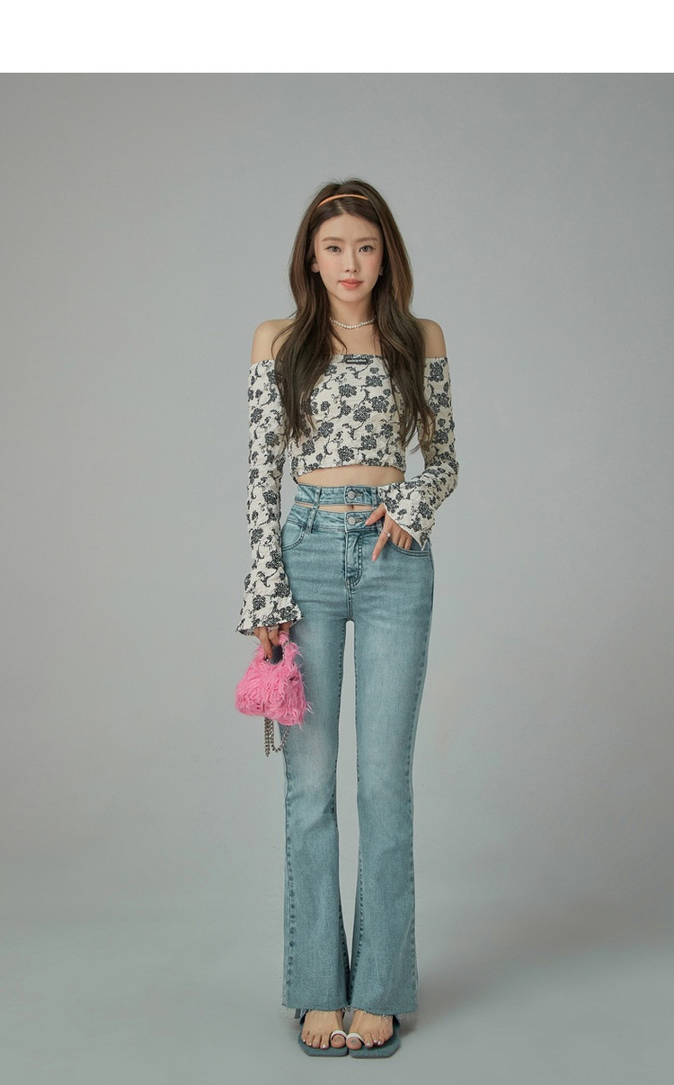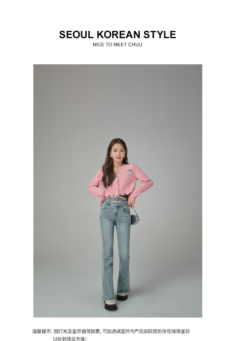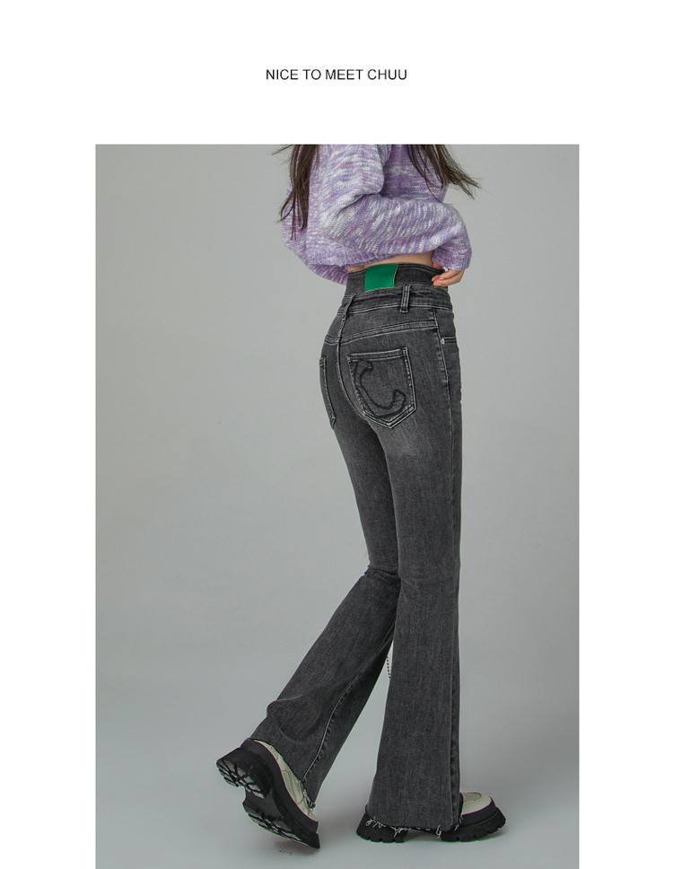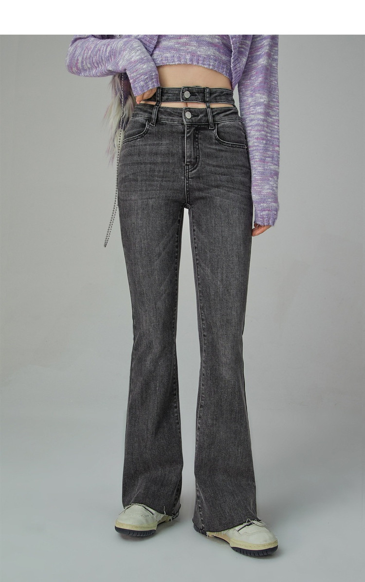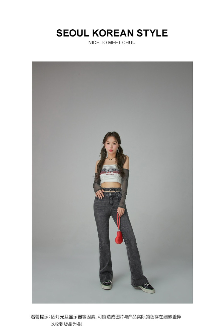 商品名称:高腰镂空微喇牛仔裤女春季修身显瘦长裤子 403539