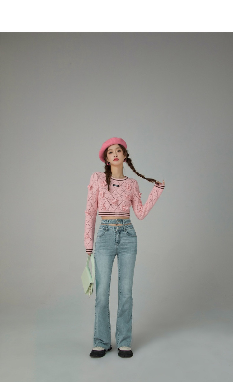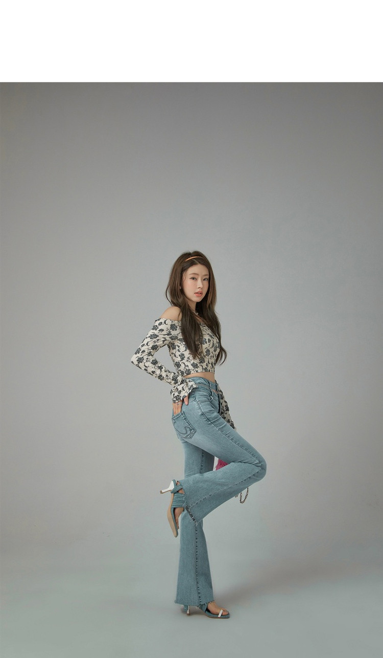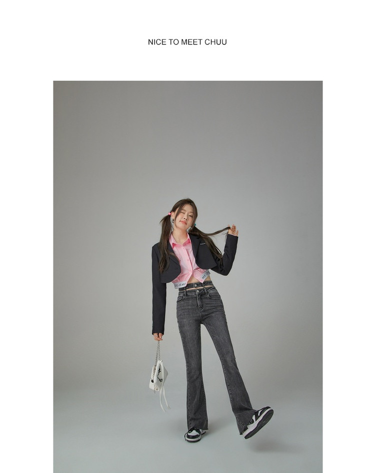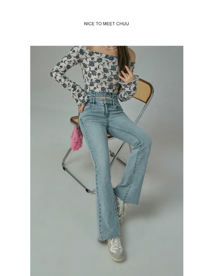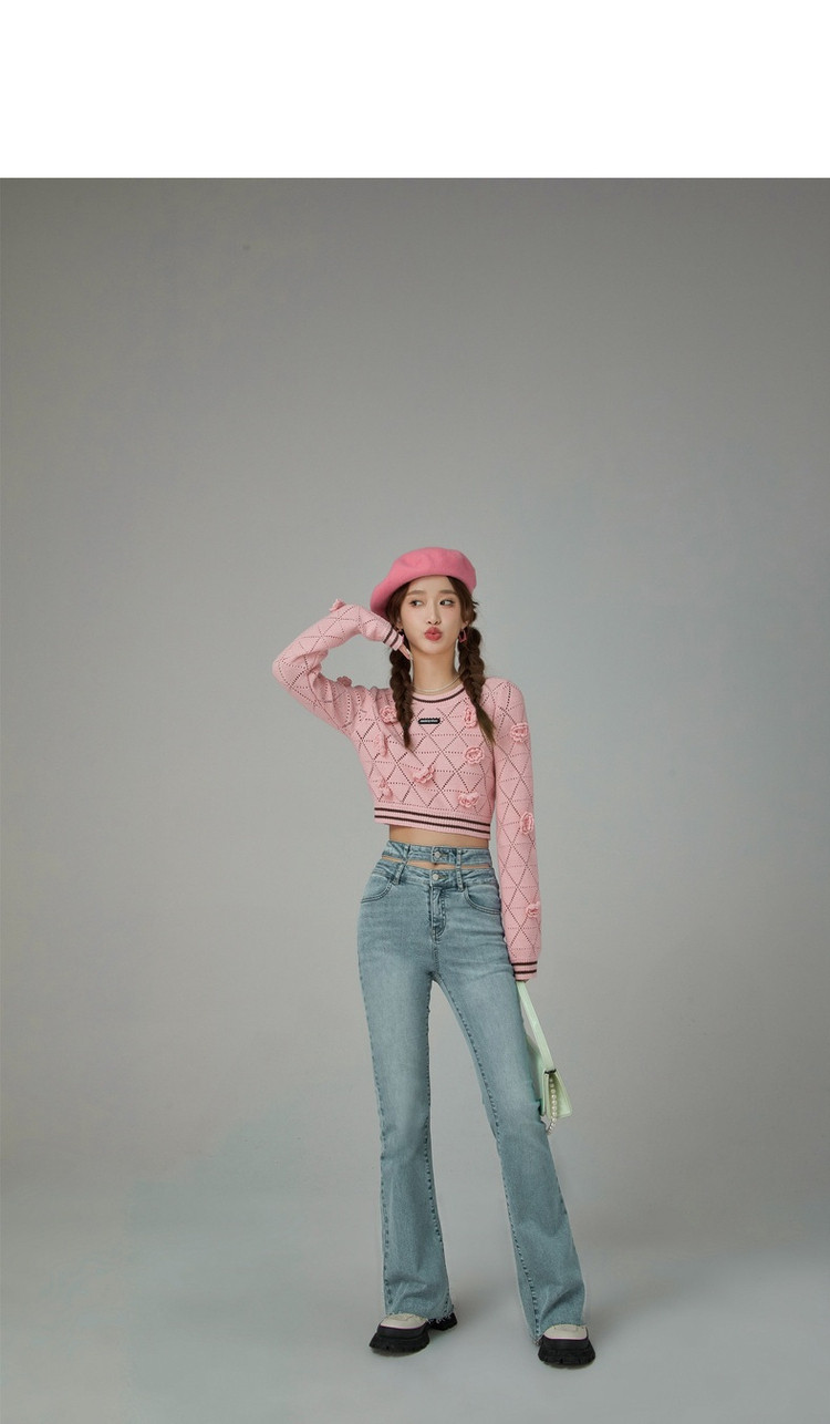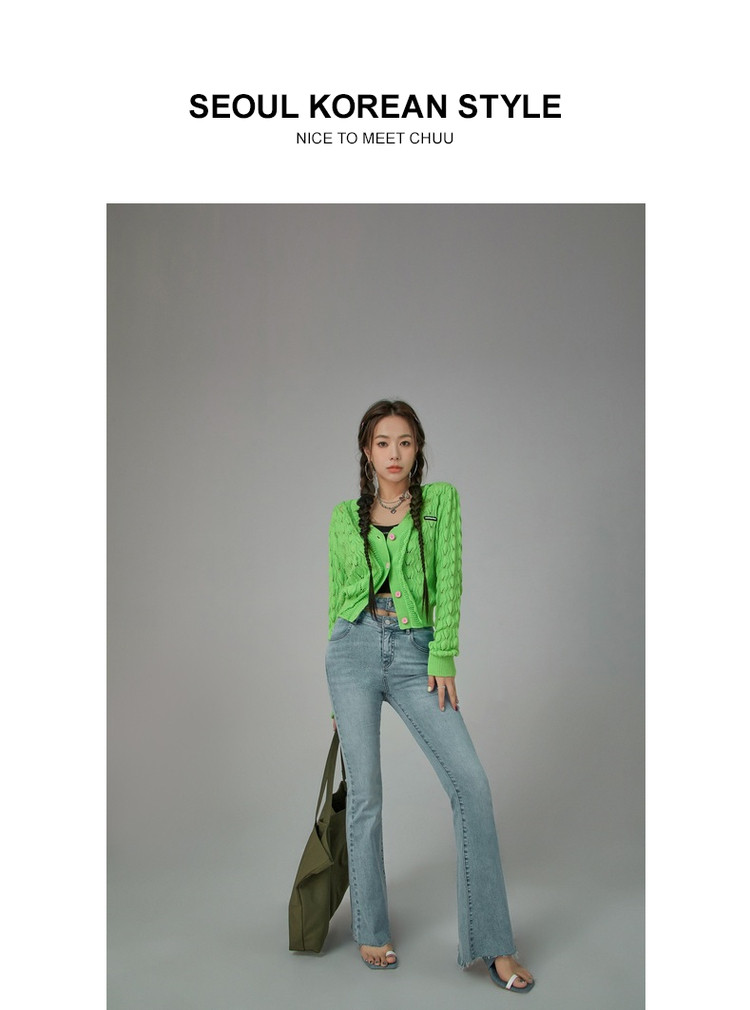 商品名称:高腰镂空微喇牛仔裤女春季修身显瘦长裤子 403539