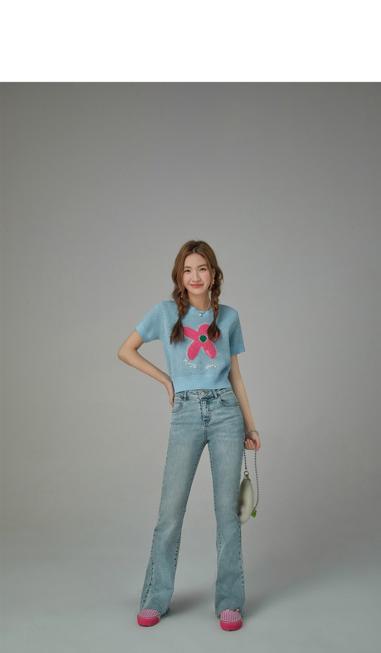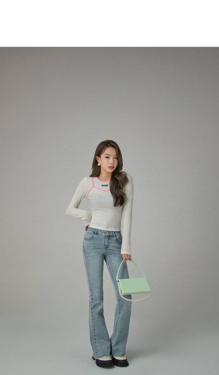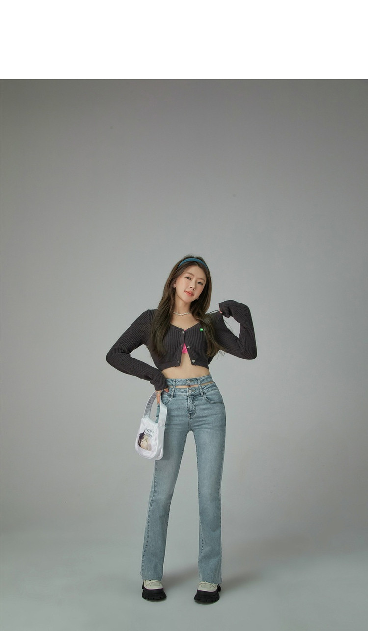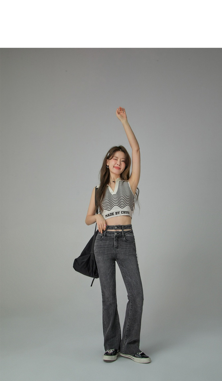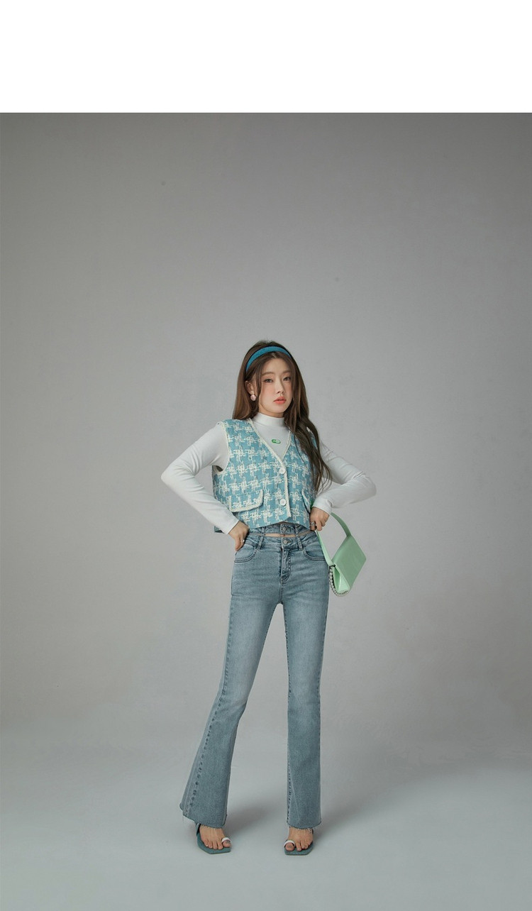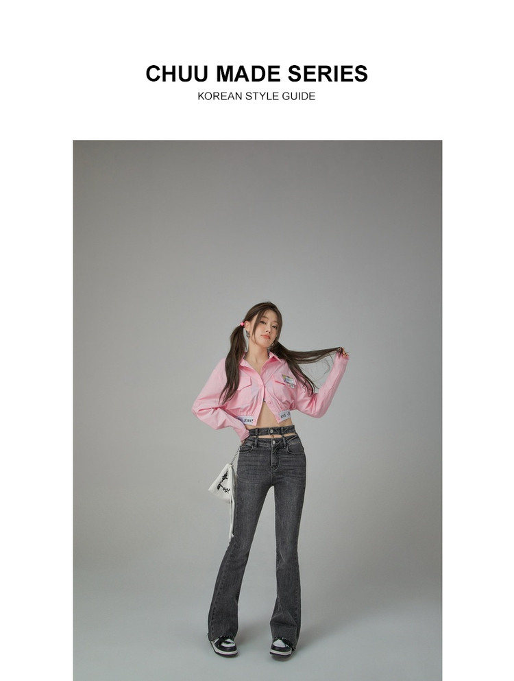 商品名称:高腰镂空微喇牛仔裤女春季修身显瘦长裤子 403539